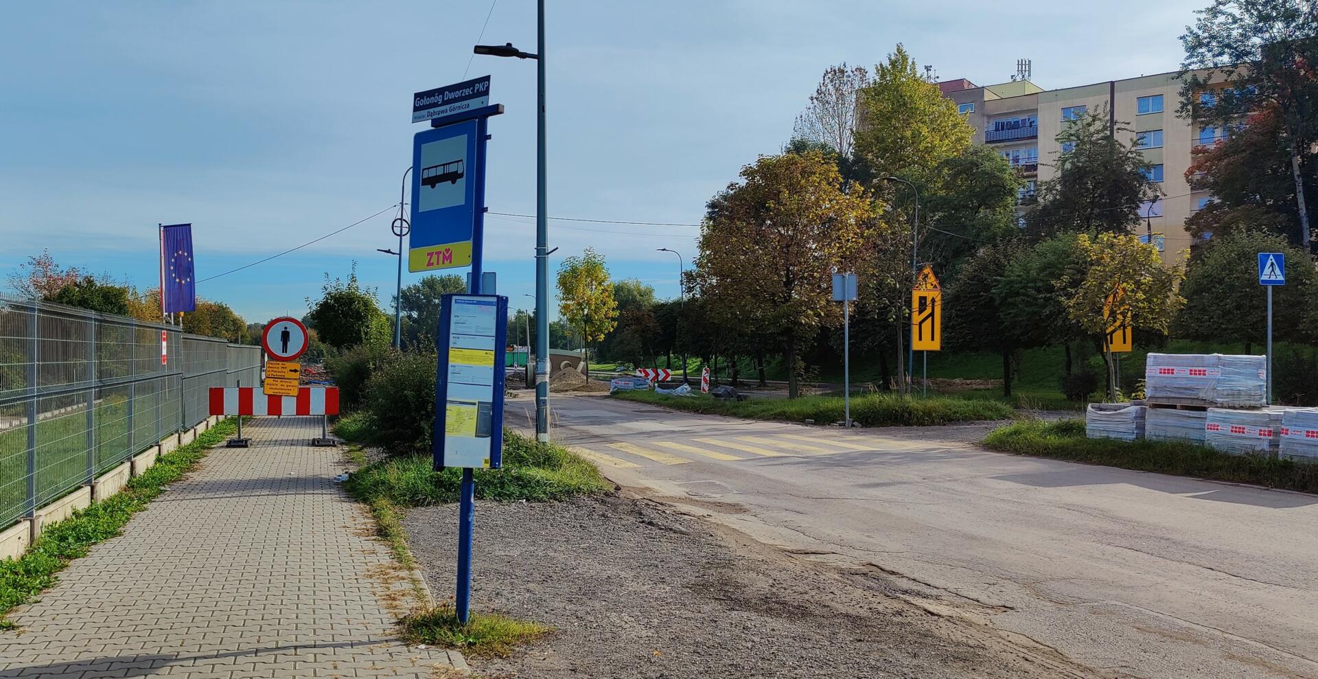 Tymczasowy przystanek Gołonóg Dworzec PKP w kierunku centrum