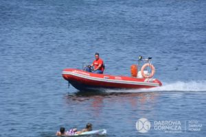 Dąbrowscy WOPR-owcy, oprócz obserwacji kąpielisk przy plażach, działają też na wodzie, patrolując jeziora na motorówkach i łodziach.