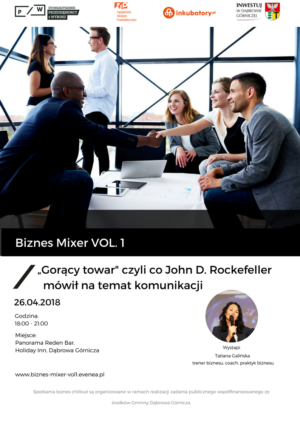 – wystąpienie Tatiany Galińskiej ” „Gorący towar” czyli co John D. Rockefeller mówił na temat komunikacji. Dowiecie się na nim, że umiejętność zjednywania sobie ludzi jest chyba najpoważniejszym problemem, jaki napotykamy, zwłaszcza w interesach. Sztuka ta opiera się na komunikacji międzyludzkiej, która jest prosta ale nie jest łatwa. Podczas wystąpienia Tatiana natchnie was inspiracją, przytoczy kilkanaście świetnych przykładów zakłóceń w komunikacji. No i oczywiście nie zabraknie przedstawienia skutecznych sposobów jak zostać Mistrzem w tej dziedzinie.