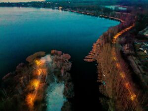 Wokół zbiornika trwa jeszcze montaż światłowodu, który umożliwi podłączenie do sieci 13 kamer monitoringu. Ich zasięgiem będzie objęty m.in. mostek od strony Łęknic, cypelek wraz z wiatą, tunel łączący Pogorię III z Pogorią IV oraz część zachodnia po stronie torów kolejowych. Zakończenie wszystkich prac planowane jest w połowie kwietnia.