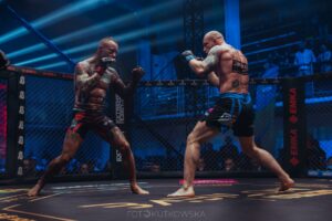 Zawodnicy mieszanych sztuk walki zmierzyli się w kategorii średniej (do 84 kg). Adrian Błeszyński wygrał w drugiej rundzie przez techniczny nokaut. Po próbie obalenia przez przeciwnika przy siatce, „Ares” przeszedł do kontry, serią bokserskich ciosów posłał rywala na deski, gdzie następnie zasypał go gradem młotów. W tej sytuacji sędzia musiał przerwać walkę, której triumfatorem został dąbrowianin.