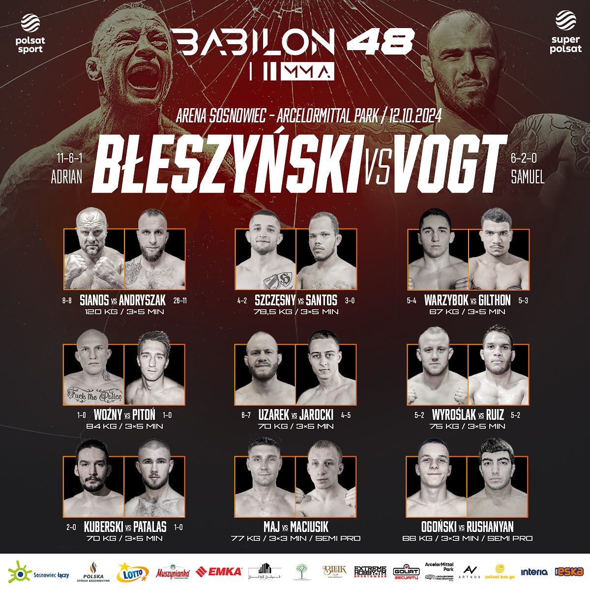 Przed hitowym pojedynkiem Błeszyński – Vogt w klatce wystąpią inne lokalne gwiazdy – m.in. wysoko notowani w swoich kategoriach Kamil Warzybok czy Gracjan Wyroślak, a także Kamil Woźny, który efektownie przywitał się w marcu z zawodowym MMA na gali Babilon MMA 44 w Jaworznie. Pokaże się również utalentowany Tomasz Kuberski, który pragnie pójść w ślady swego słynnego brata podbijającego KSW.