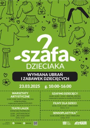 23 marca, w godz.10-16, pałacowe hole parteru i pierwszego piętra wypełni ponad 80 stoisk z ubraniami, butami, zabawkami, książkami, sprzętem sportowym czy edukacyjnymi gadżetami. Podczas szafingu dzieci będą mogły wziąć udział w licznych wydarzeniach towarzyszących: warsztatach artystycznych, zabawach, teatralnym spektaklu czy obejrzeć filmy w kinie Kadr.