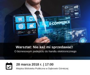 Jesteś przedsiębiorcą? Chcesz skutecznie sprzedawać swoje produkty w internecie? Nie wiesz jakie kroki podjąć i jakie narzędzia wykorzystać? Zastanawiasz się w jaki sposób nieinwazyjnie promować swoje produkty? Już 28 marca o godz. 17:00 w Miejskiej Bibliotece Publicznej w Dąbrowie Górniczej odbędzie się kolejny z cyklu praktycznych warsztatów. Tym razem prelekcję pt. „Nie każ mi sprzedawać! O biznesowym podejściu do handlu elektronicznego” przedstawi Jacek Uroda (JACO.PRO / Nord Digital). Szczegółowe informacje oraz rejestracja na www.ehandel.evenea.pl. Pobierz bezpłatny bilet wstępu.
