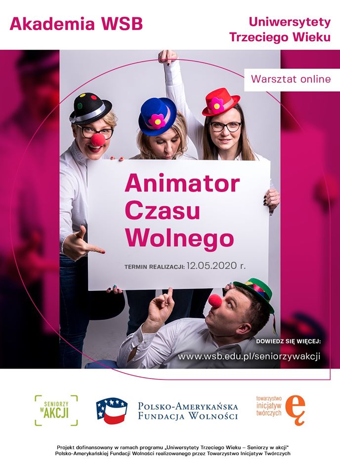 Możesz też dołączyć do warsztatów online – Animator Czasu Wolnego. Bezpłatne warsztaty są realizowane w ramach Senioralnego Biura Karier. Ruszają już jutro (12 maja), a zapisać się można tutaj.