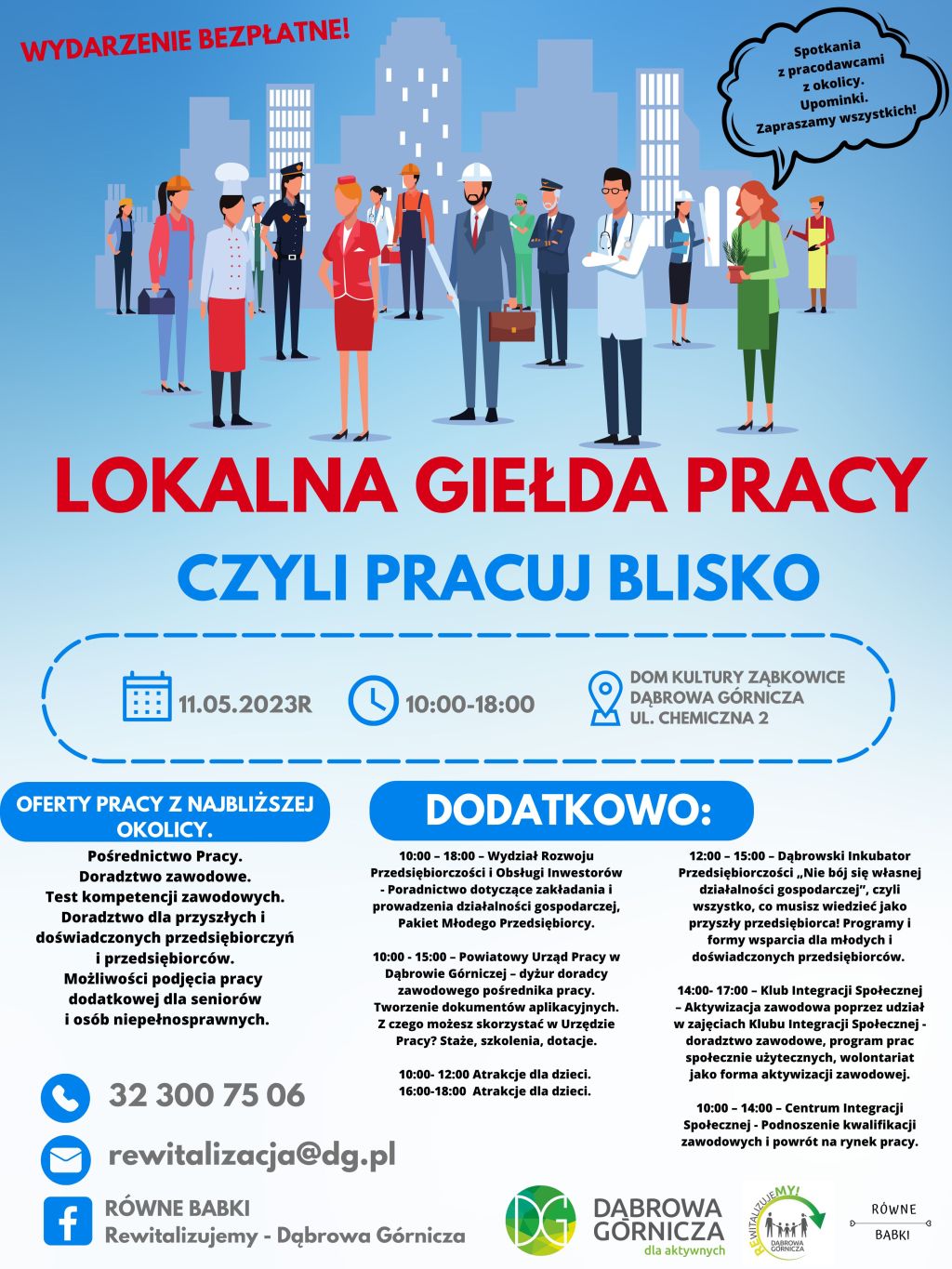 Organizatorem „Lokalnej giełdy pracy” jest Urząd Miejski w Dąbrowie Górniczej i stowarzyszenie Równe Babki.