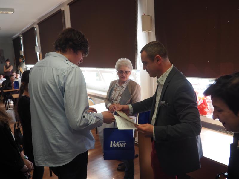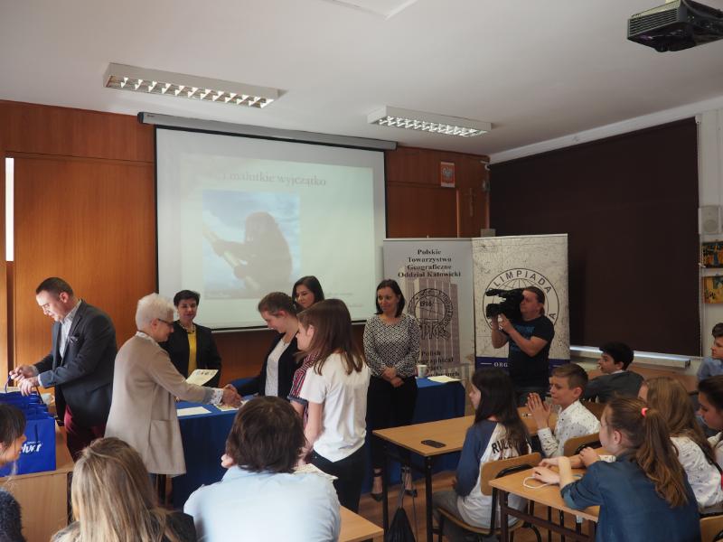 Wszyscy laureaci zostali nagrodzeni. Poza dyplomami, nagrodami były kostki Rubika, pakiety upominkowe z firmy Velvet zawierające m.in. pendrive, pakiety z Media Markt oraz publikacje ekologiczne i materiały promocyjne UM Dąbrowa Górnicza. Zawodnicy zwycięskich drużyn otrzymali również vouchery od firmy Polski Banan na hartowane szybki ochronne na smartfony. Każdy uczestnik otrzymał mapę przyrodniczą naszego miasta. Nagrody i gratulacje laureaci przyjęli z rąk pani wicedyrektor szkoły, Teresy Konieczniak.