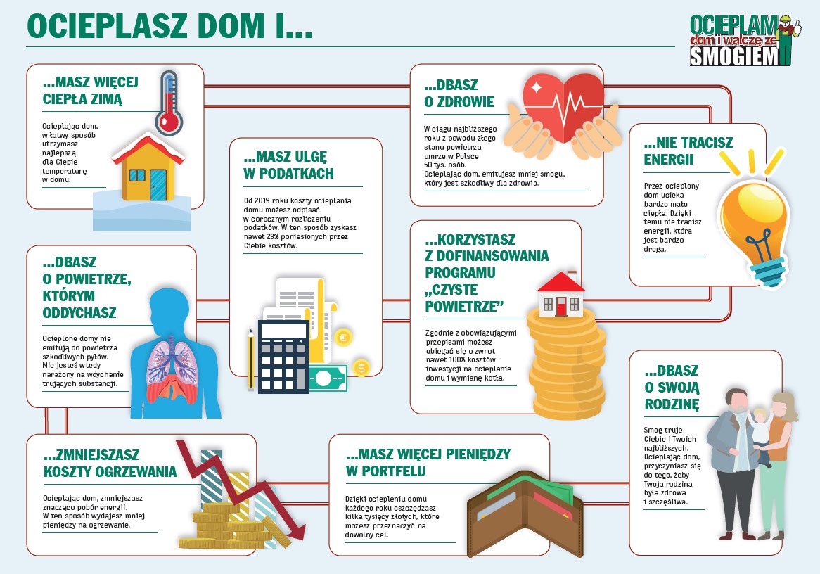 Główną przyczyną smogu są zanieczyszczenia powstające podczas spalania w domowych piecach i kotłach grzewczych paliwa niskiej jakości. Dodatkowo, ponad 70 % budynków w Polsce jest niewłaściwie ocieplonych lub zupełnie nieocieplonych, co powoduje większe zapotrzebowanie na ogrzewanie. Dlatego warto wiedzieć, jakie korzyści przynosi ocieplenie domu i ile to może kosztować.