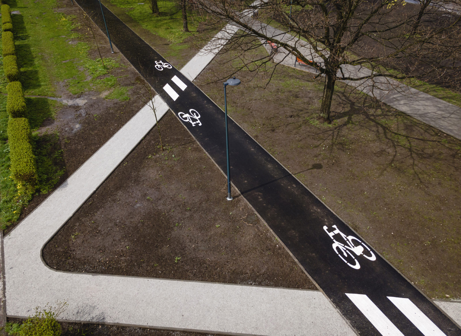 Chodniki i poszerzona główna aleja zostały wyłożone kostką, natomiast przecinające ją ścieżki mają mineralną nawierzchnię hanse grand. Całość uzupełnia nowoczesne ledowe oświetlenie, liczne ławki i kosze na śmieci.