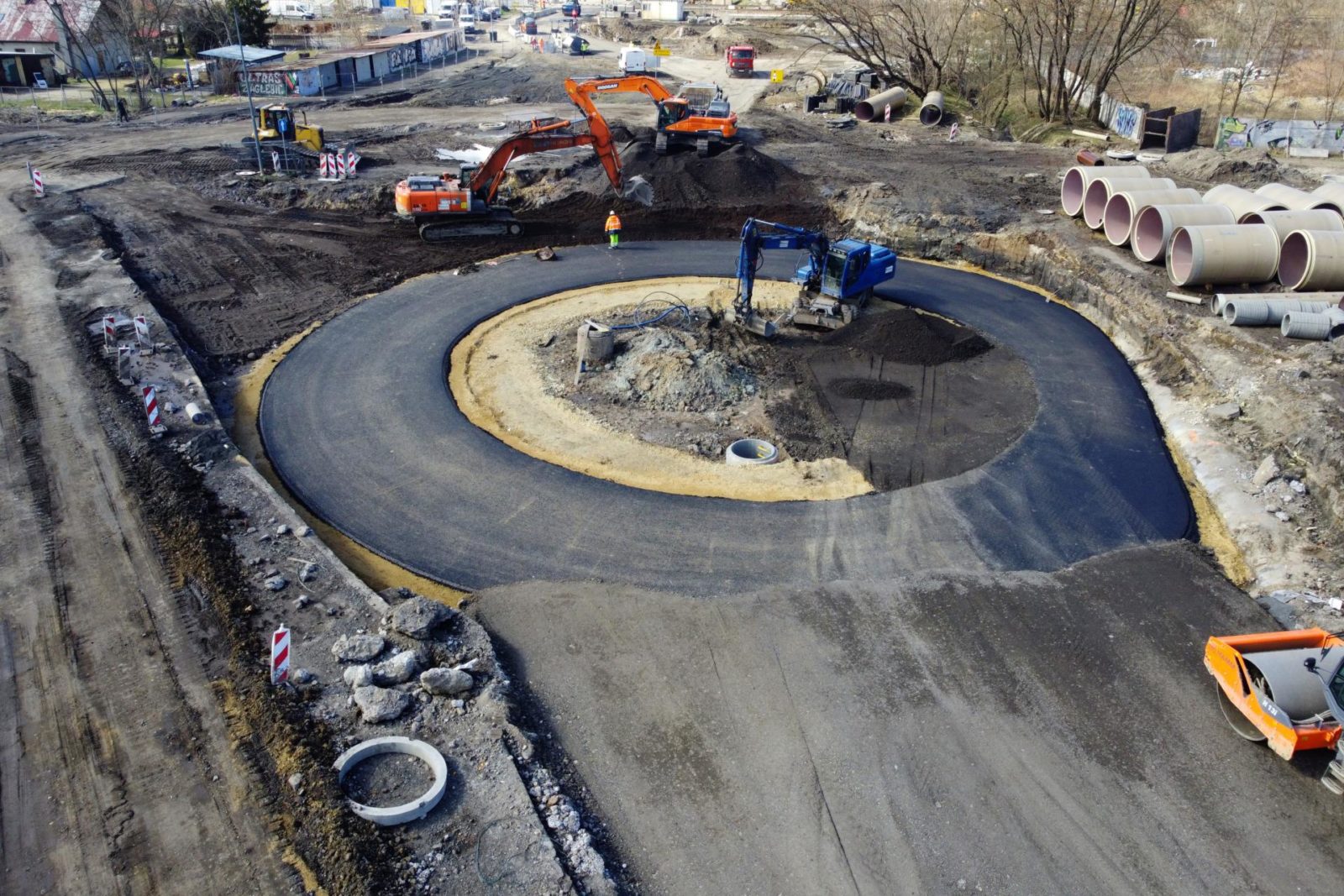 Co ważne, drogowcy zdecydowali się położyć na rondzie pierwszą warstwę asfaltu. Wpłynie to na komfort przejazdu przez skrzyżowanie, które na razie miało być wyłożone jedynie tłuczniem.