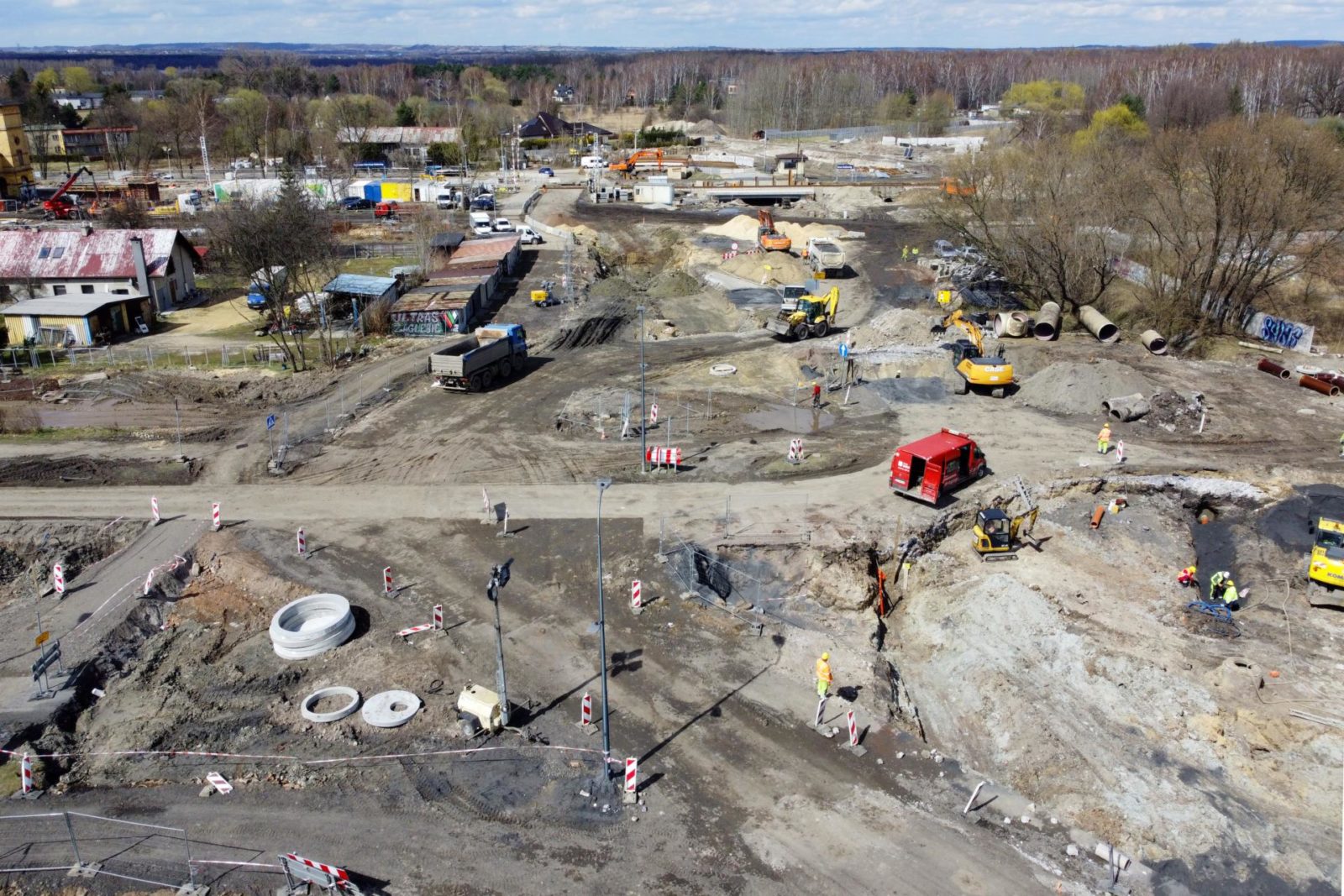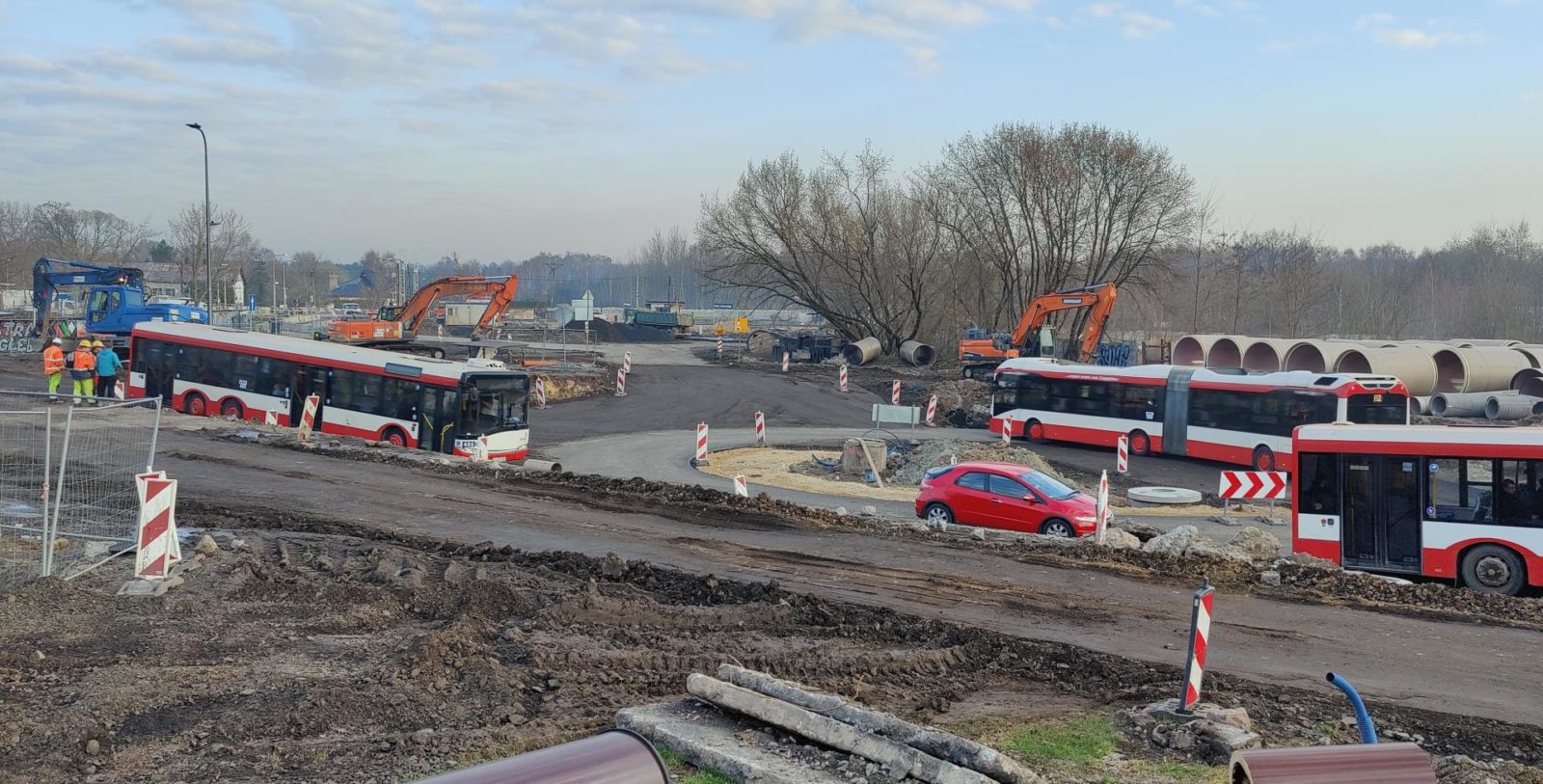 Drogowcy zamknięcie przejazdu przez tory wykorzystali na budowę kanalizacji pod rondem na skrzyżowaniu al. Zagłębia Dąbrowskiego z ul. Uklańskiego.
