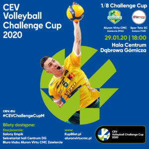 Rozpoczęła się otwarta sprzedaż biletów na mecz Aluron Virtu CMC Zawiercie ze Spor Toto Ankara. Spotkanie 1/8 finału Pucharu Challenge odbędzie się 29 stycznia o godz. 18 w hali „Centrum”.