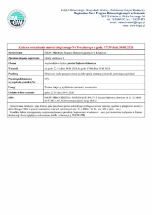 2026-01-30 Ostrzeżenie meteorologiczne nr 8 – opady marznące 1 ZMIANA