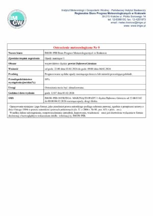 2026-02-03 Ostrzeżenie meteorologiczne Nr 9 – opady marznące.