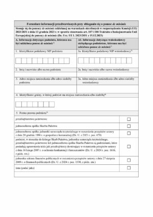 Formularz informacji przedstawianyych przy ubieganiu się o pomoc de minimis