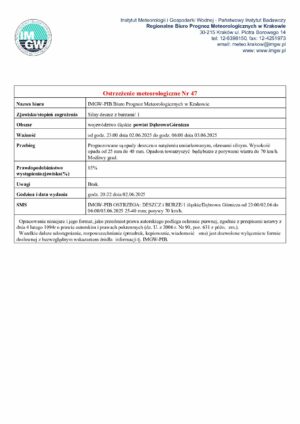 2025-06-02 Ostrzeżenie meteorologiczne nr 47 – burze.