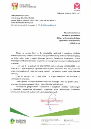 Pismo ws. usuwania śniegu i lodu z obiektów budowlanych