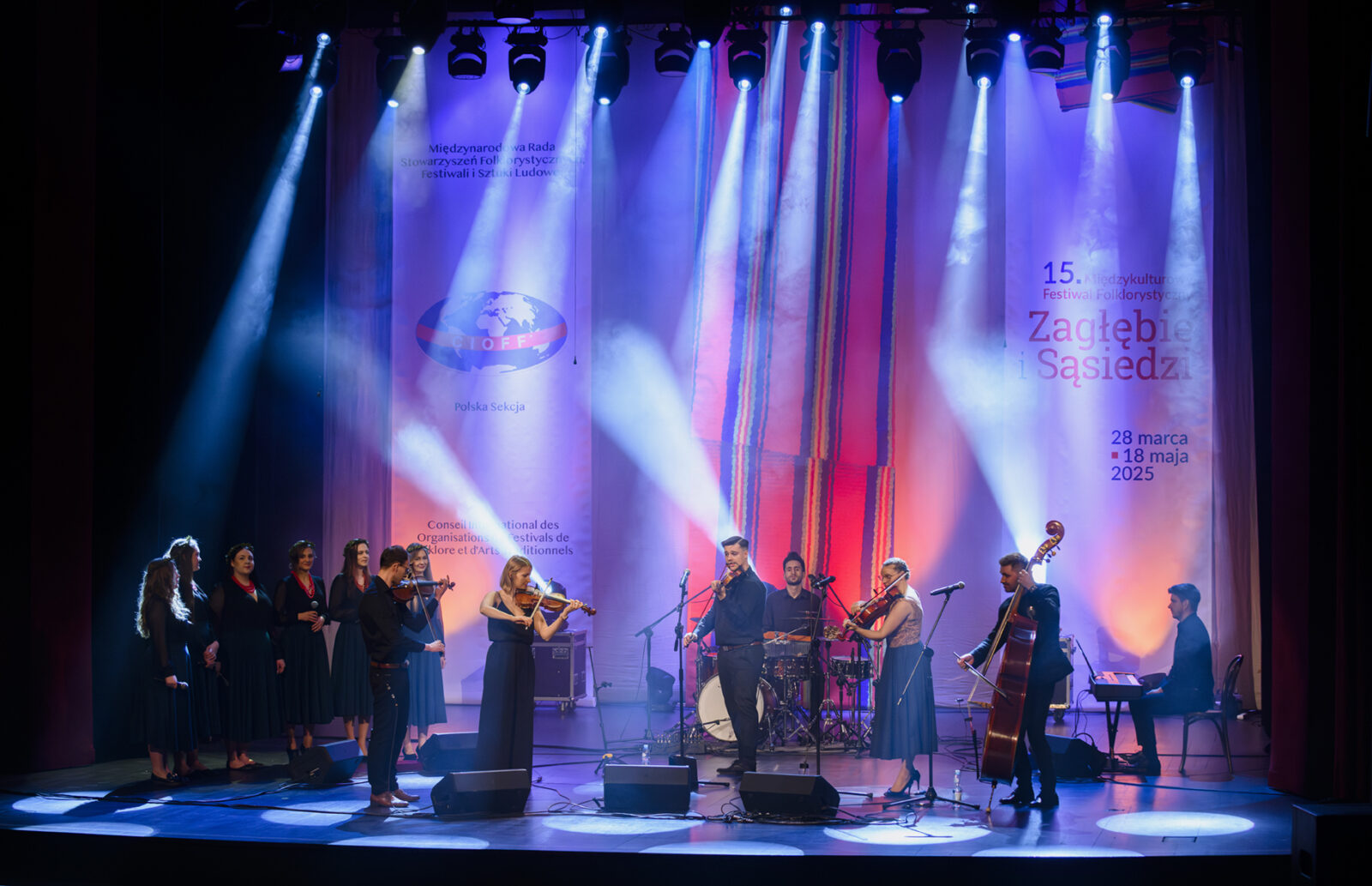 28.03.2025 r. – koncert „Żywioły” Kapeli PoPieronie na Sali Teatralnej Pałacu Kultury Zagłębia zainaugurował 15 Międzykulturowy Festiwal Folklorystyczny „Zagłębie i Sąsiedzi”. Fot.: M. Wesołowski