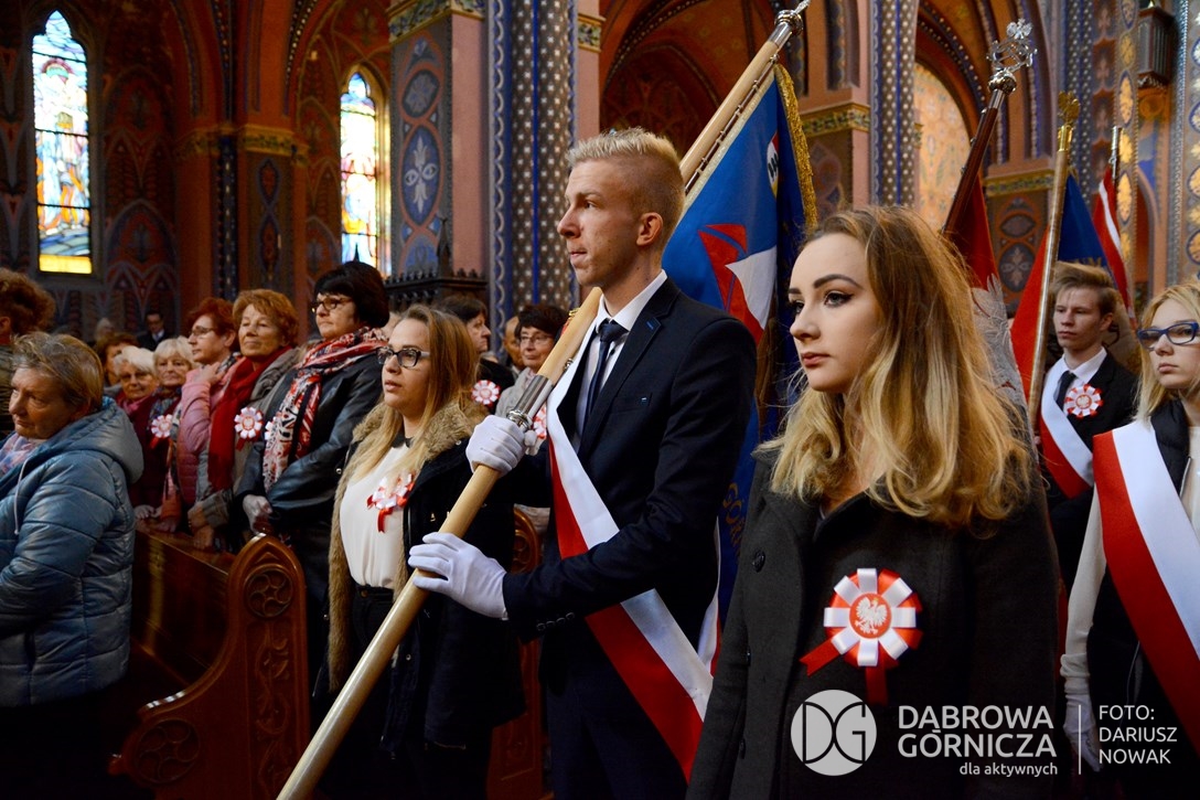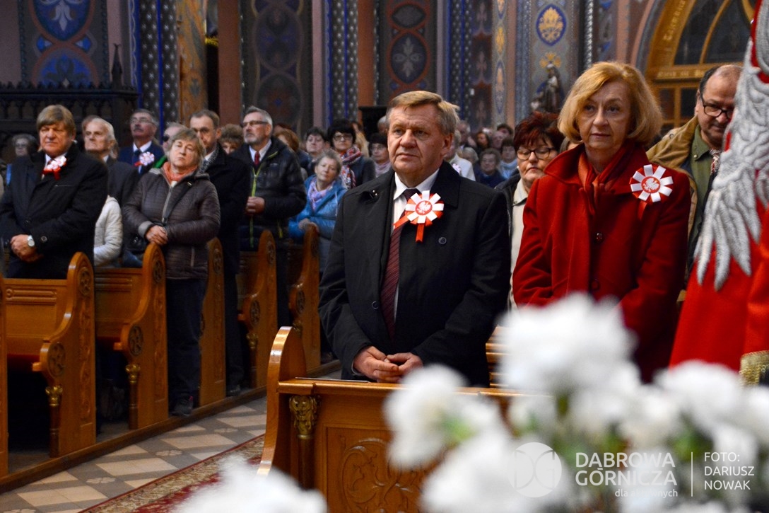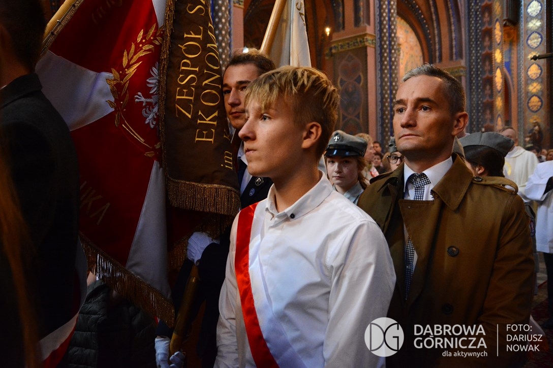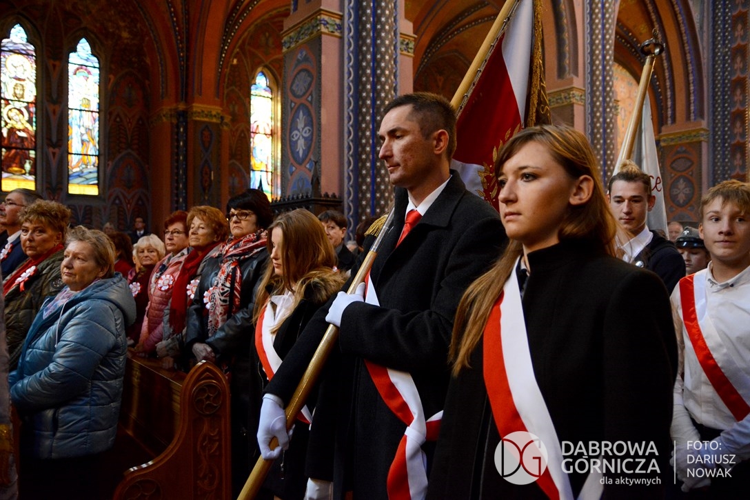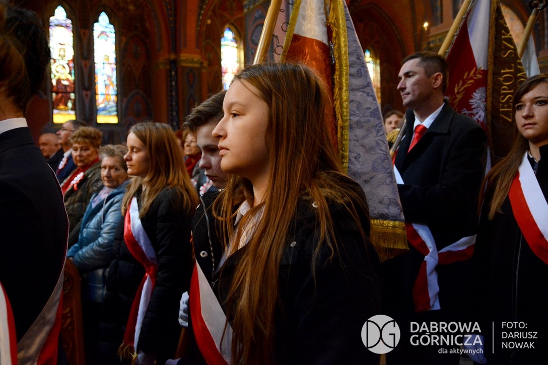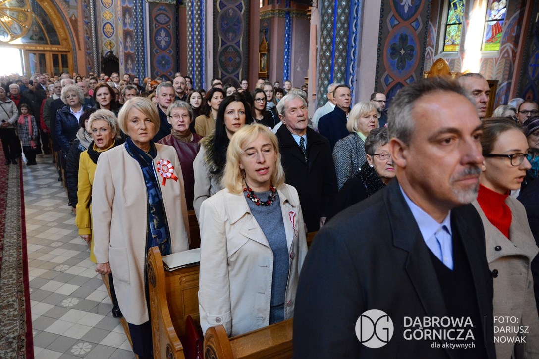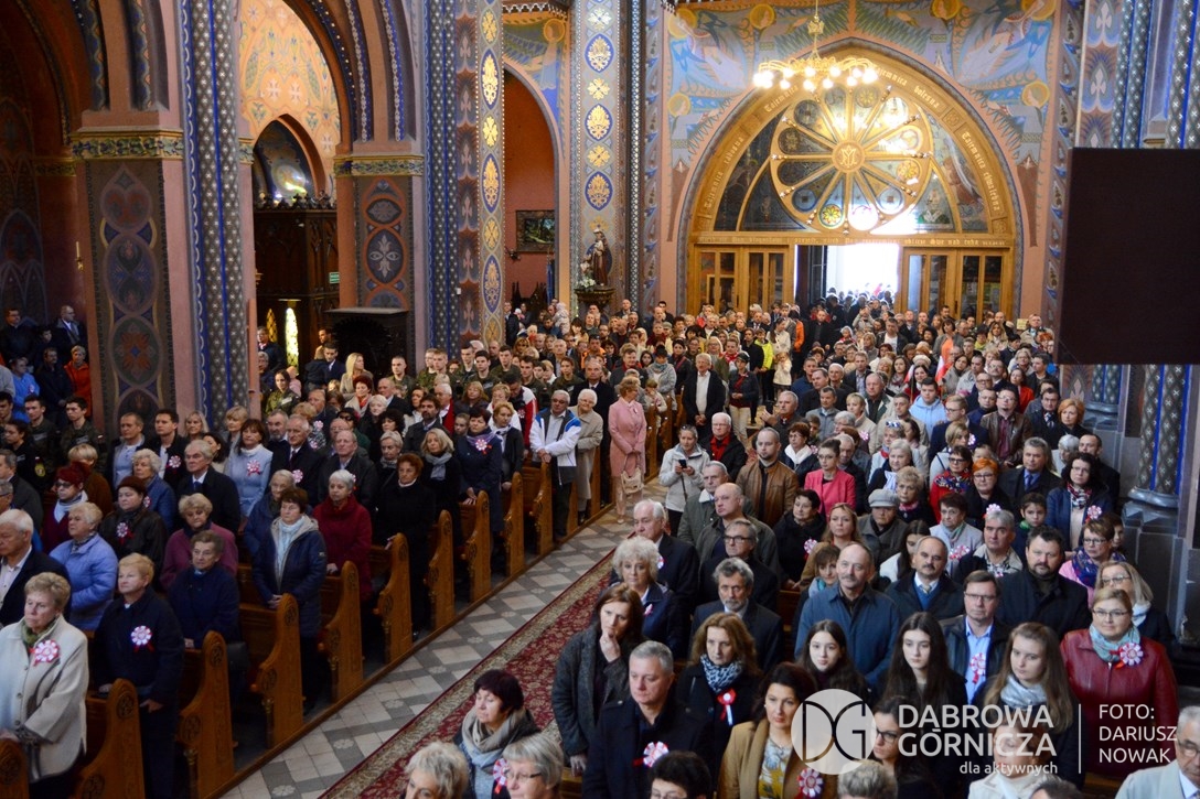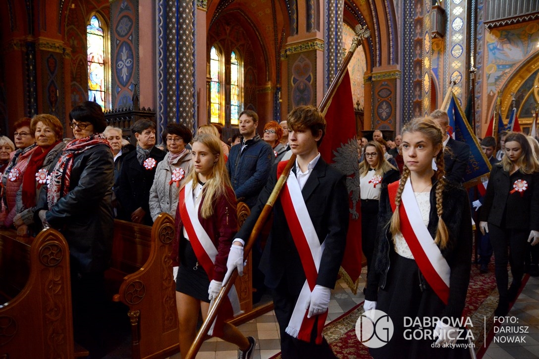 2018.11.11 Dąbrowa dla Niepodległej. Uroczysta msza w Bazylice, kwiaty na Placu Wolności, Ognisko patriotyczne i inne. FOTO: Dariusz Nowak (nddg)