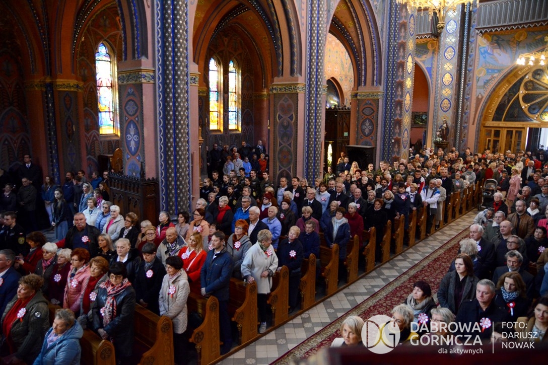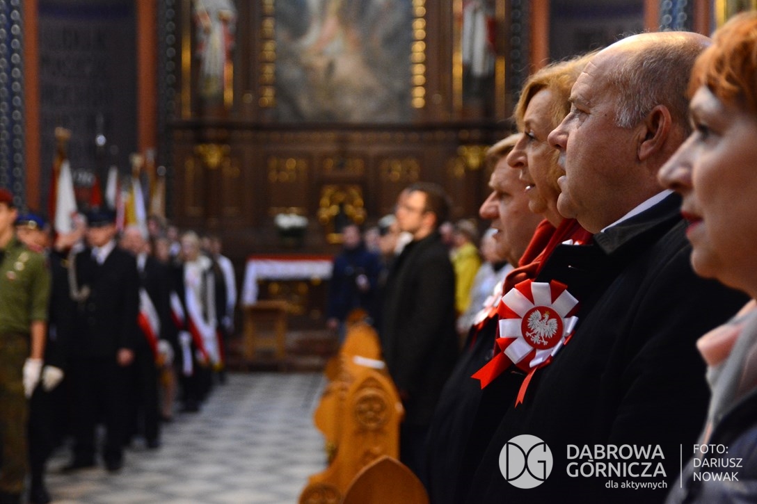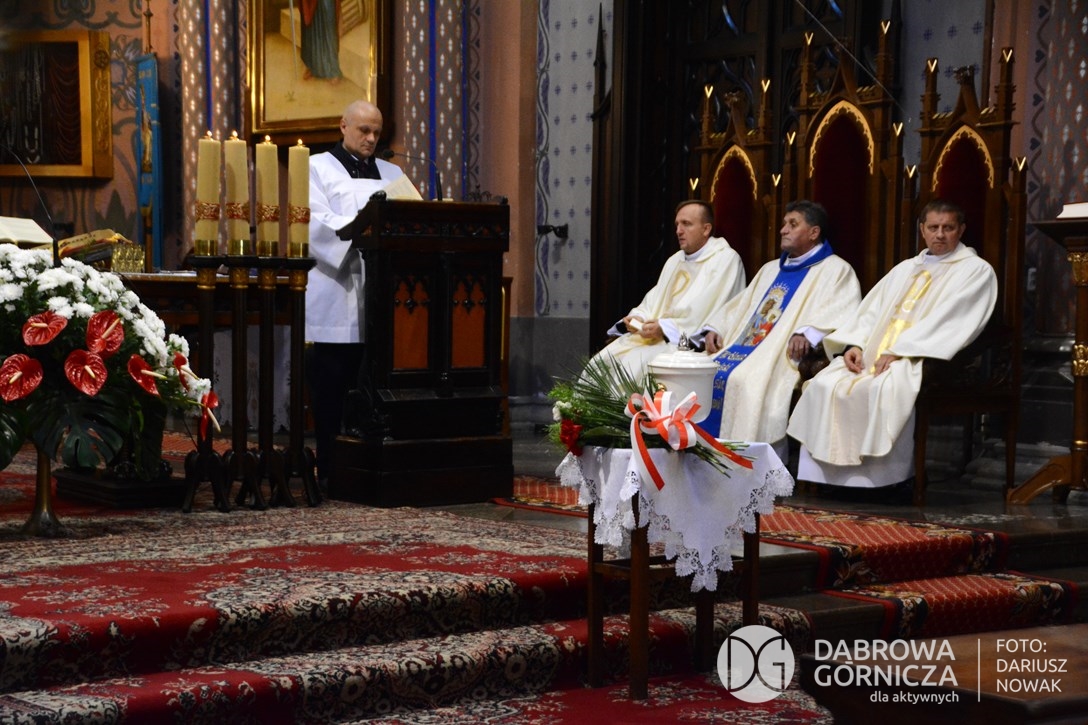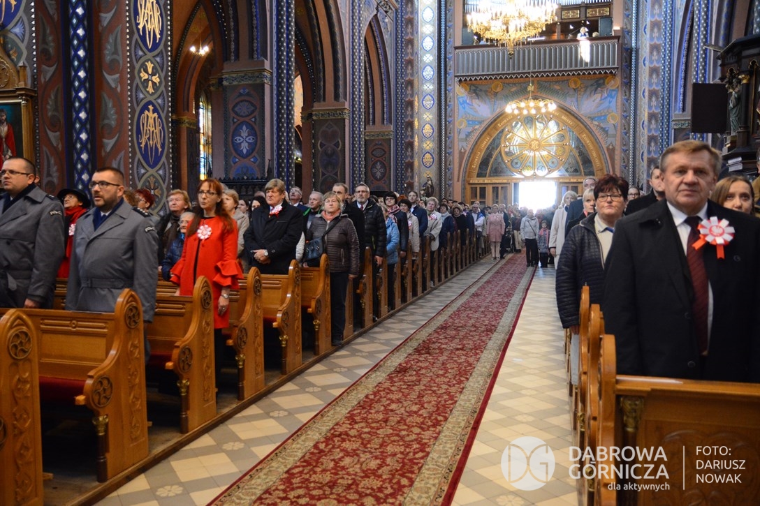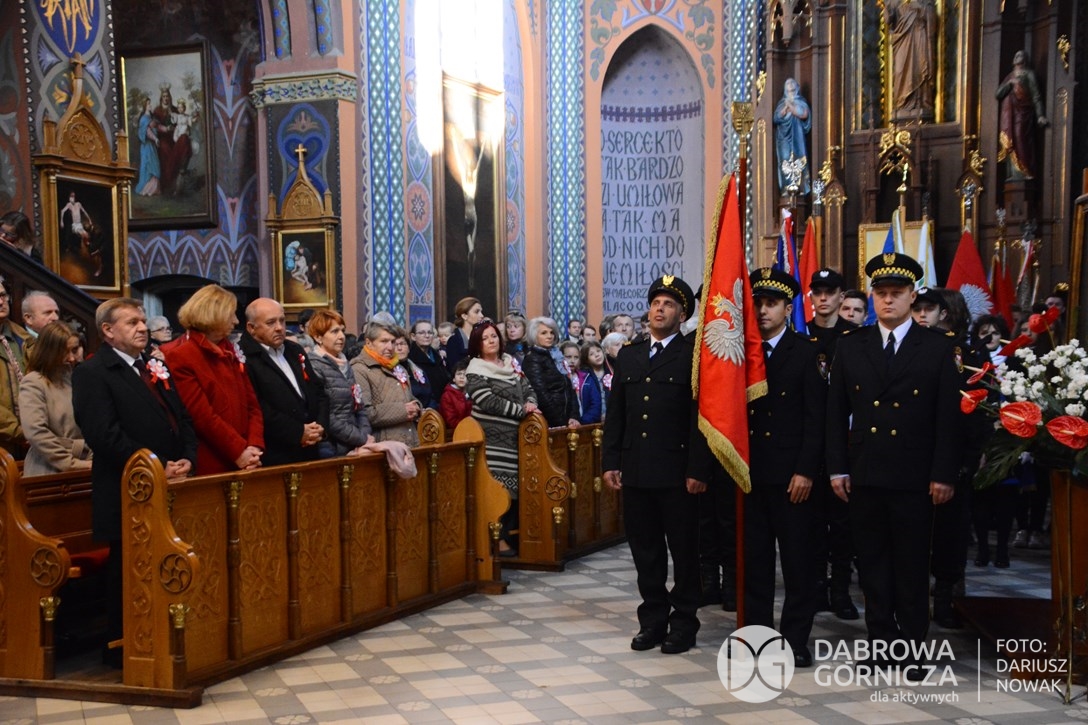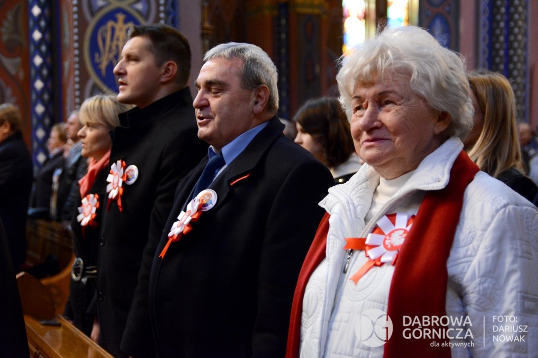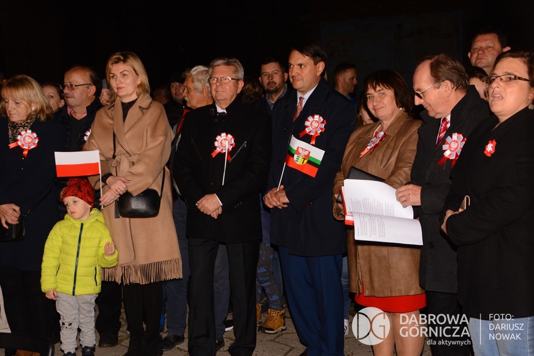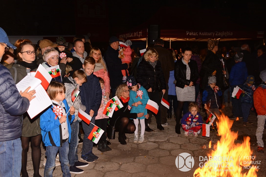 2018.11.11 Dąbrowa dla Niepodległej. Uroczysta msza w Bazylice, kwiaty na Placu Wolności, Ognisko patriotyczne i inne. FOTO: Dariusz Nowak (nddg)