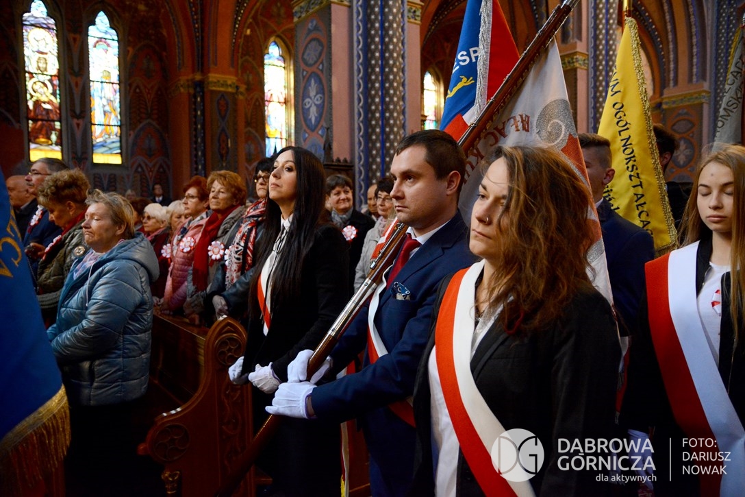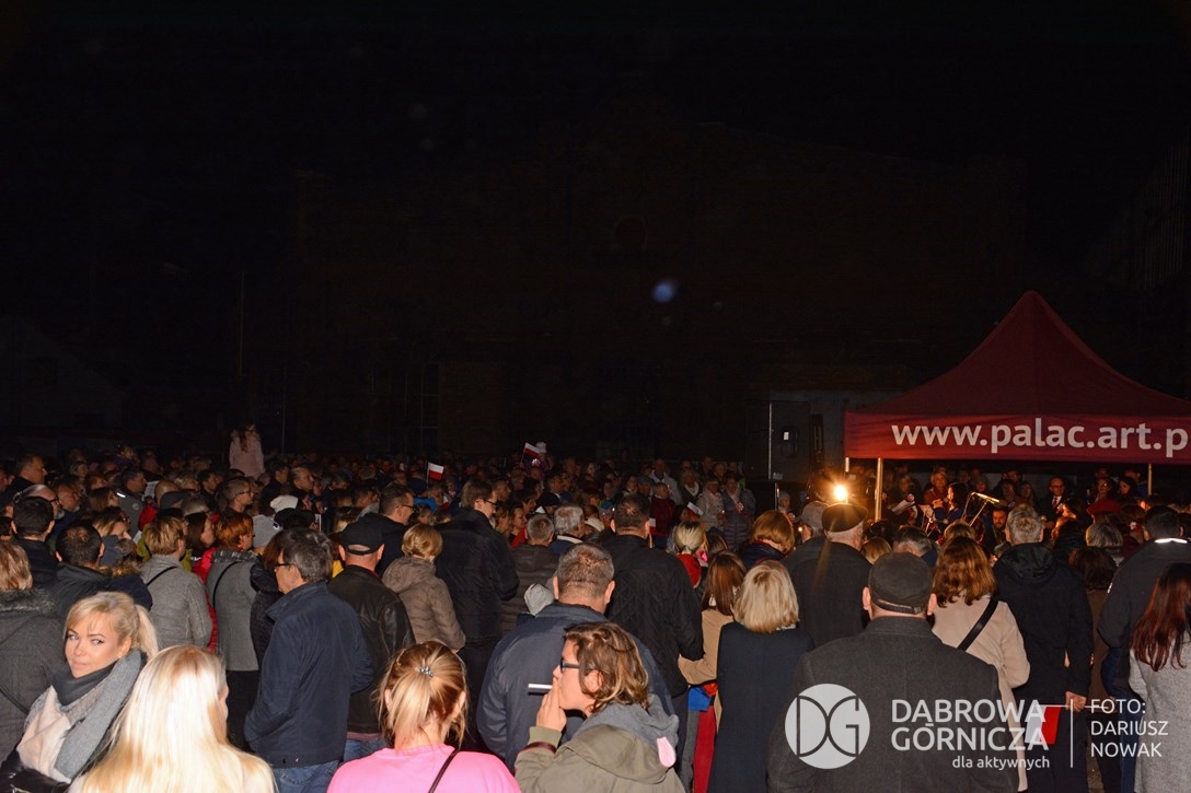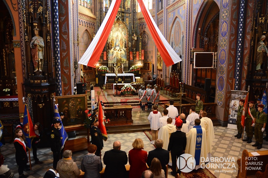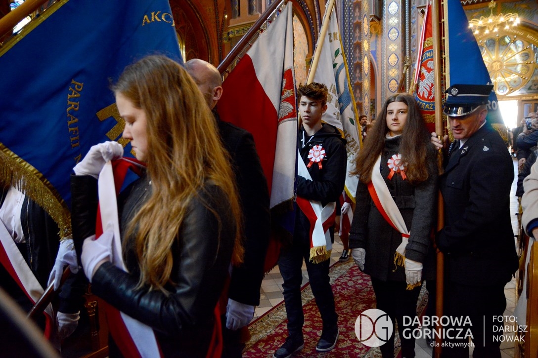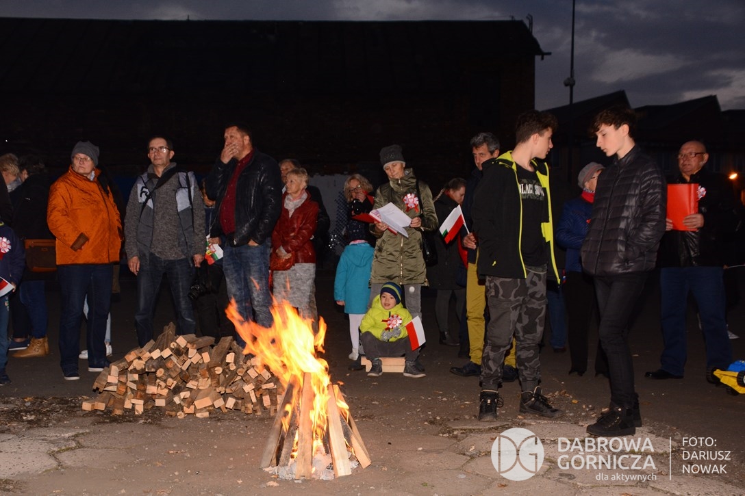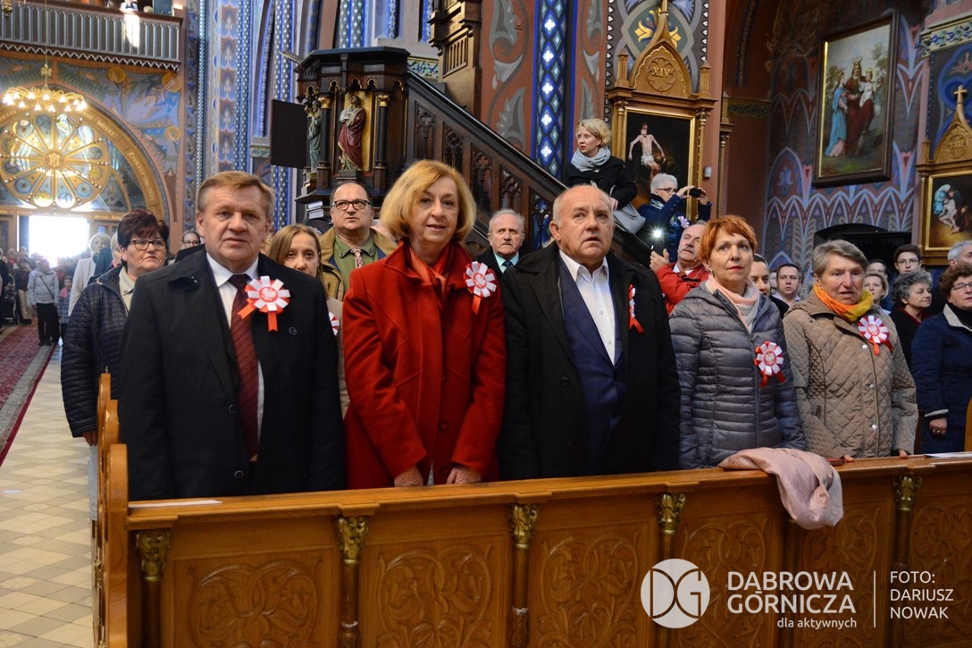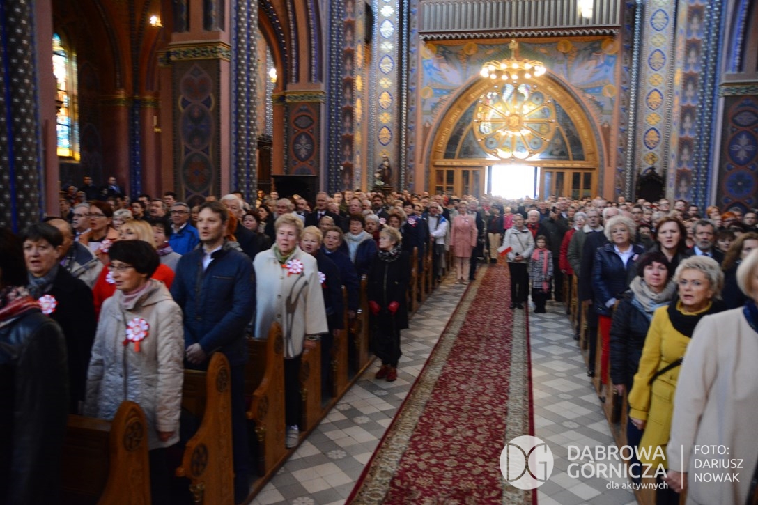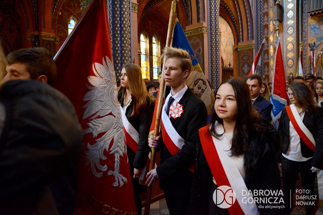 2018.11.11 Dąbrowa dla Niepodległej. Uroczysta msza w Bazylice, kwiaty na Placu Wolności, Ognisko patriotyczne i inne. FOTO: Dariusz Nowak (nddg)