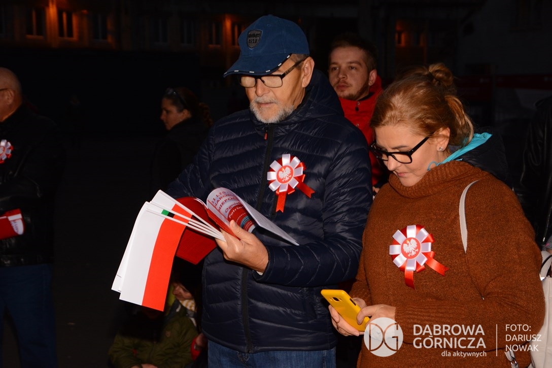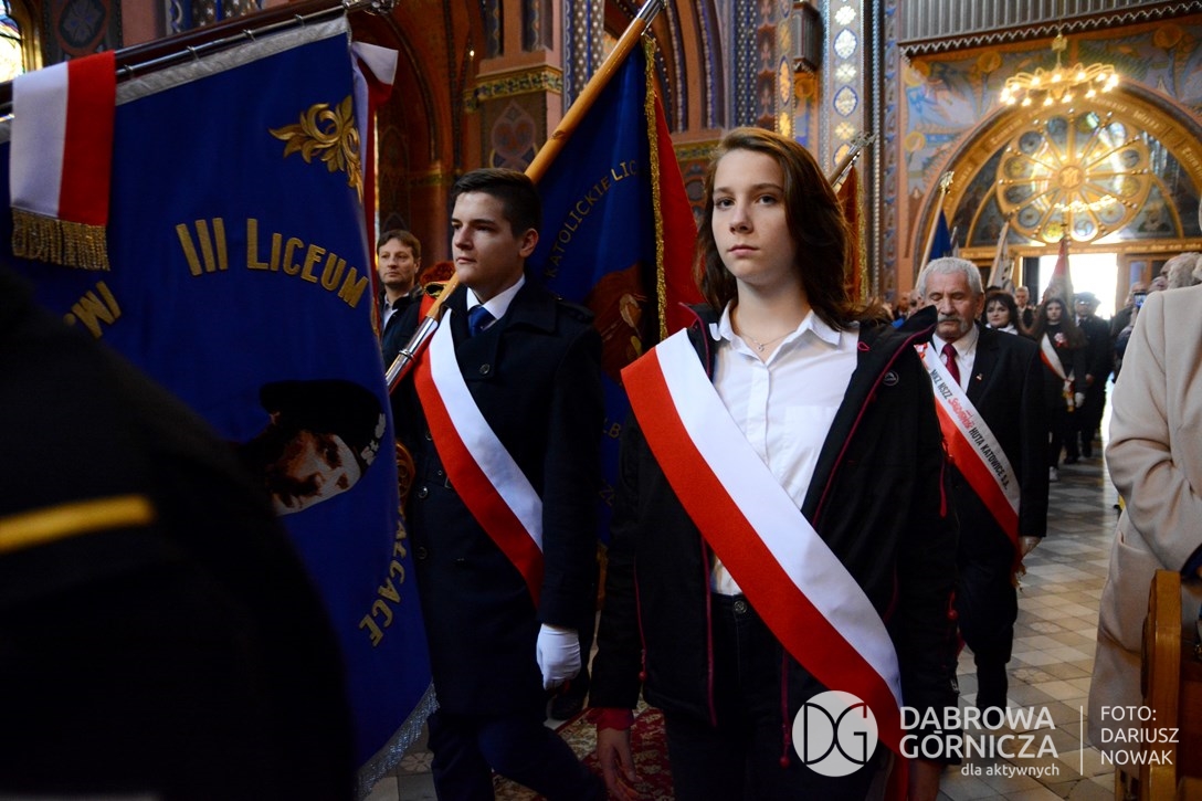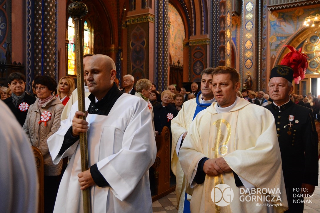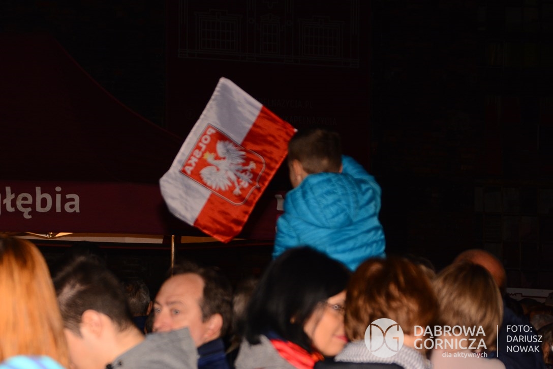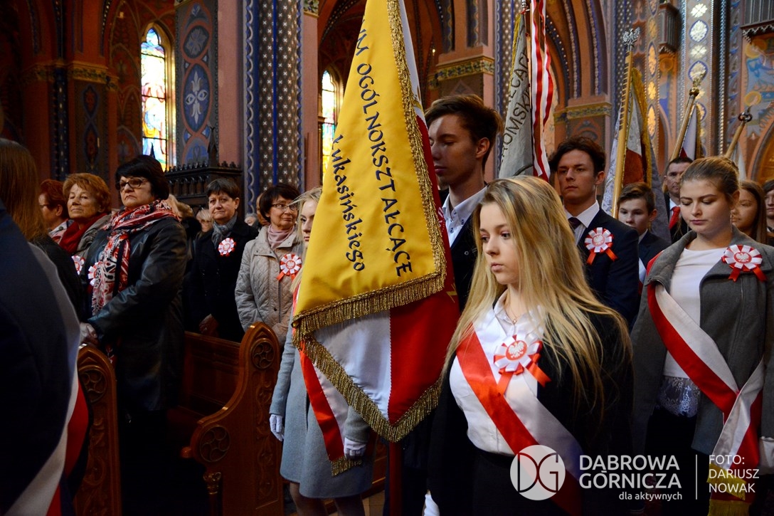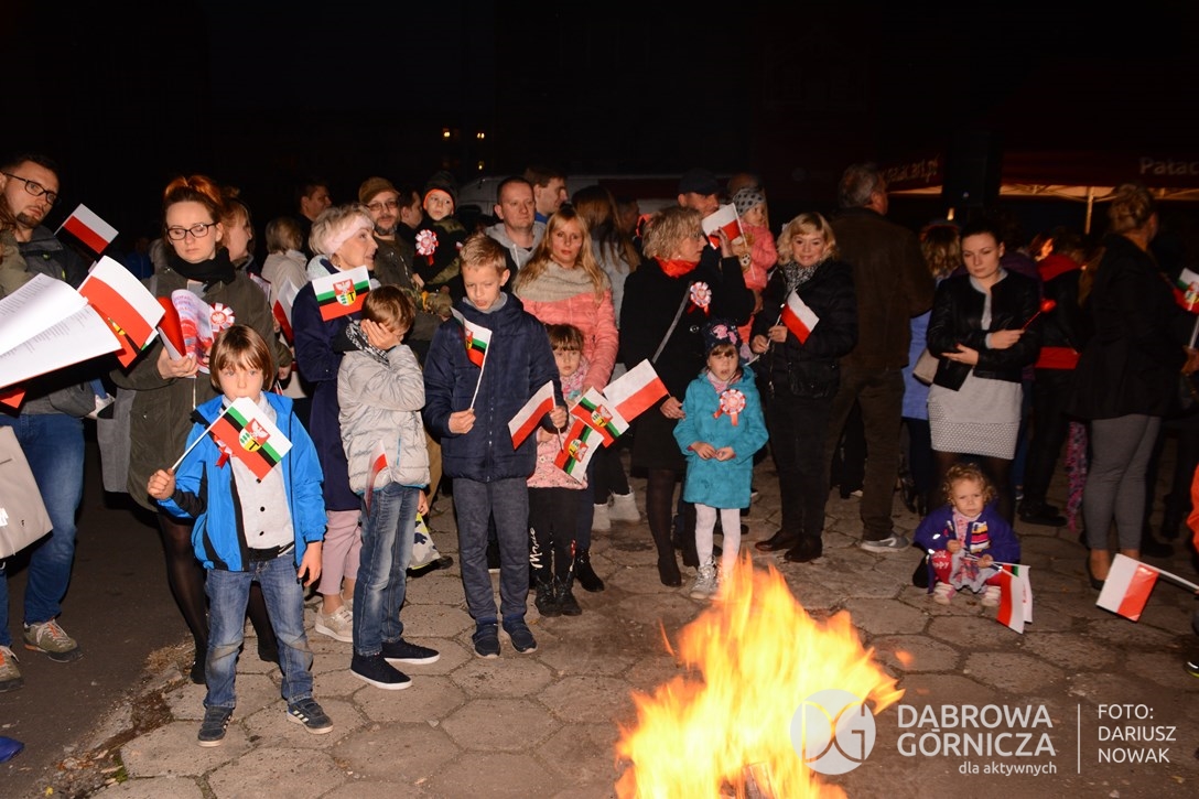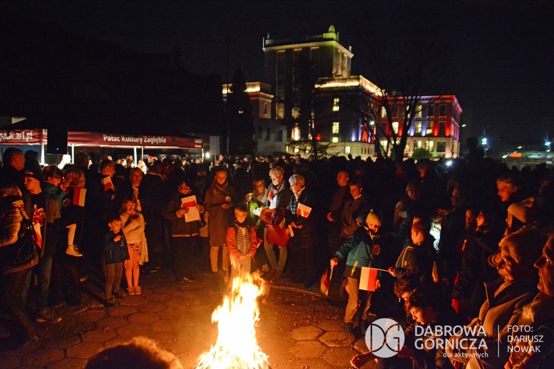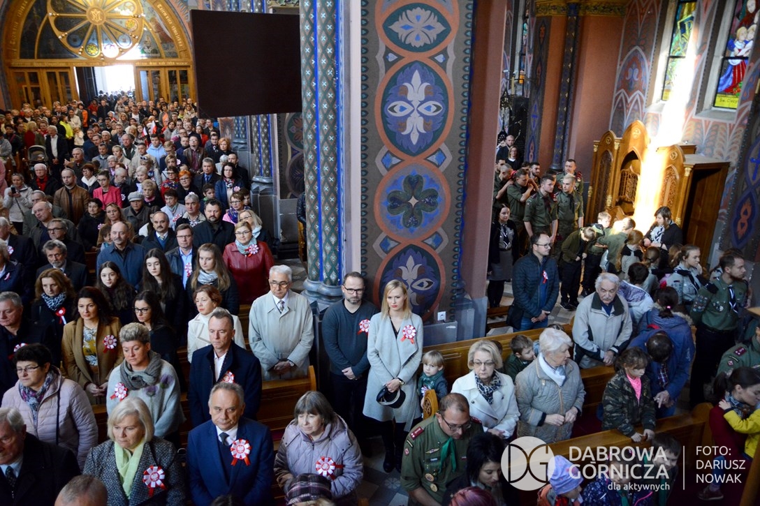 2018.11.11 Dąbrowa dla Niepodległej. Uroczysta msza w Bazylice, kwiaty na Placu Wolności, Ognisko patriotyczne i inne. FOTO: Dariusz Nowak (nddg)
