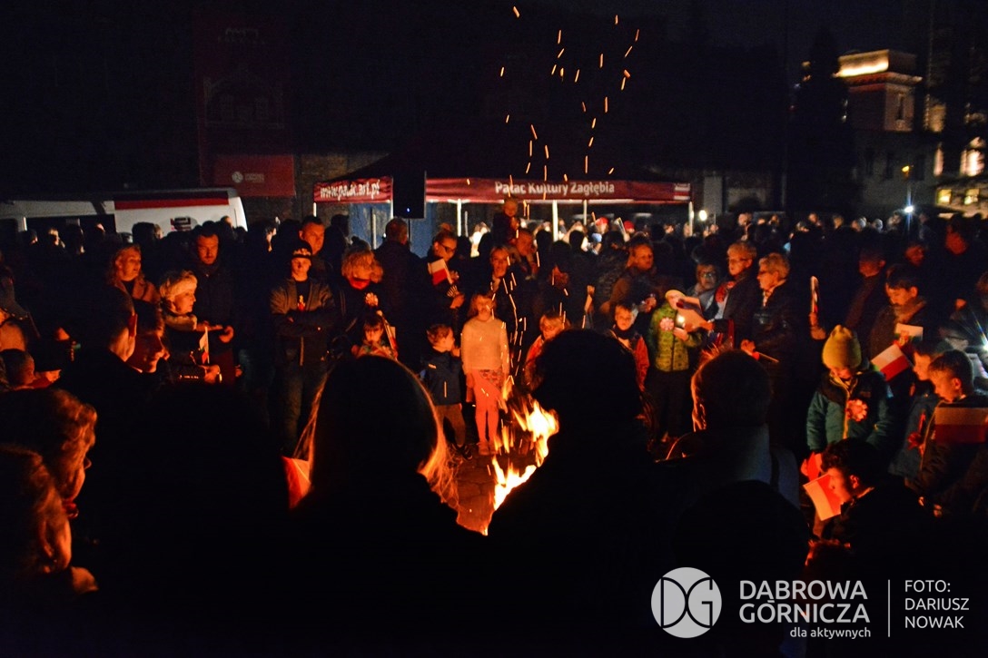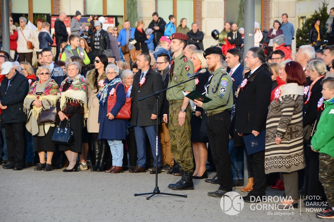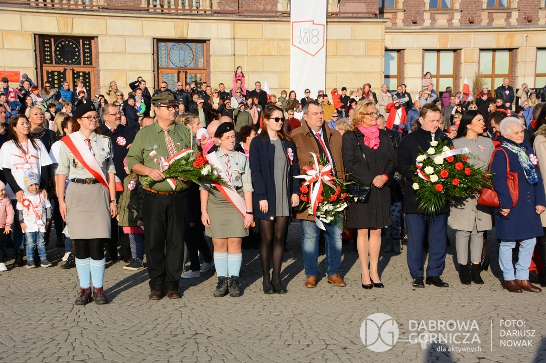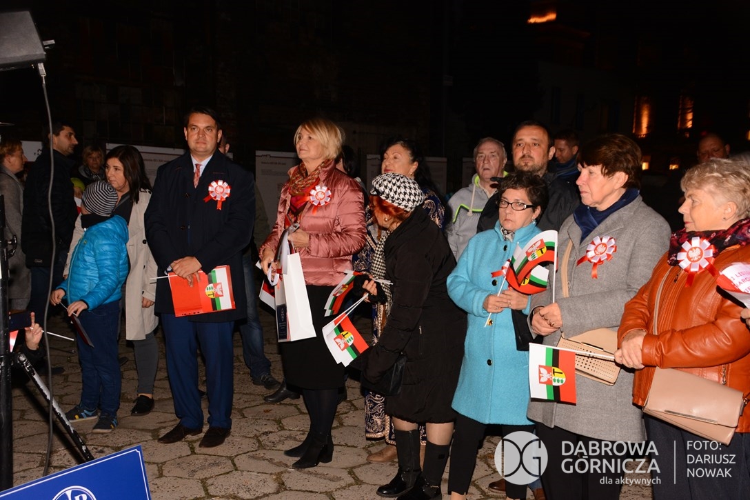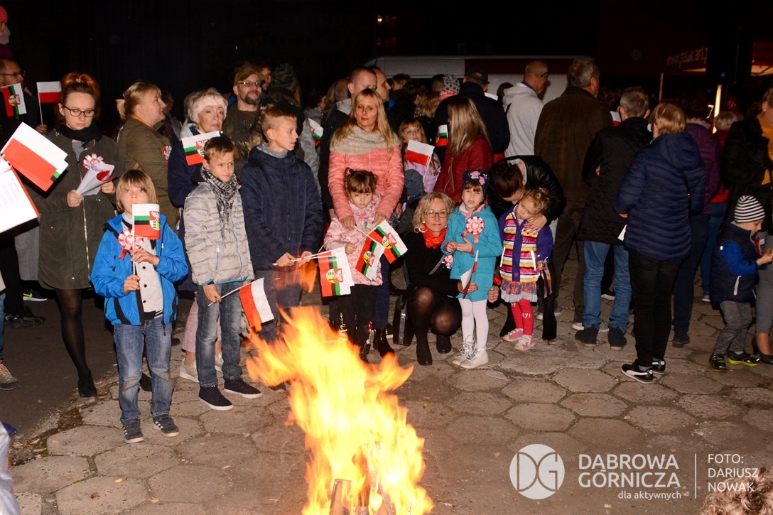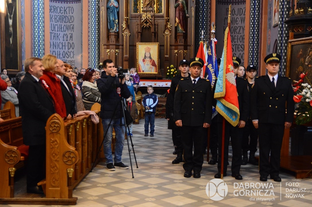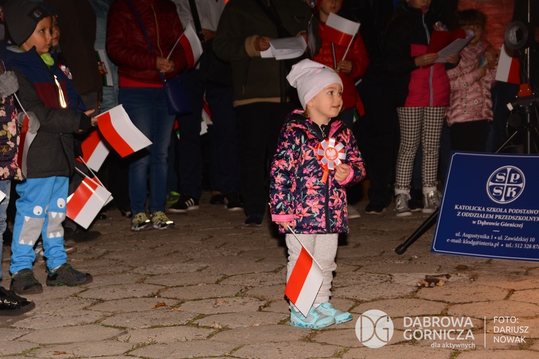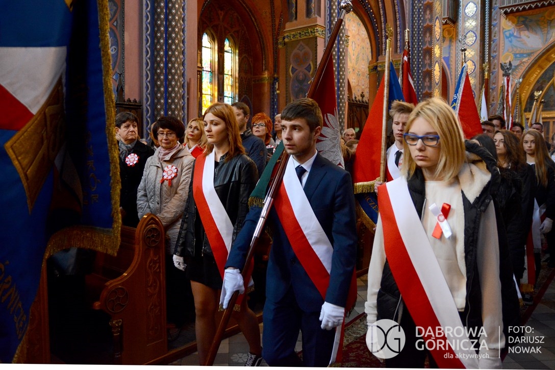 2018.11.11 Dąbrowa dla Niepodległej. Uroczysta msza w Bazylice, kwiaty na Placu Wolności, Ognisko patriotyczne i inne. FOTO: Dariusz Nowak (nddg)
