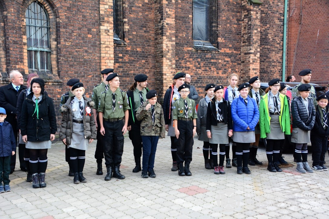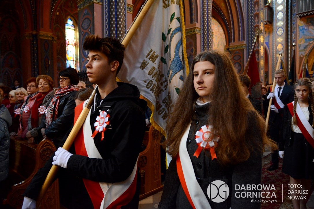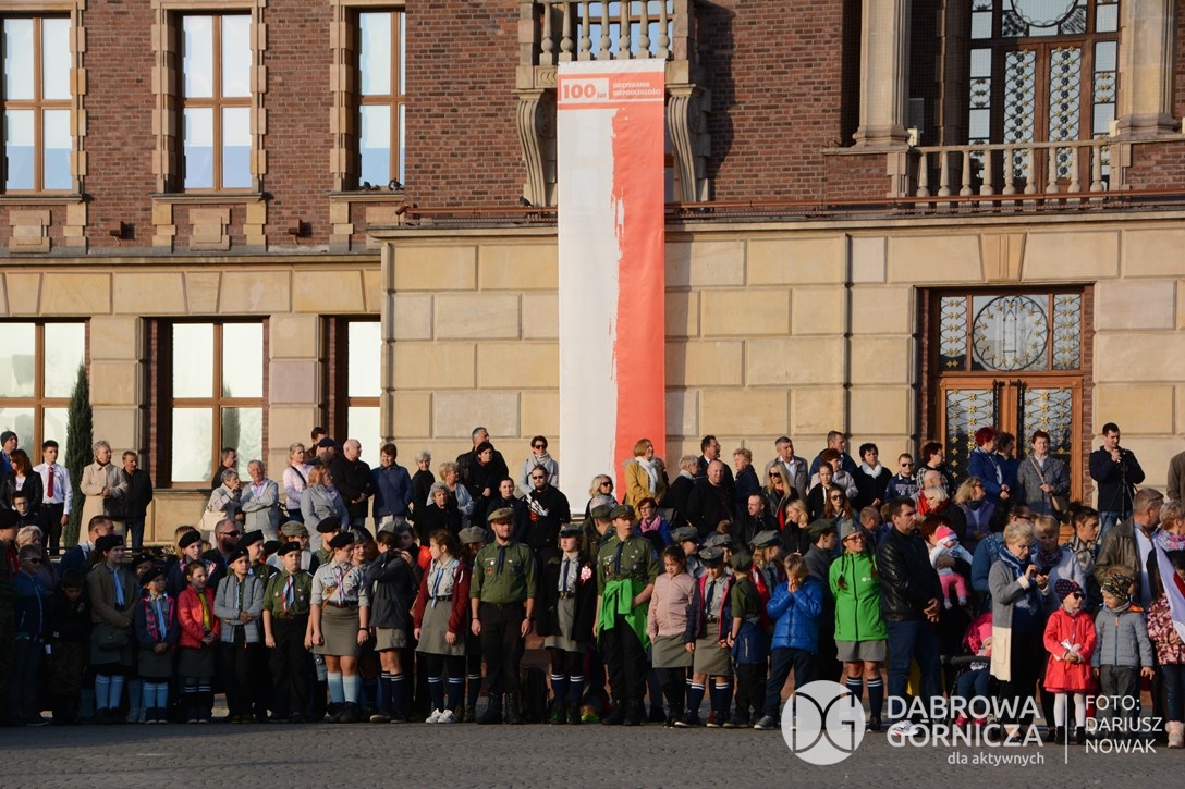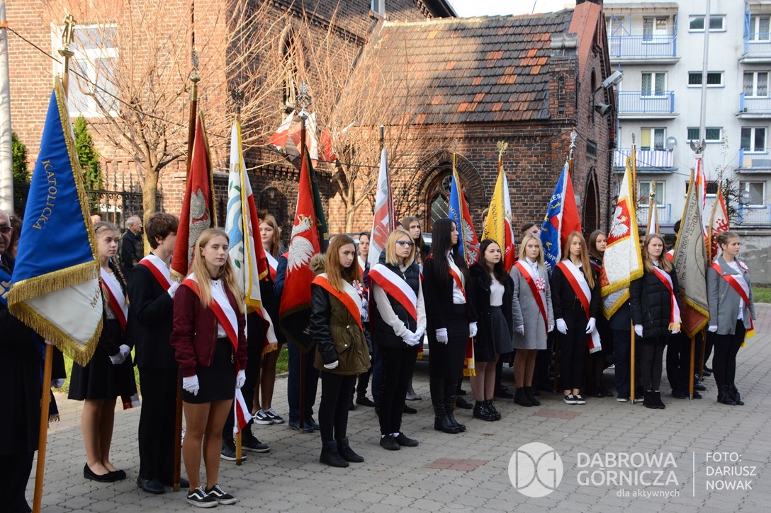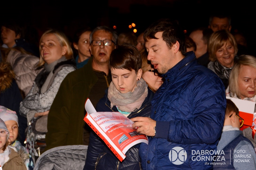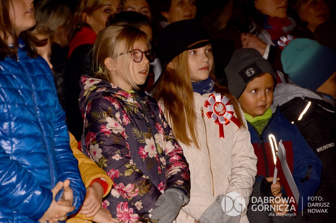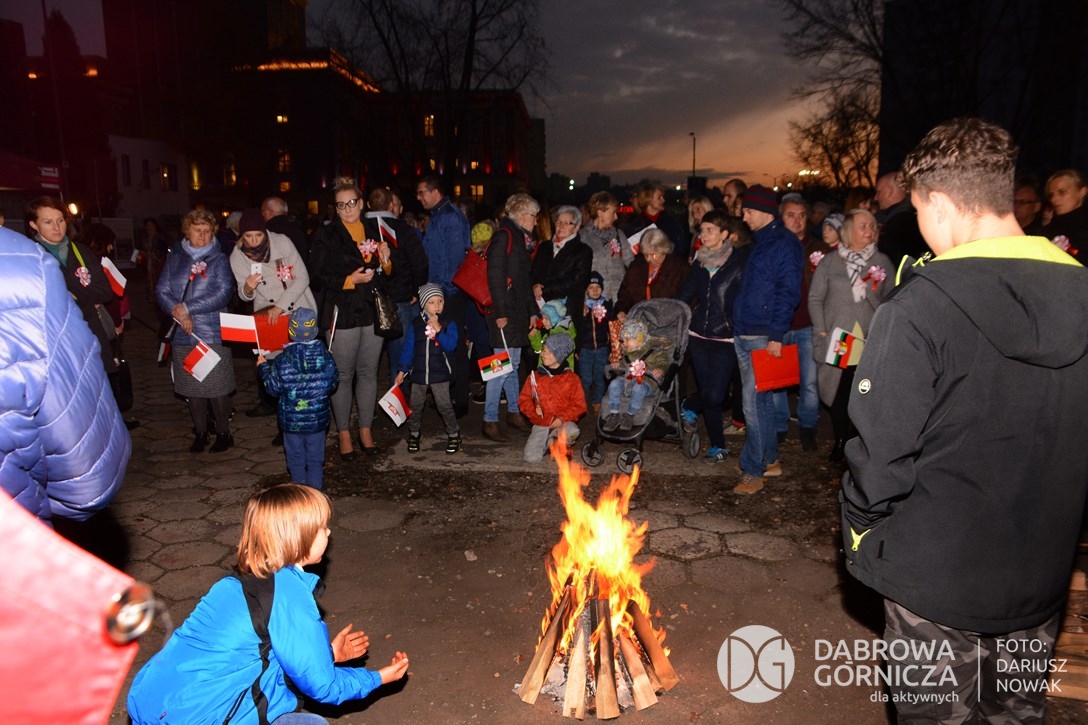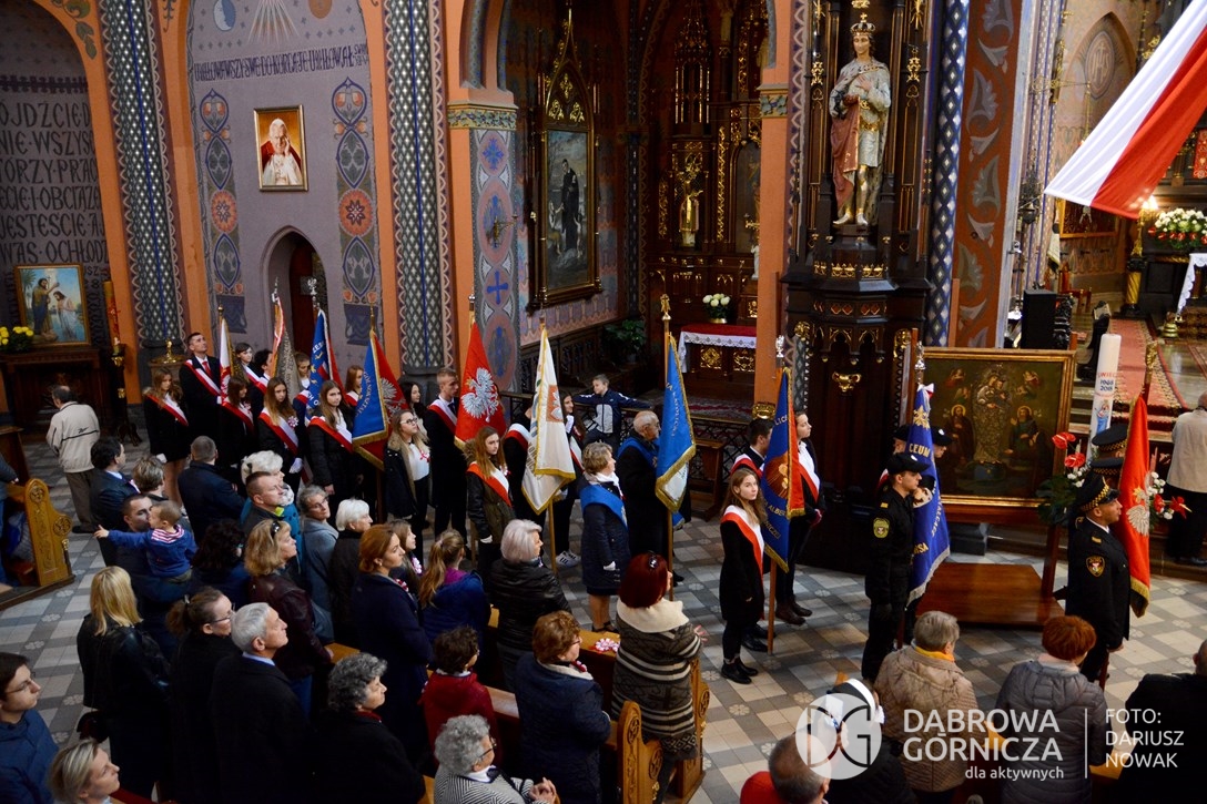 2018.11.11 Dąbrowa dla Niepodległej. Uroczysta msza w Bazylice, kwiaty na Placu Wolności, Ognisko patriotyczne i inne. FOTO: Dariusz Nowak (nddg)
