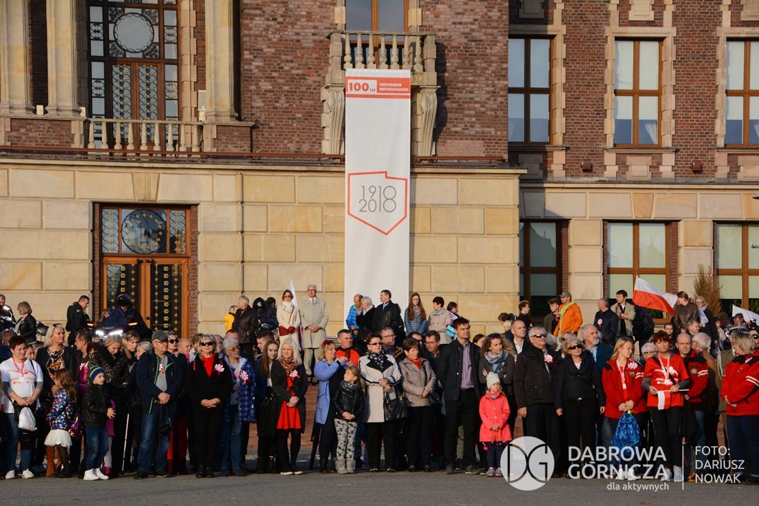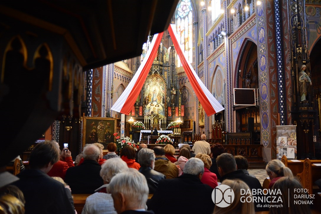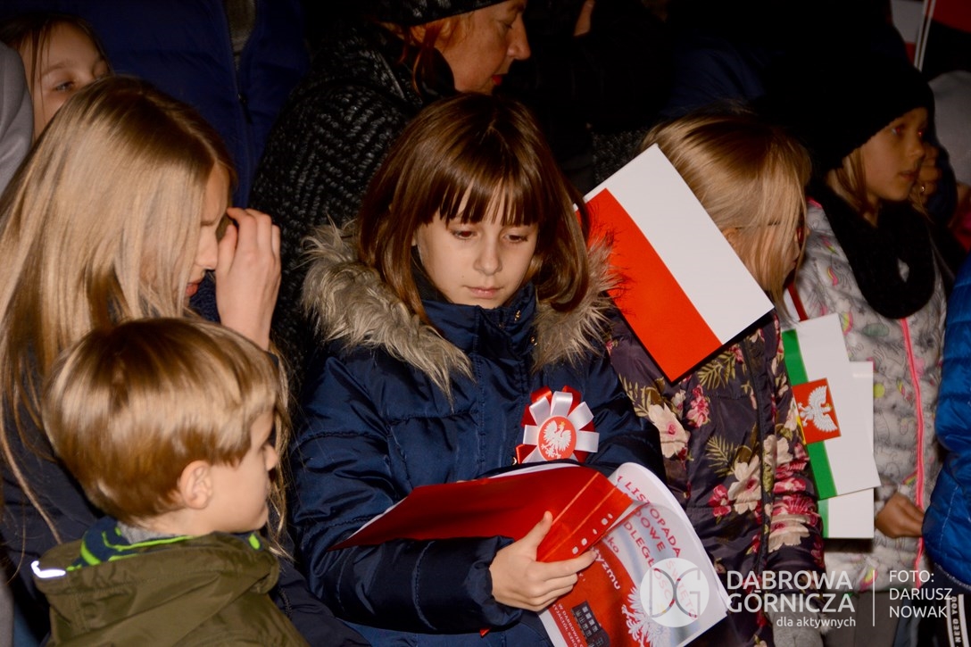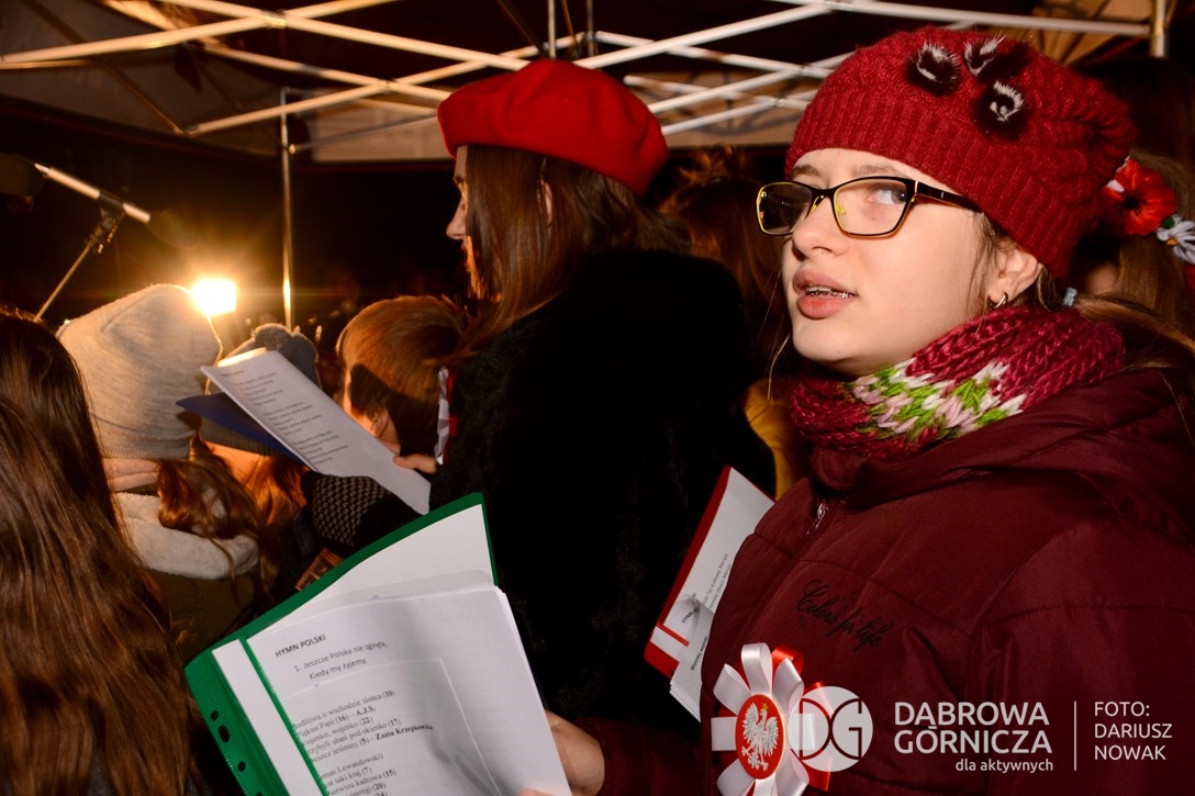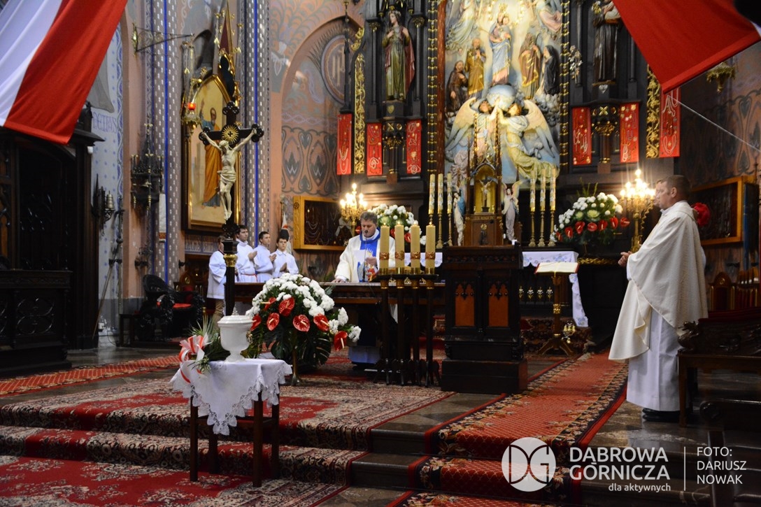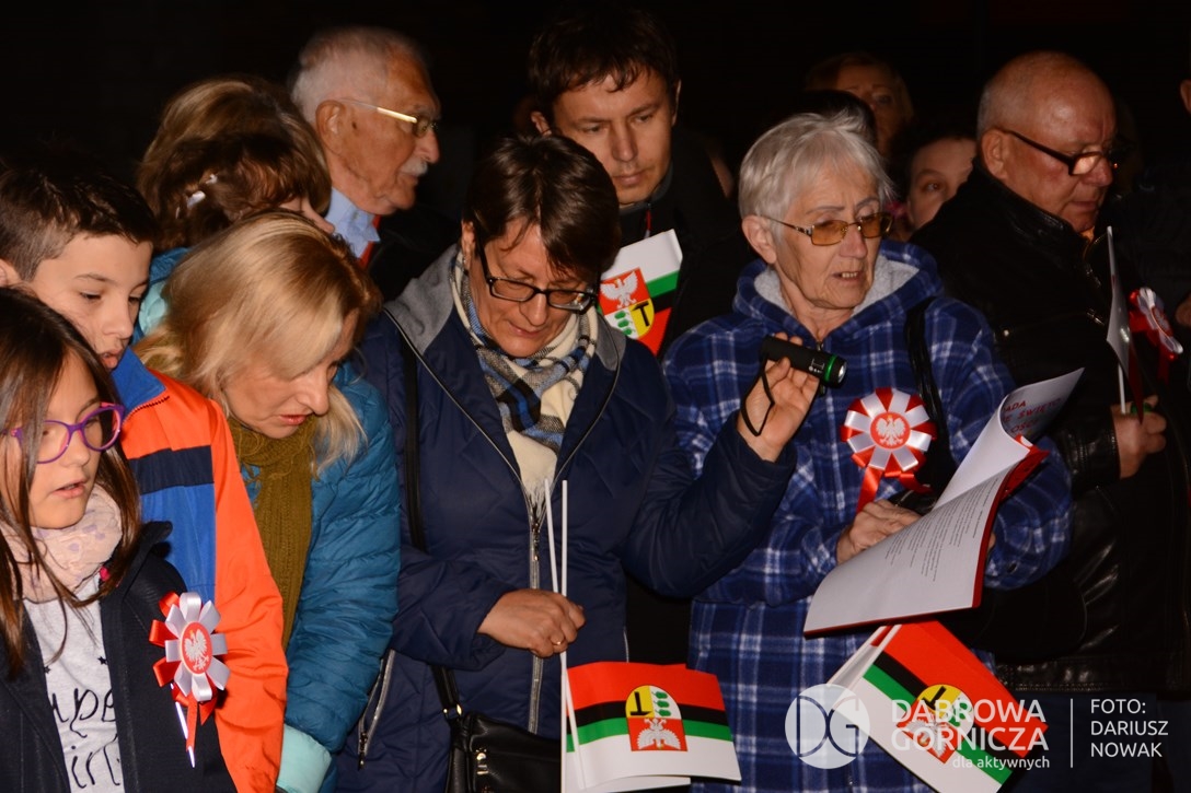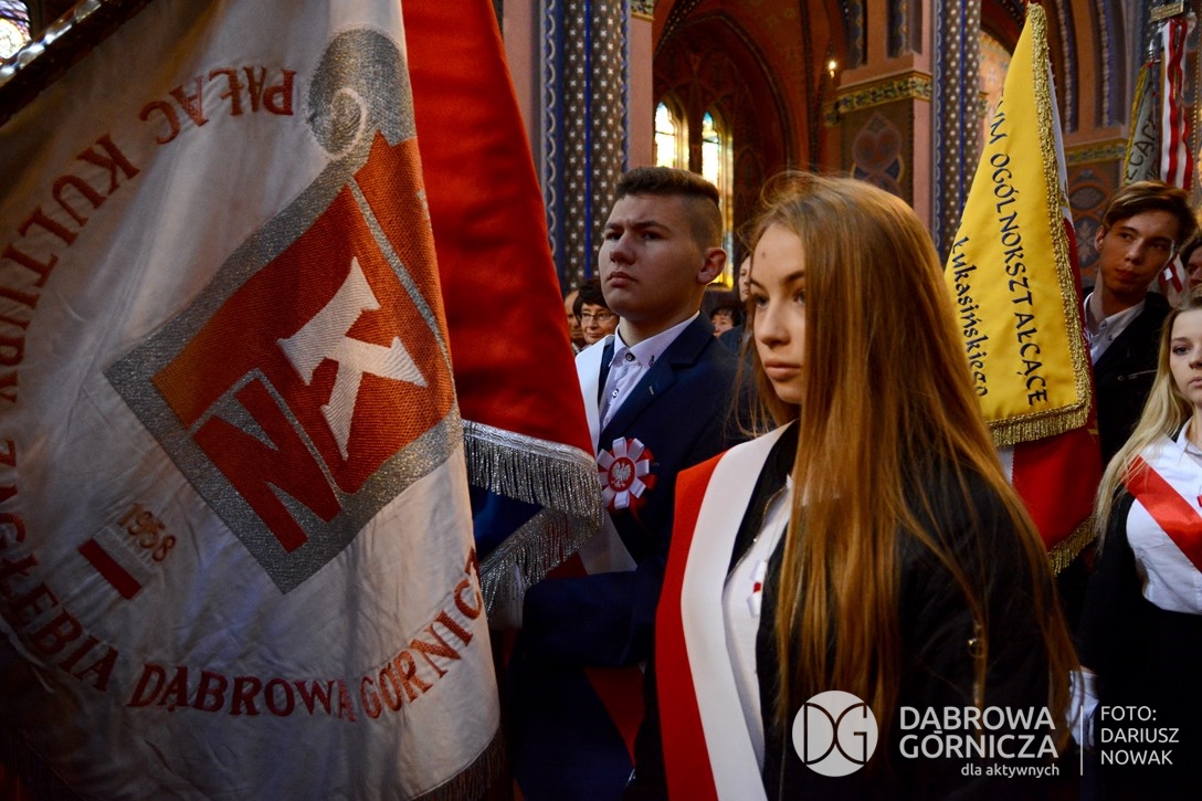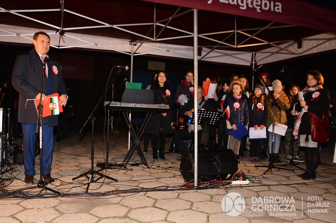2018.11.11 Dąbrowa dla Niepodległej. Uroczysta msza w Bazylice, kwiaty na Placu Wolności, Ognisko patriotyczne i inne. FOTO: Dariusz Nowak (nddg)