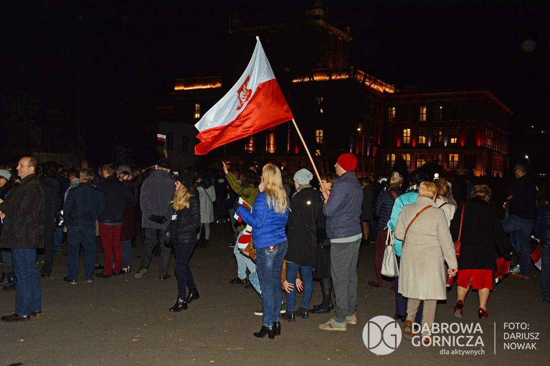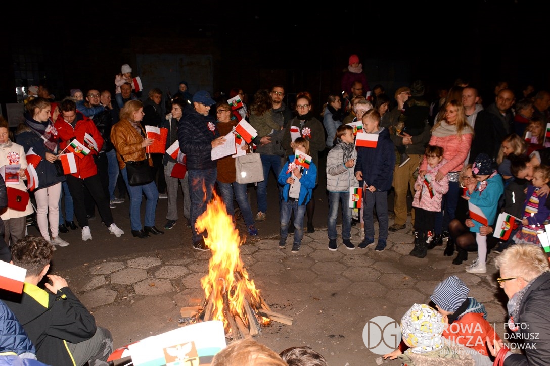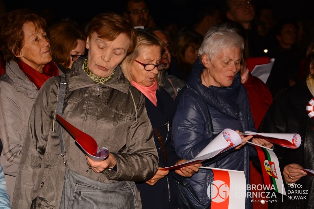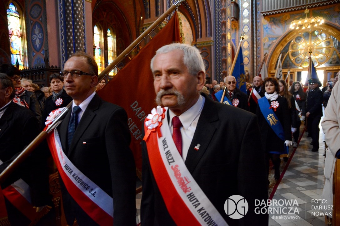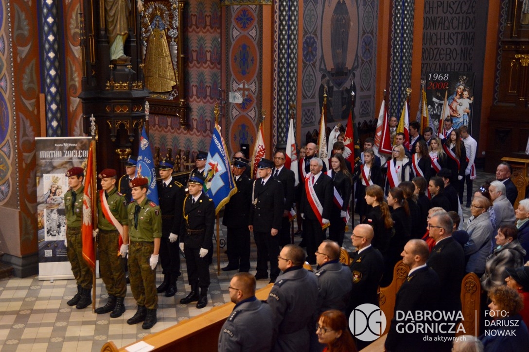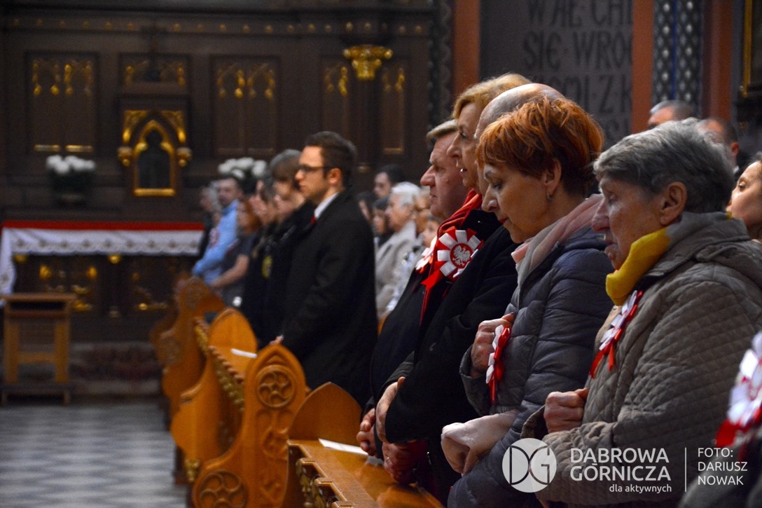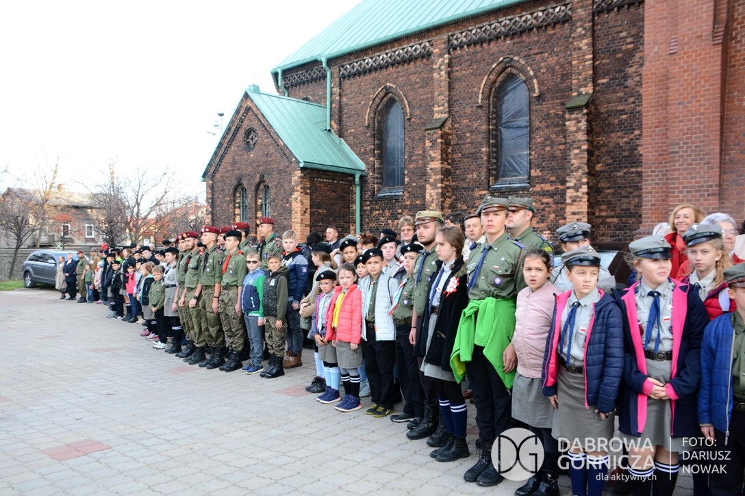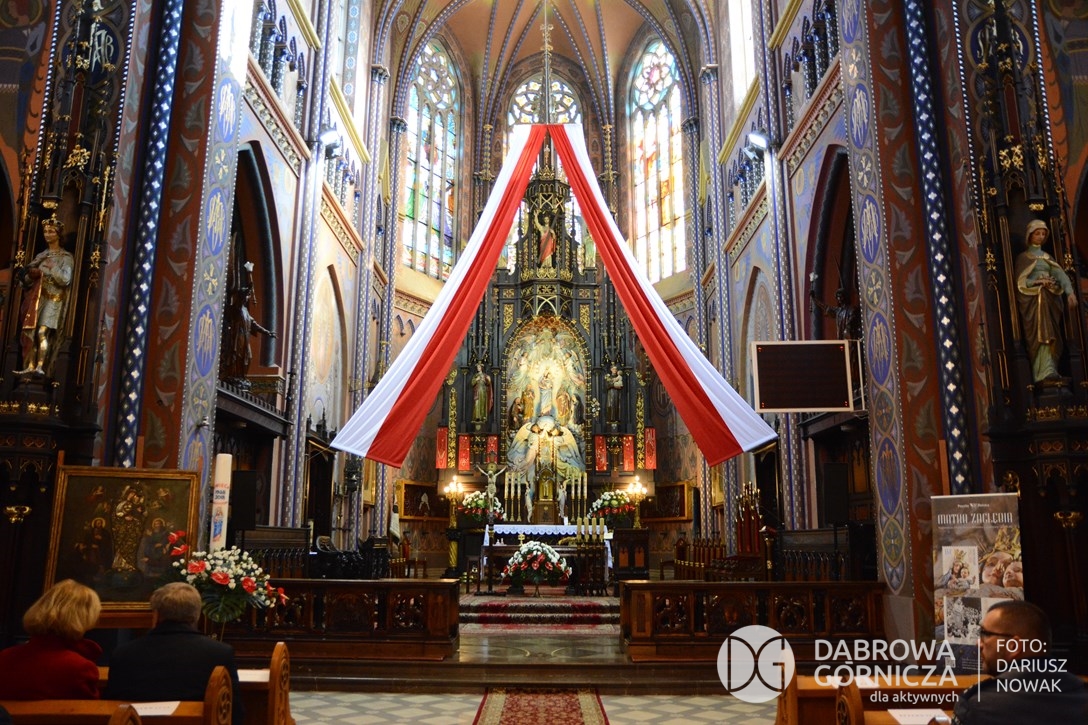 2018.11.11 Dąbrowa dla Niepodległej. Uroczysta msza w Bazylice, kwiaty na Placu Wolności, Ognisko patriotyczne i inne. FOTO: Dariusz Nowak (nddg)