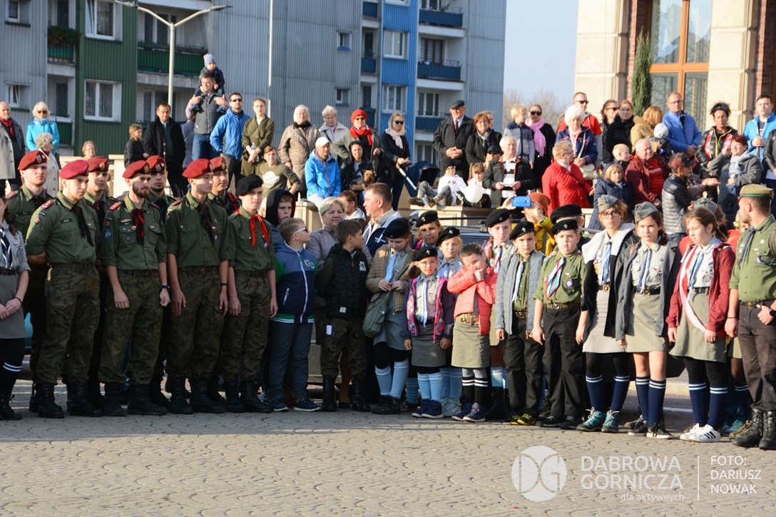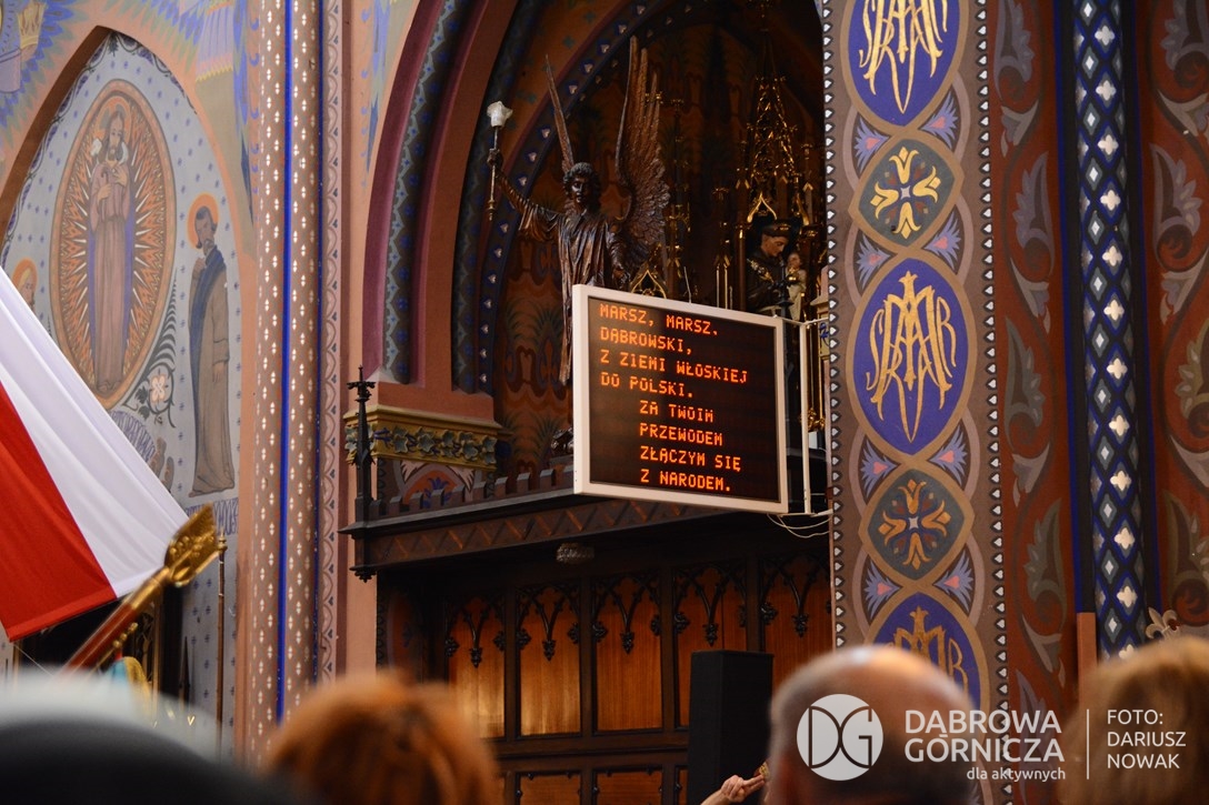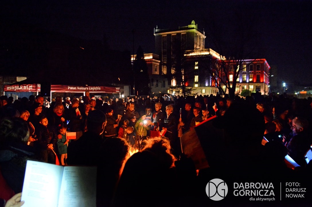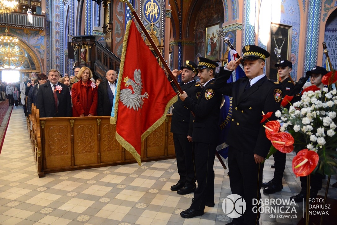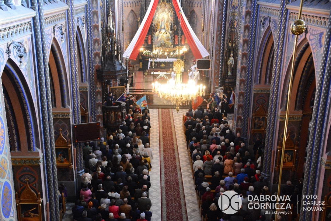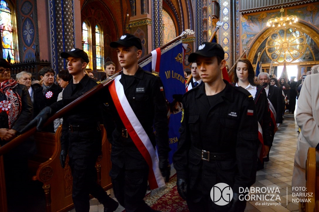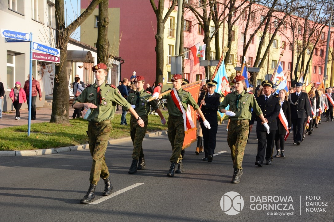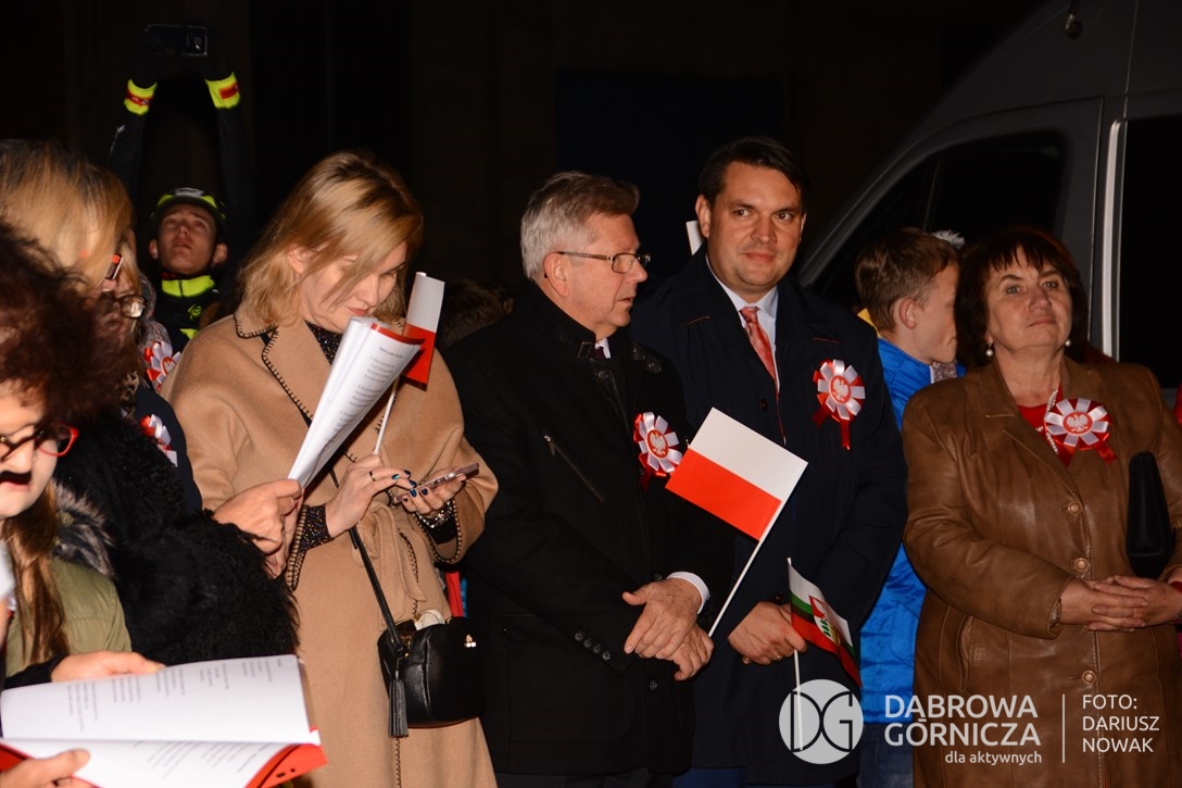 2018.11.11 Dąbrowa dla Niepodległej. Uroczysta msza w Bazylice, kwiaty na Placu Wolności, Ognisko patriotyczne i inne. FOTO: Dariusz Nowak (nddg)