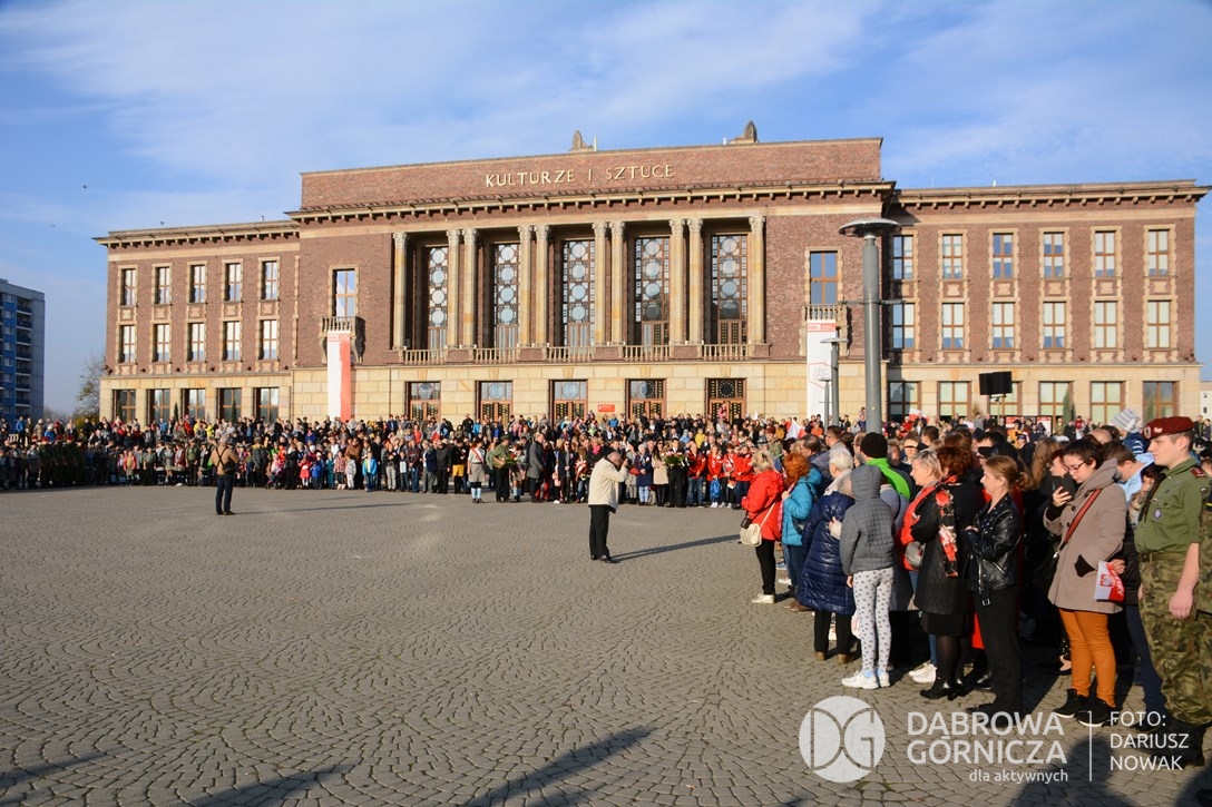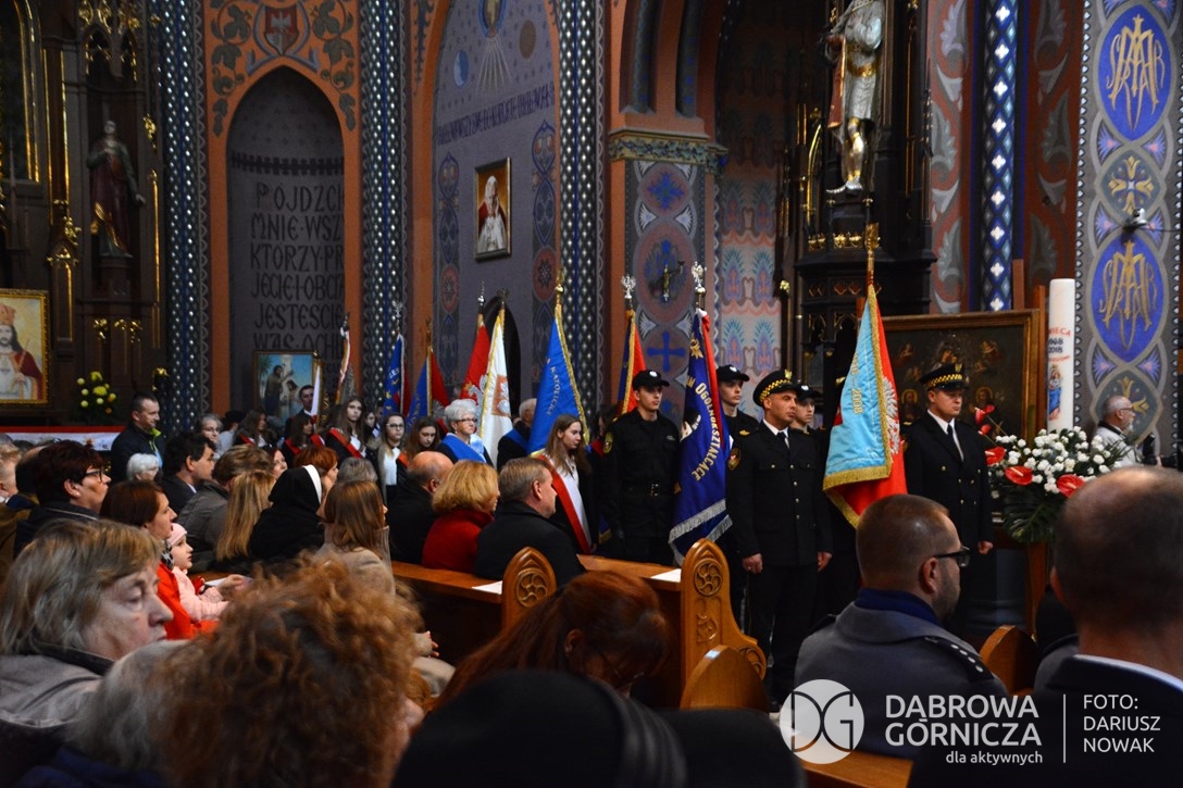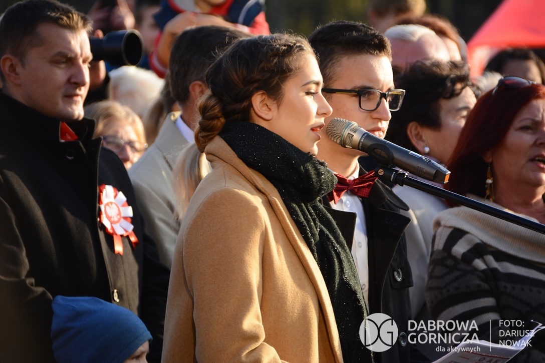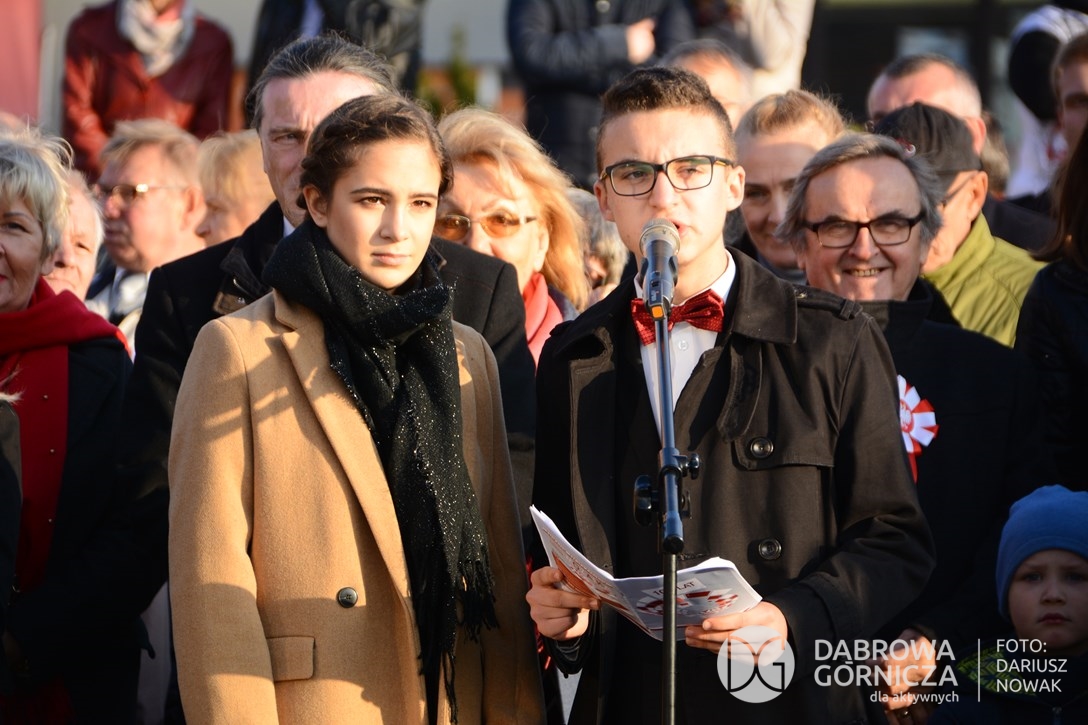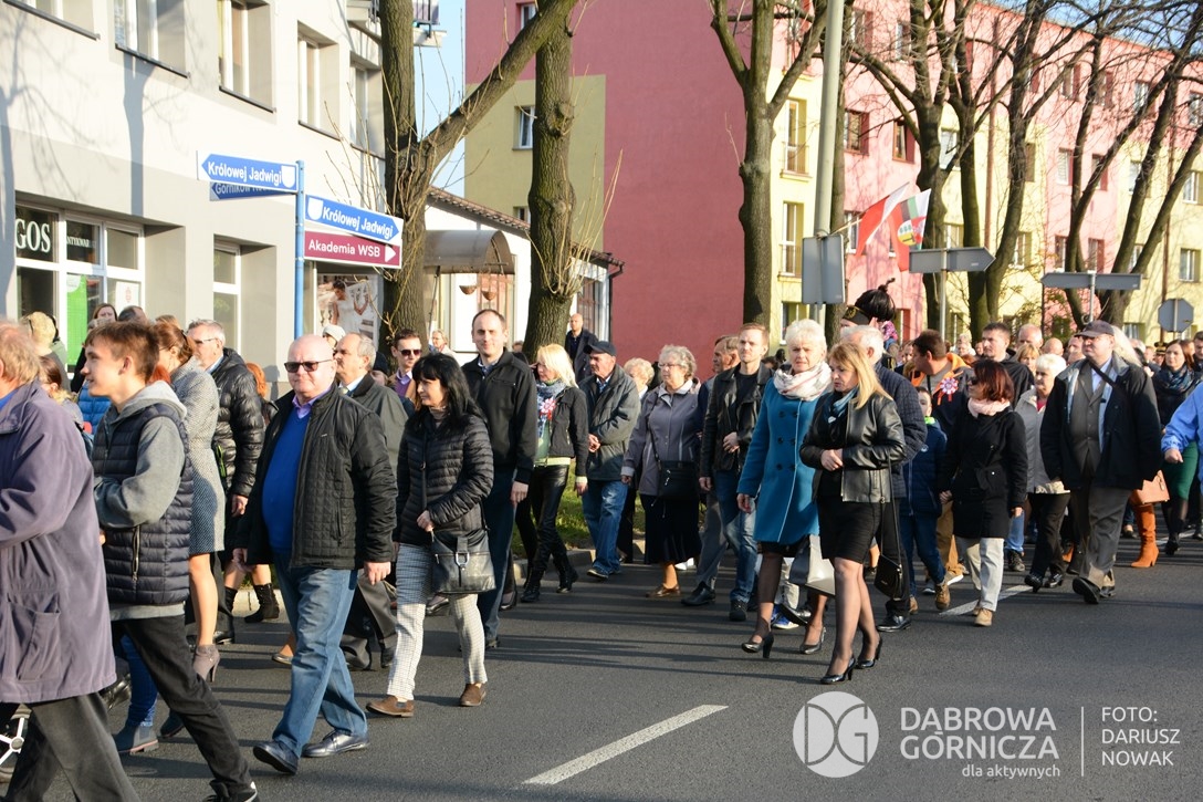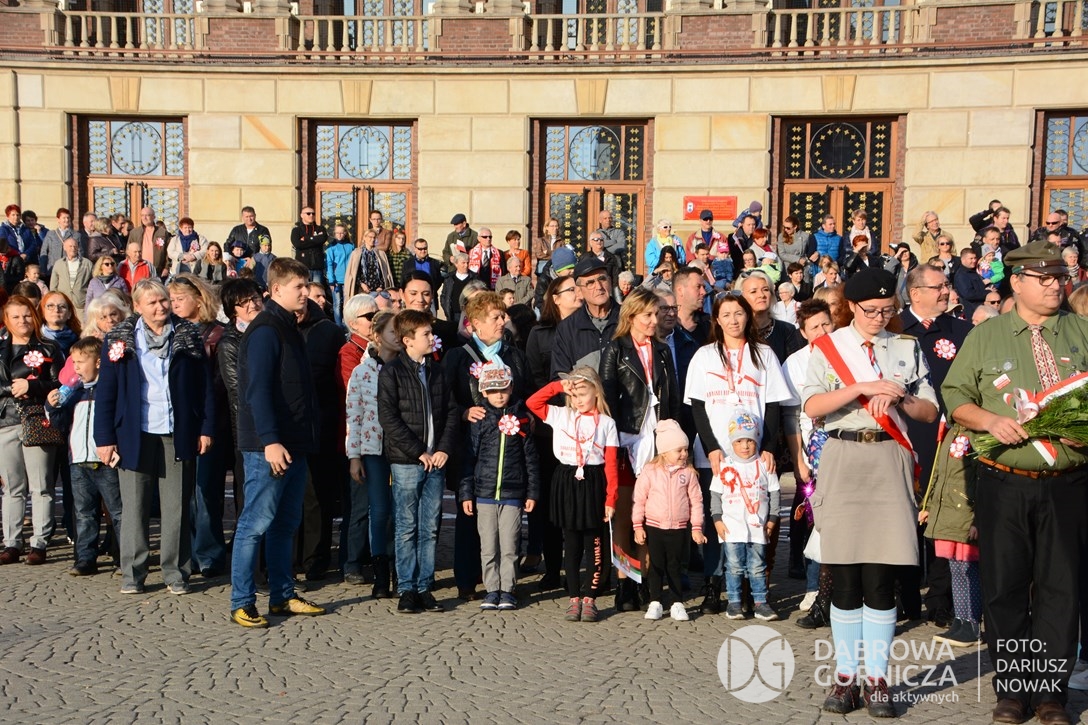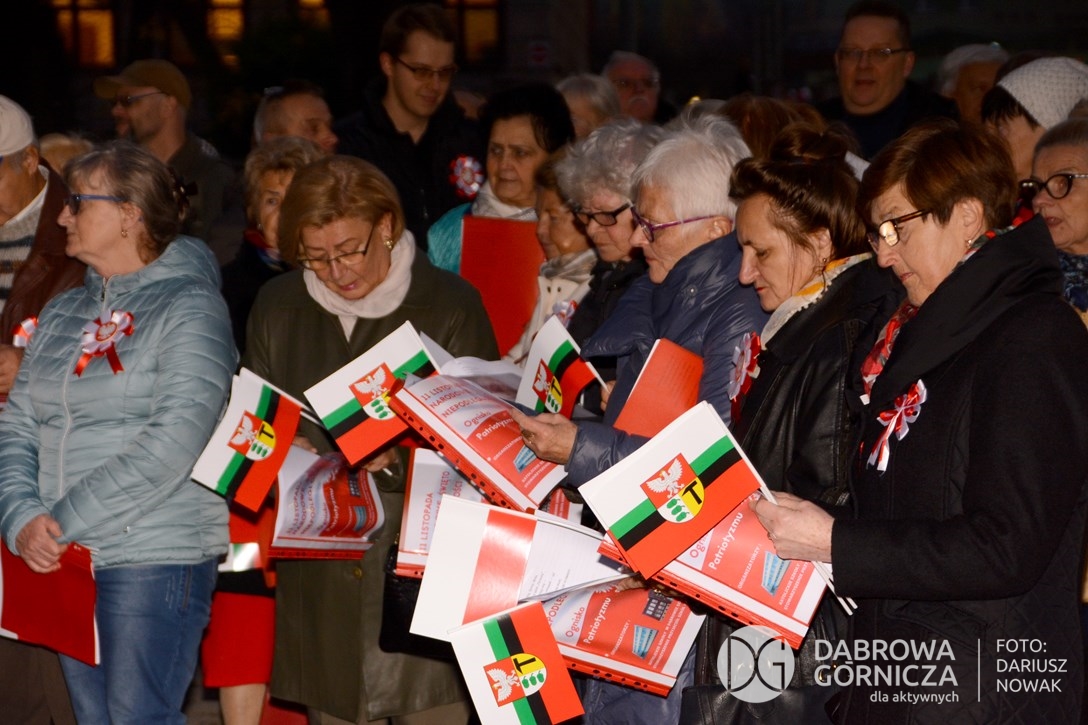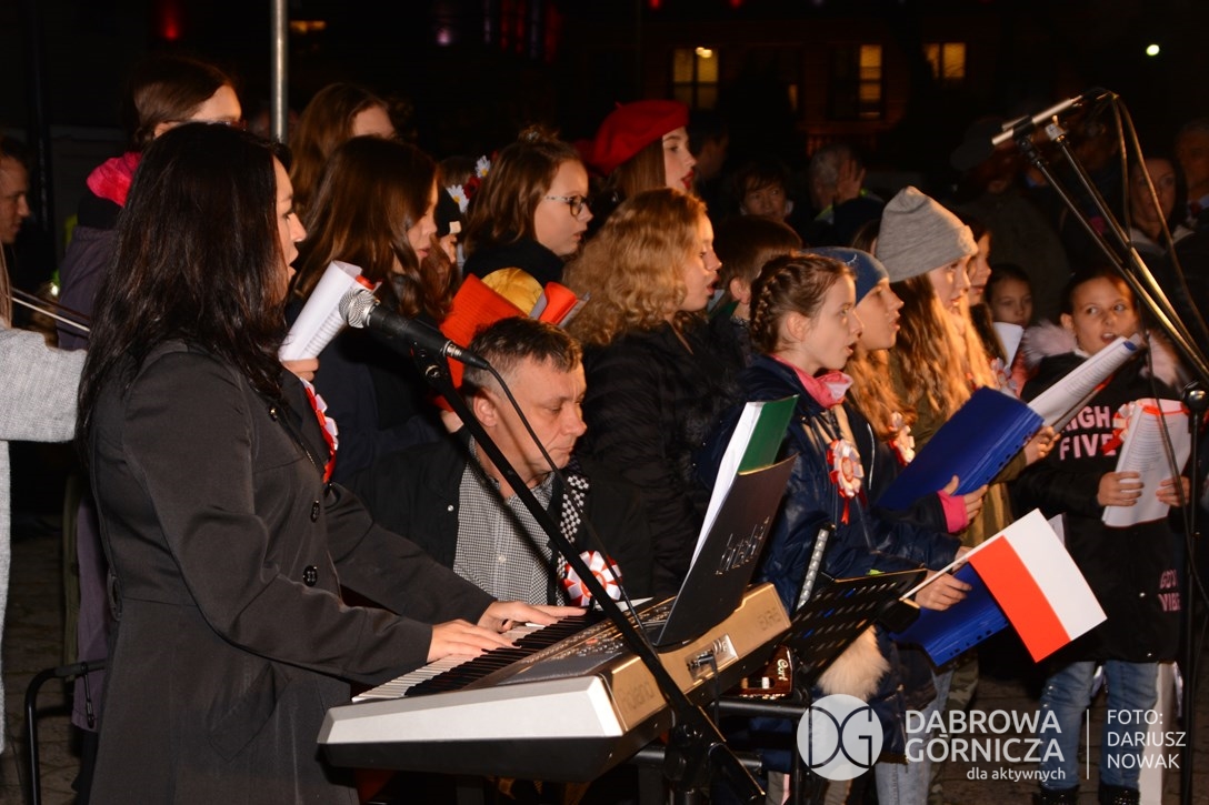 2018.11.11 Dąbrowa dla Niepodległej. Uroczysta msza w Bazylice, kwiaty na Placu Wolności, Ognisko patriotyczne i inne. FOTO: Dariusz Nowak (nddg)