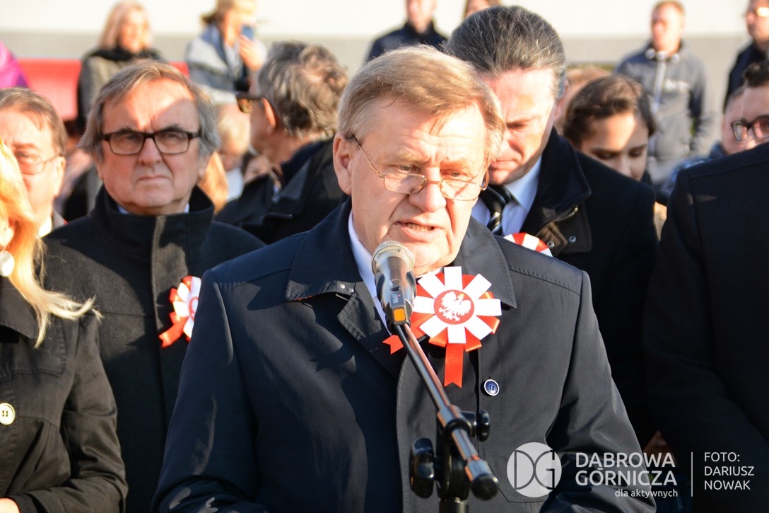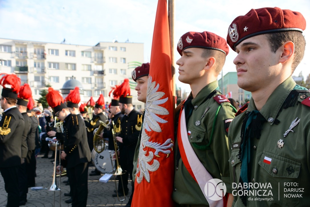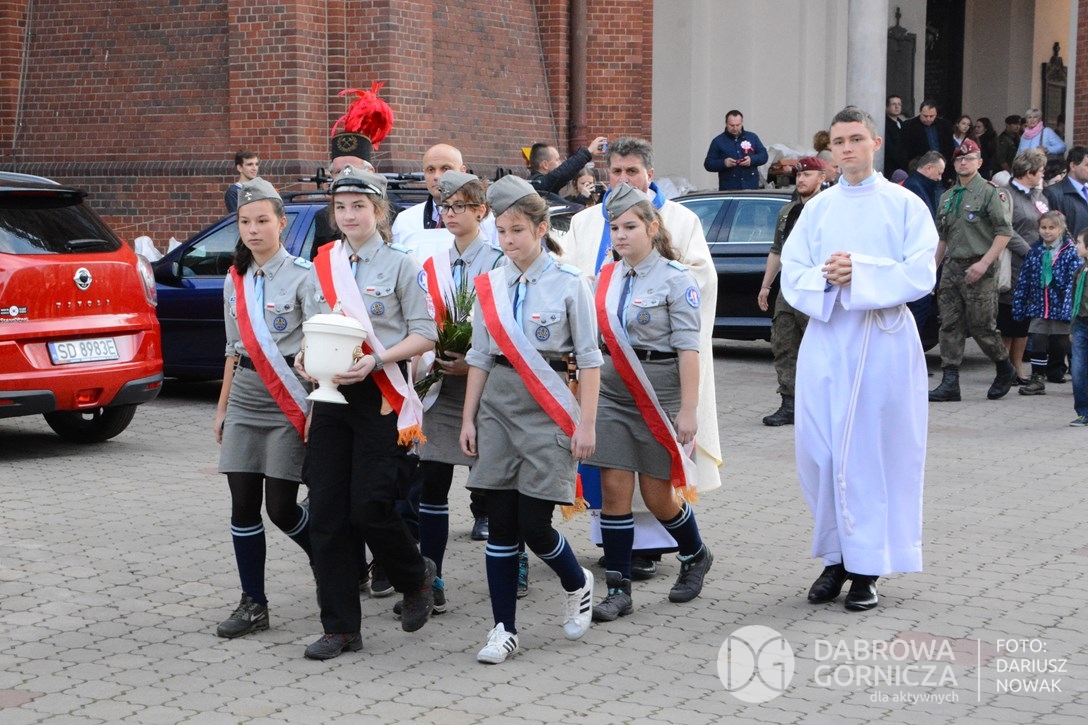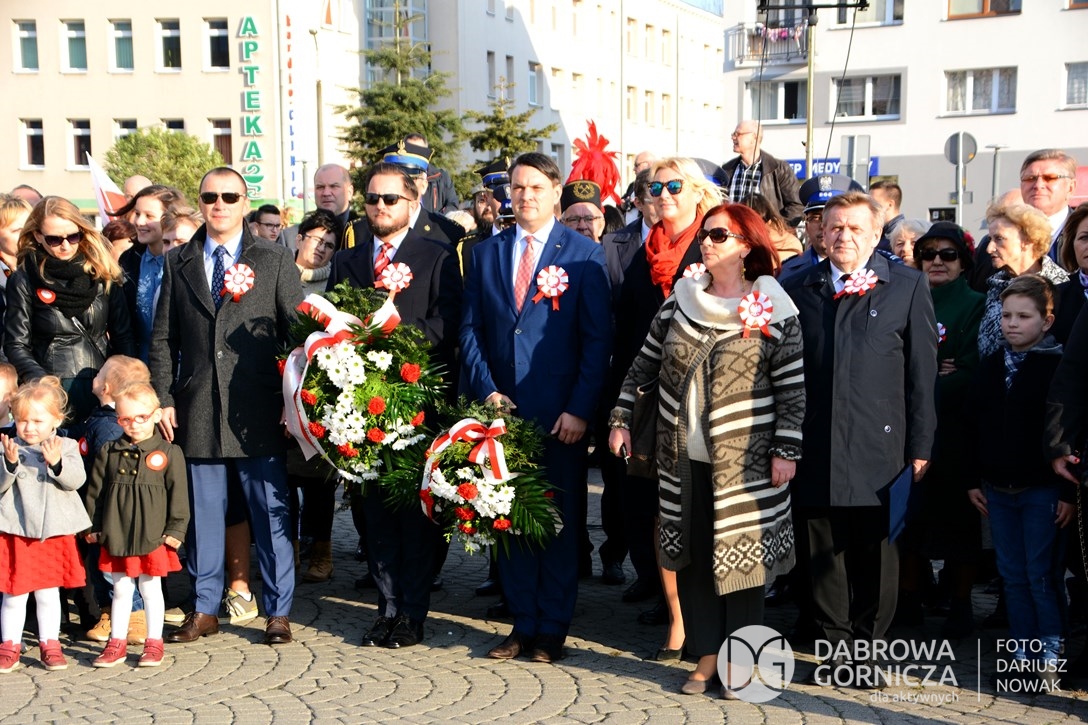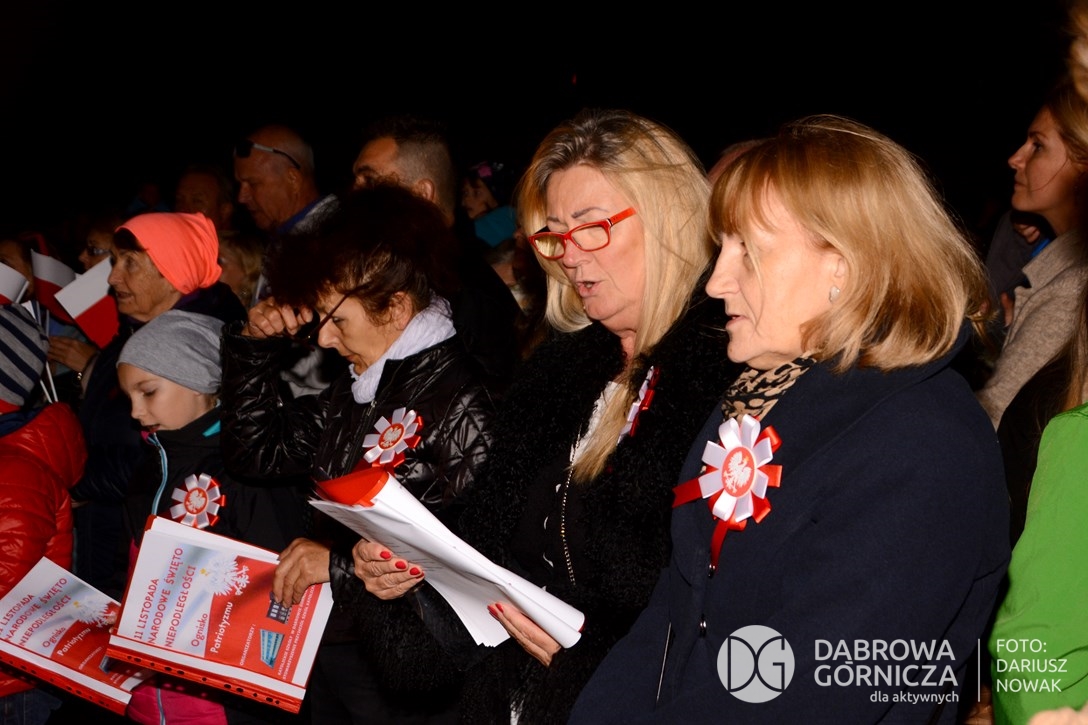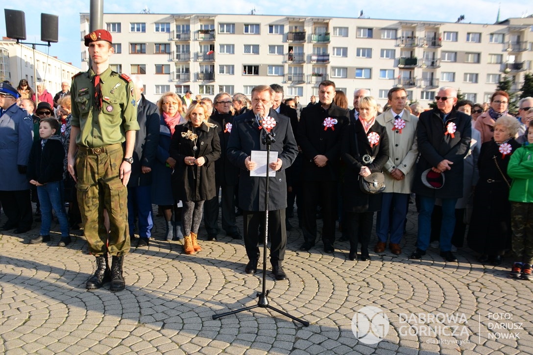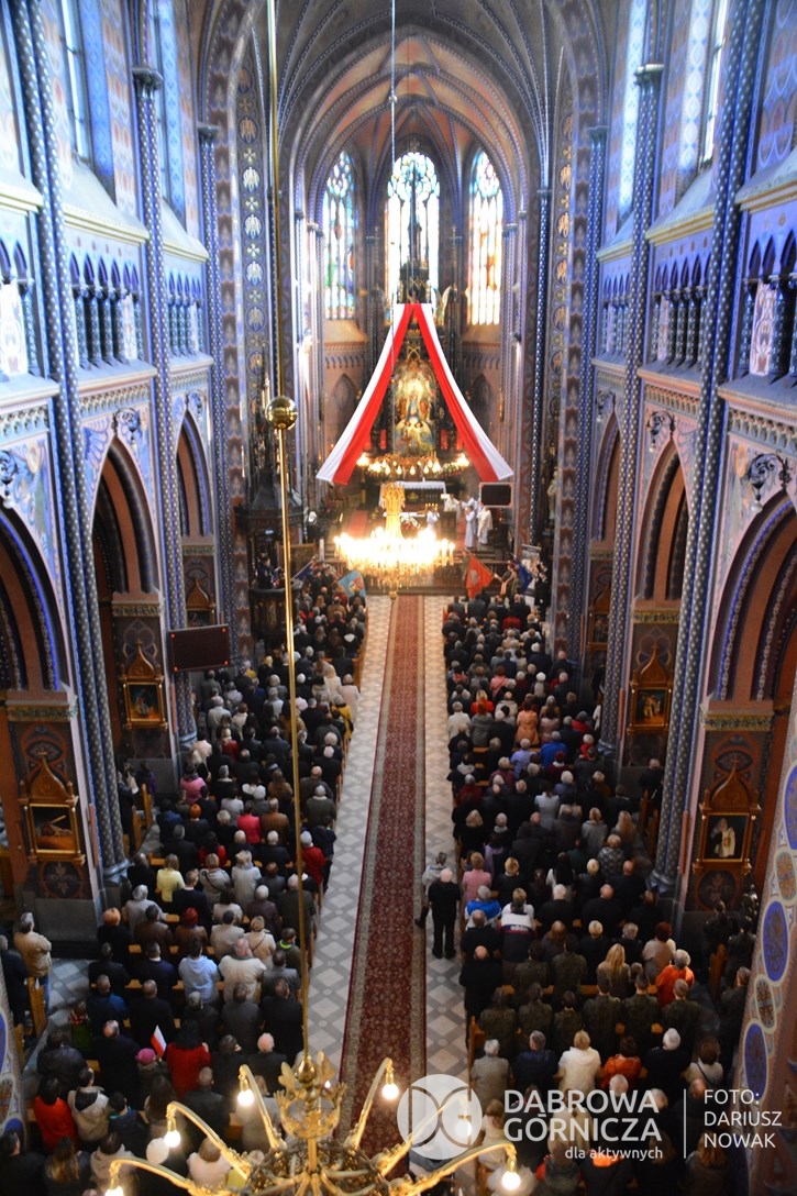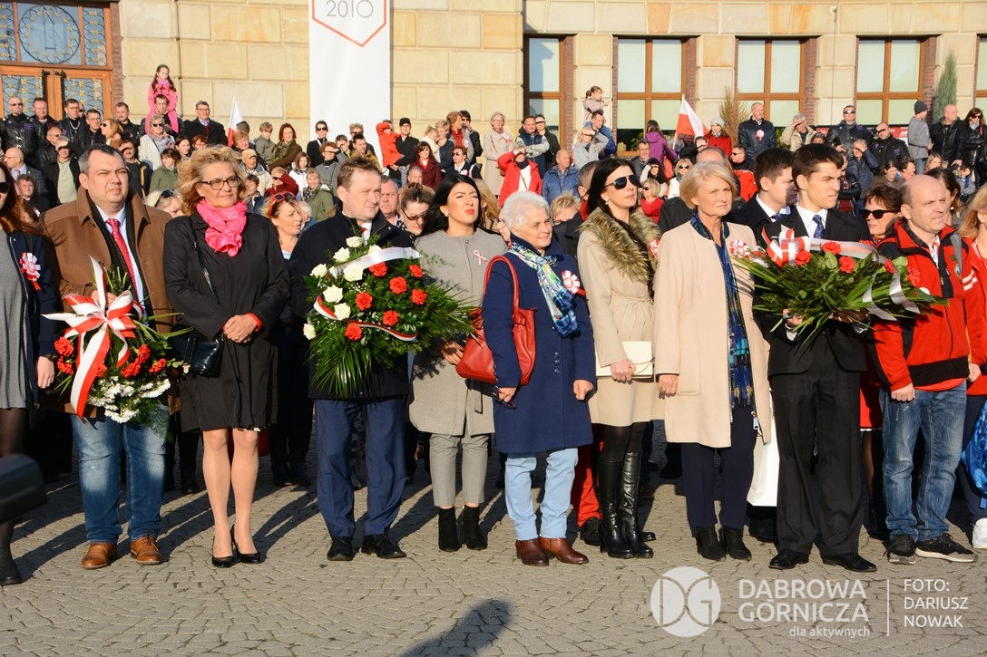 2018.11.11 Dąbrowa dla Niepodległej. Uroczysta msza w Bazylice, kwiaty na Placu Wolności, Ognisko patriotyczne i inne. FOTO: Dariusz Nowak (nddg)