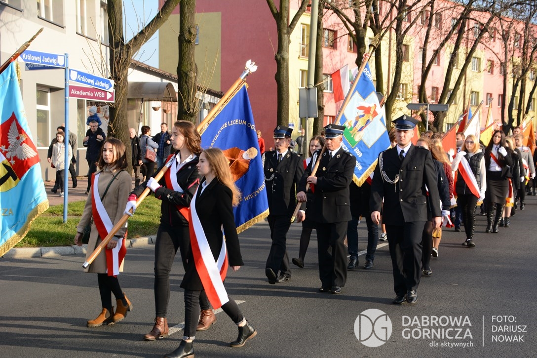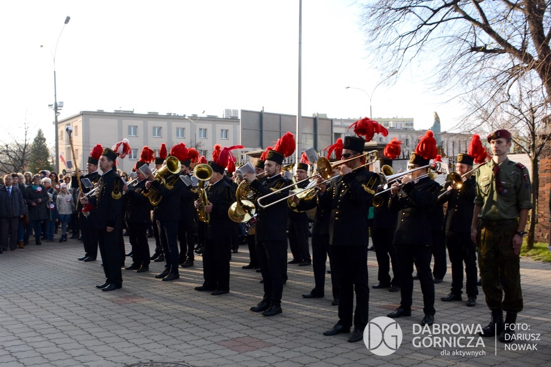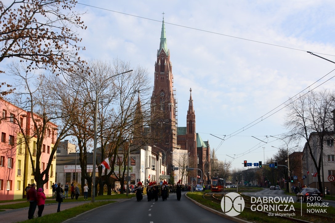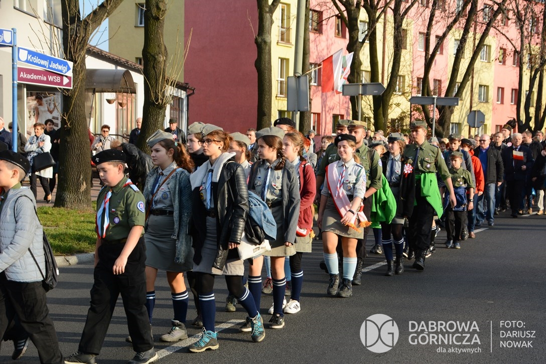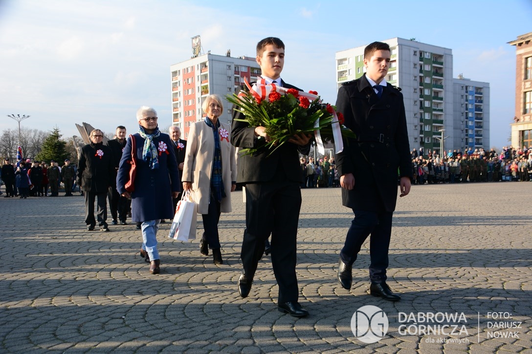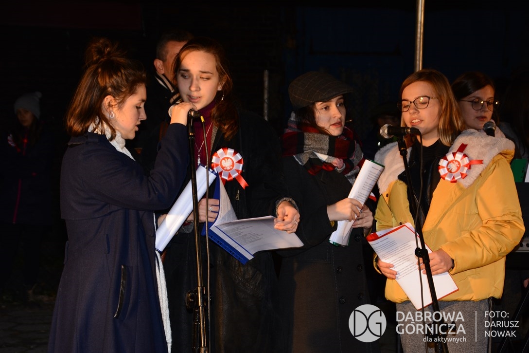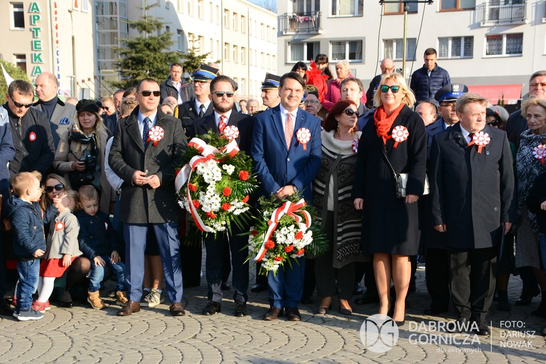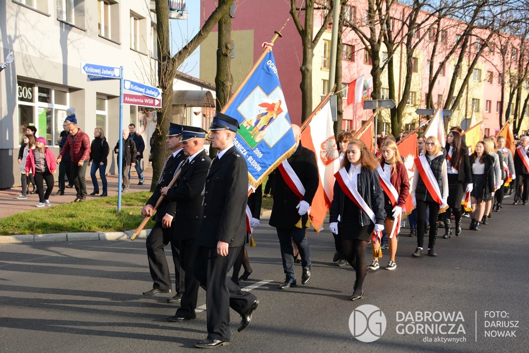 2018.11.11 Dąbrowa dla Niepodległej. Uroczysta msza w Bazylice, kwiaty na Placu Wolności, Ognisko patriotyczne i inne. FOTO: Dariusz Nowak (nddg)