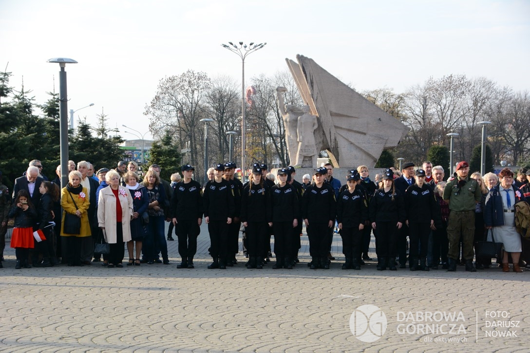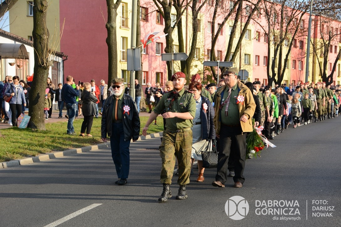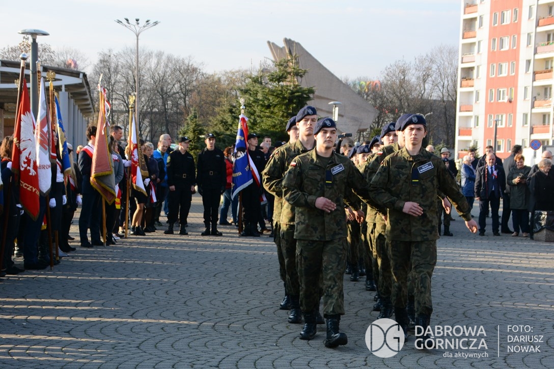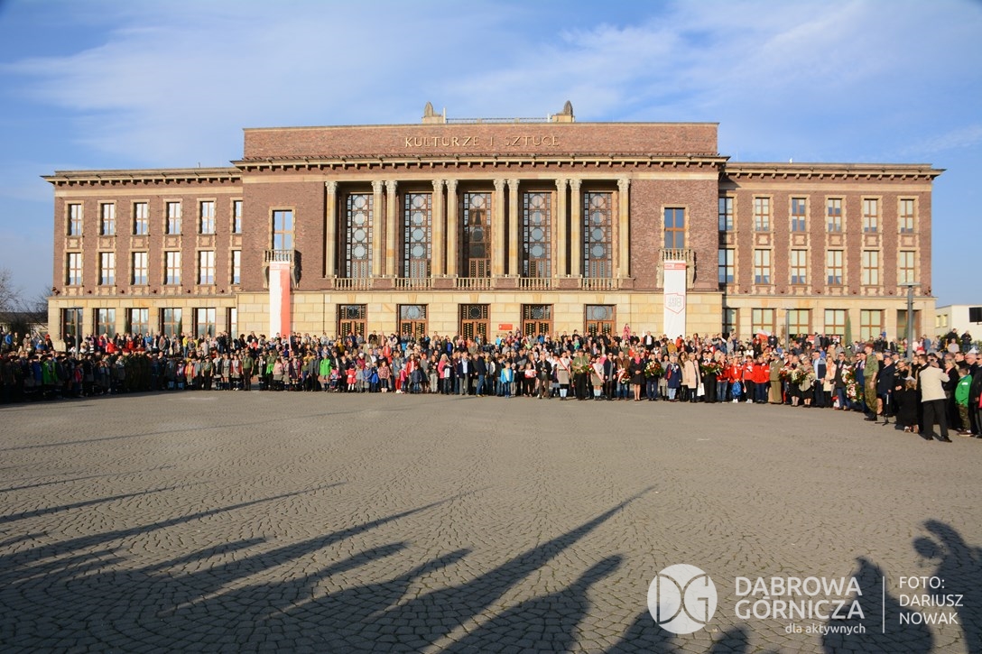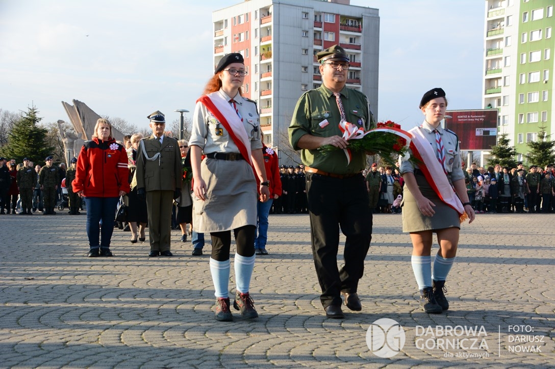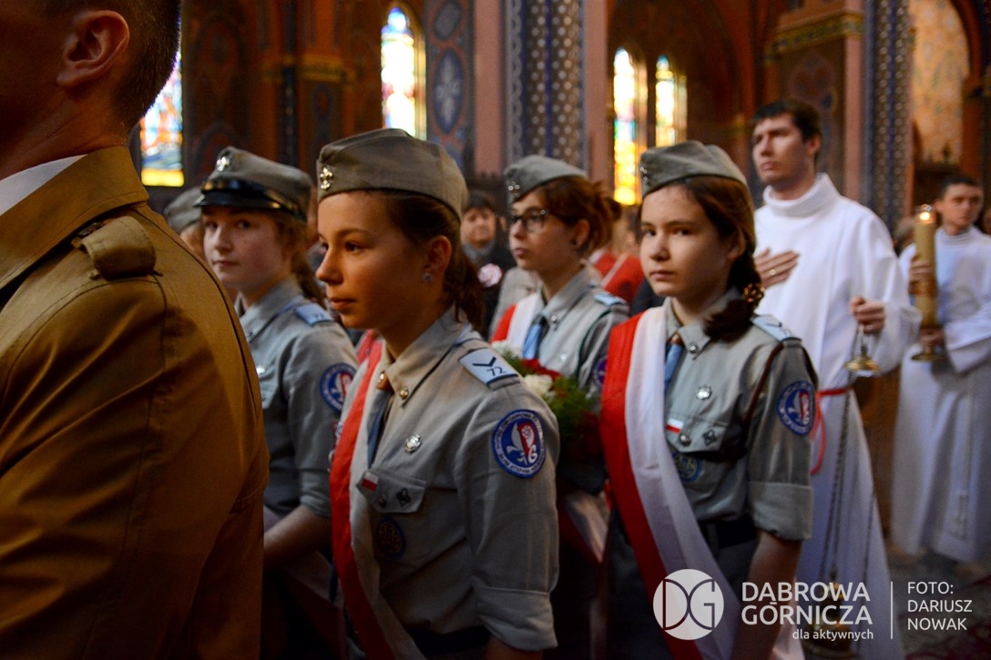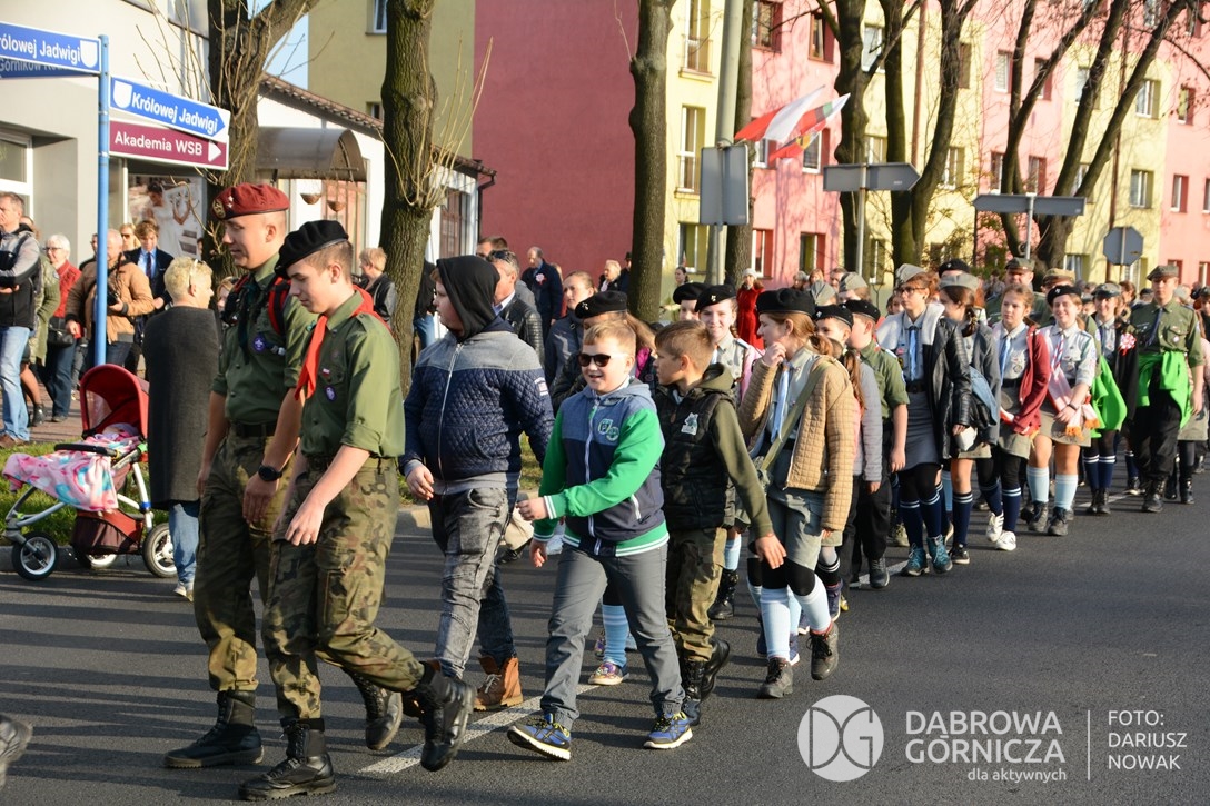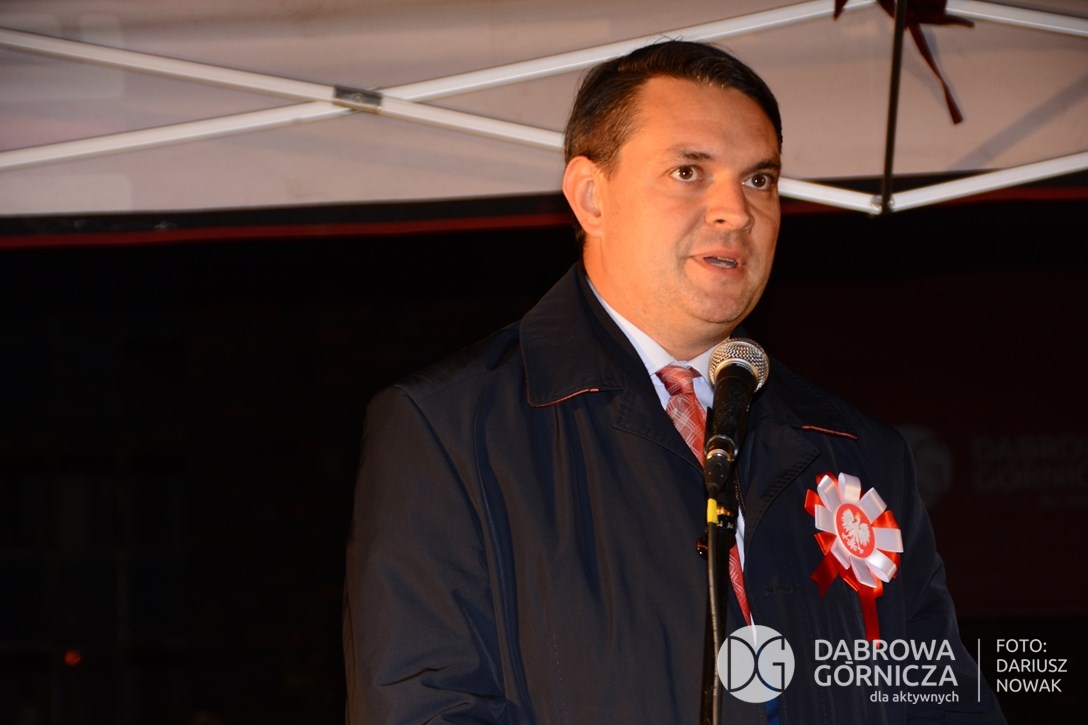 2018.11.11 Dąbrowa dla Niepodległej. Uroczysta msza w Bazylice, kwiaty na Placu Wolności, Ognisko patriotyczne i inne. FOTO: Dariusz Nowak (nddg)