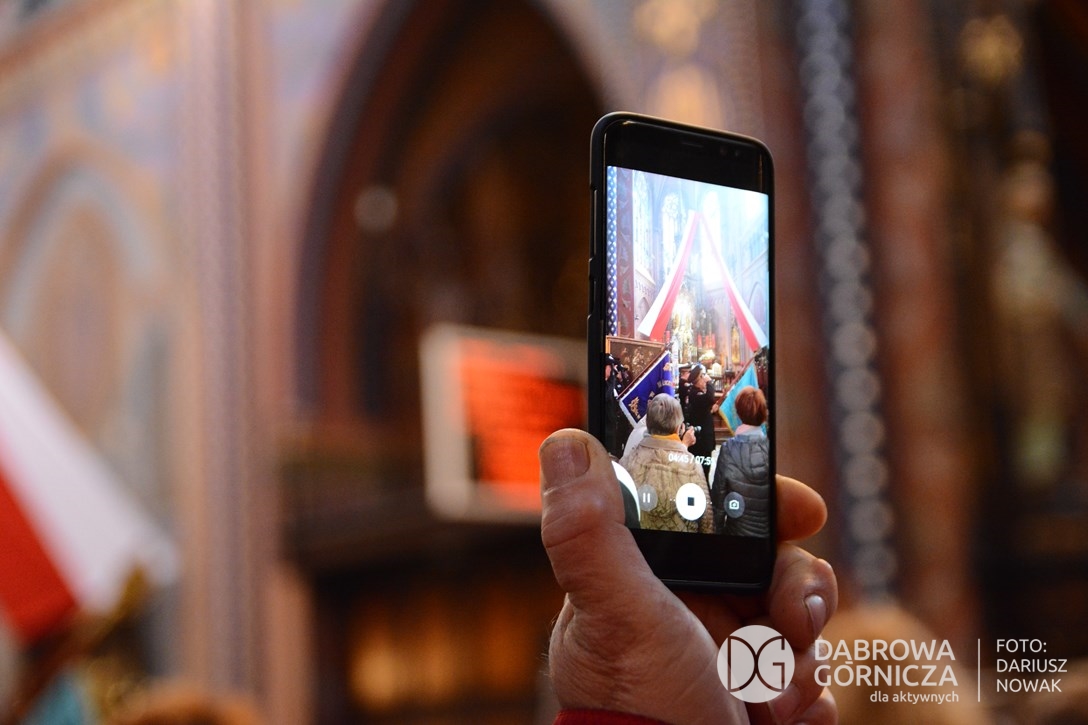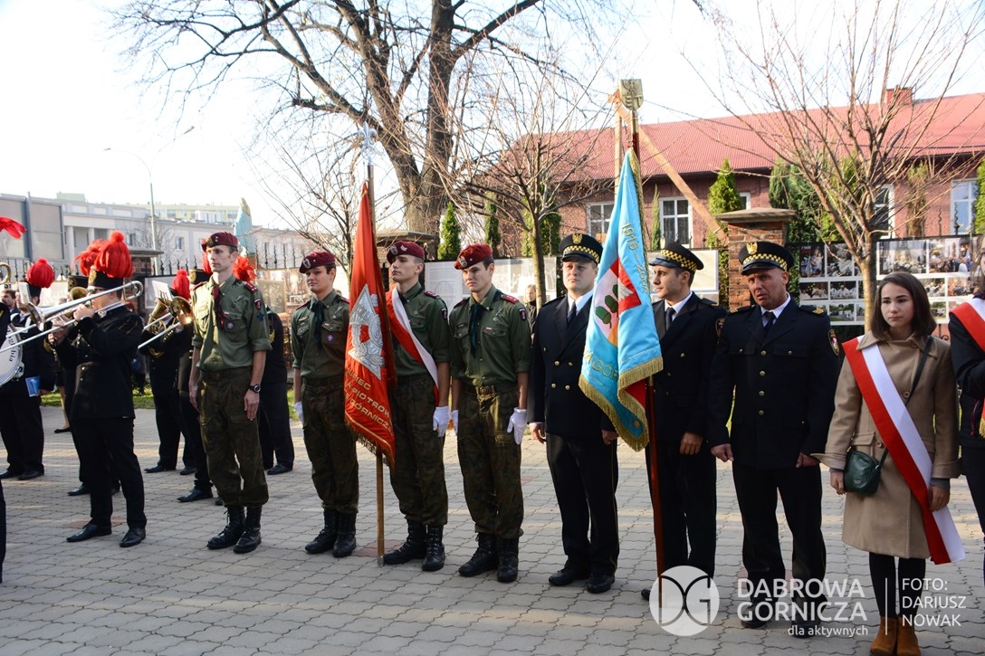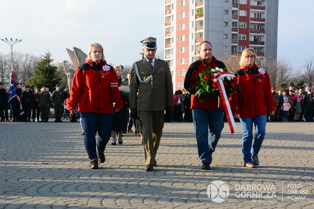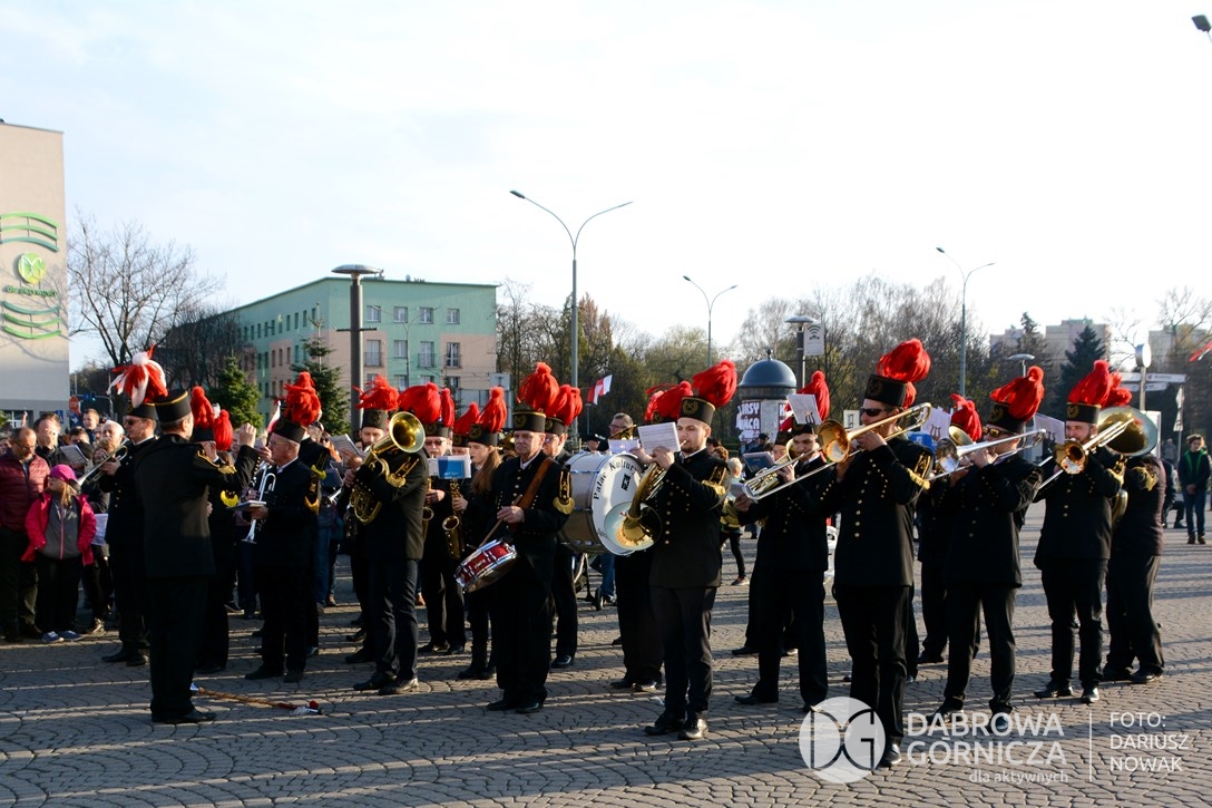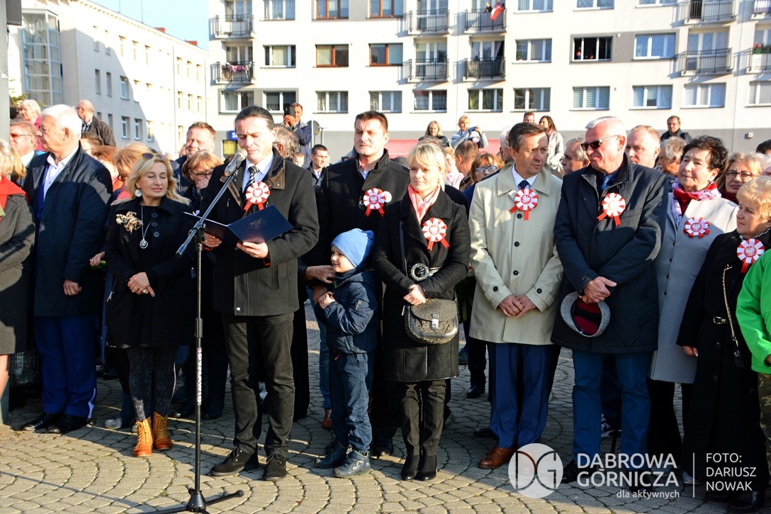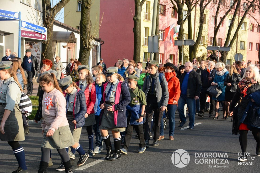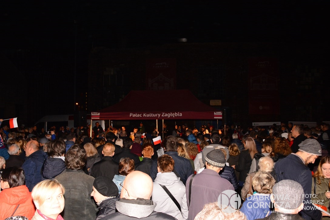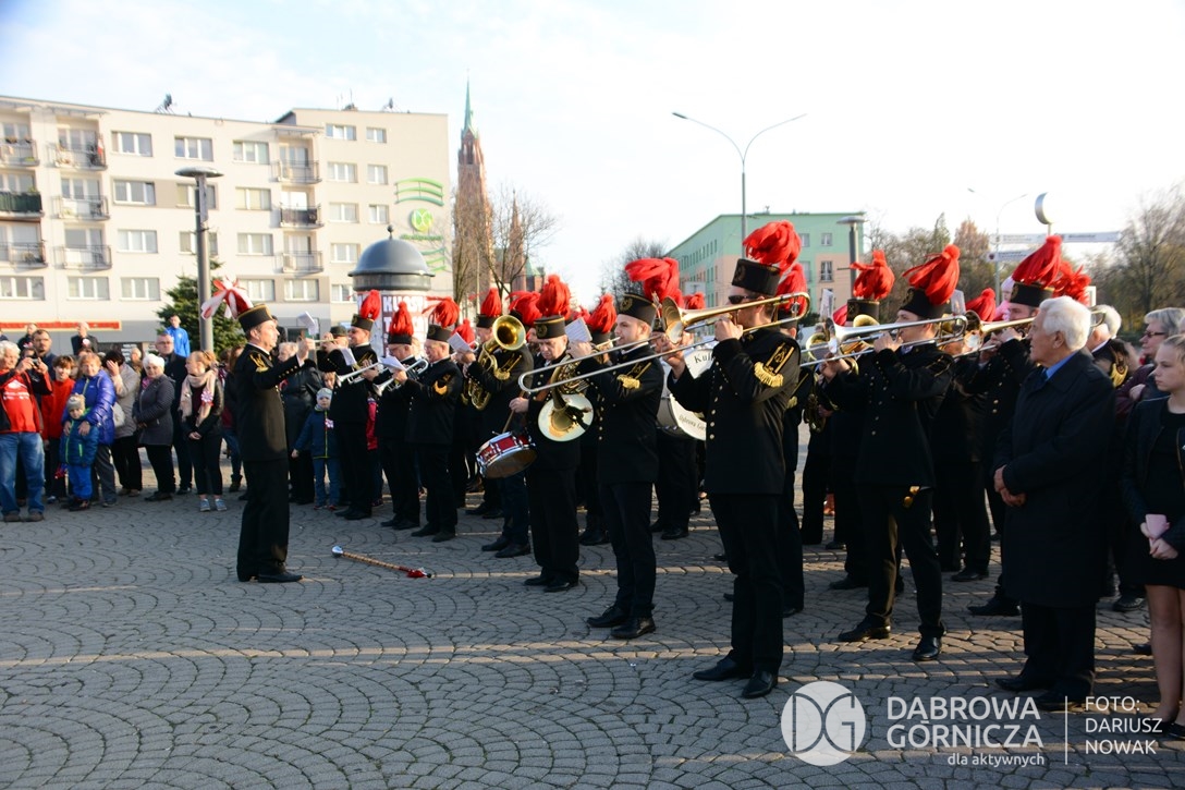 2018.11.11 Dąbrowa dla Niepodległej. Uroczysta msza w Bazylice, kwiaty na Placu Wolności, Ognisko patriotyczne i inne. FOTO: Dariusz Nowak (nddg)