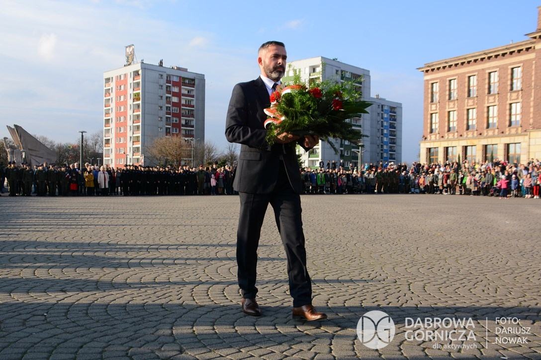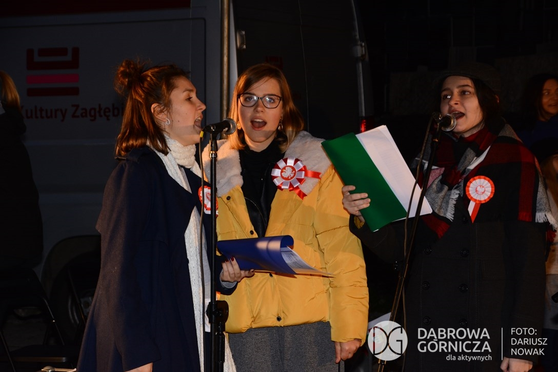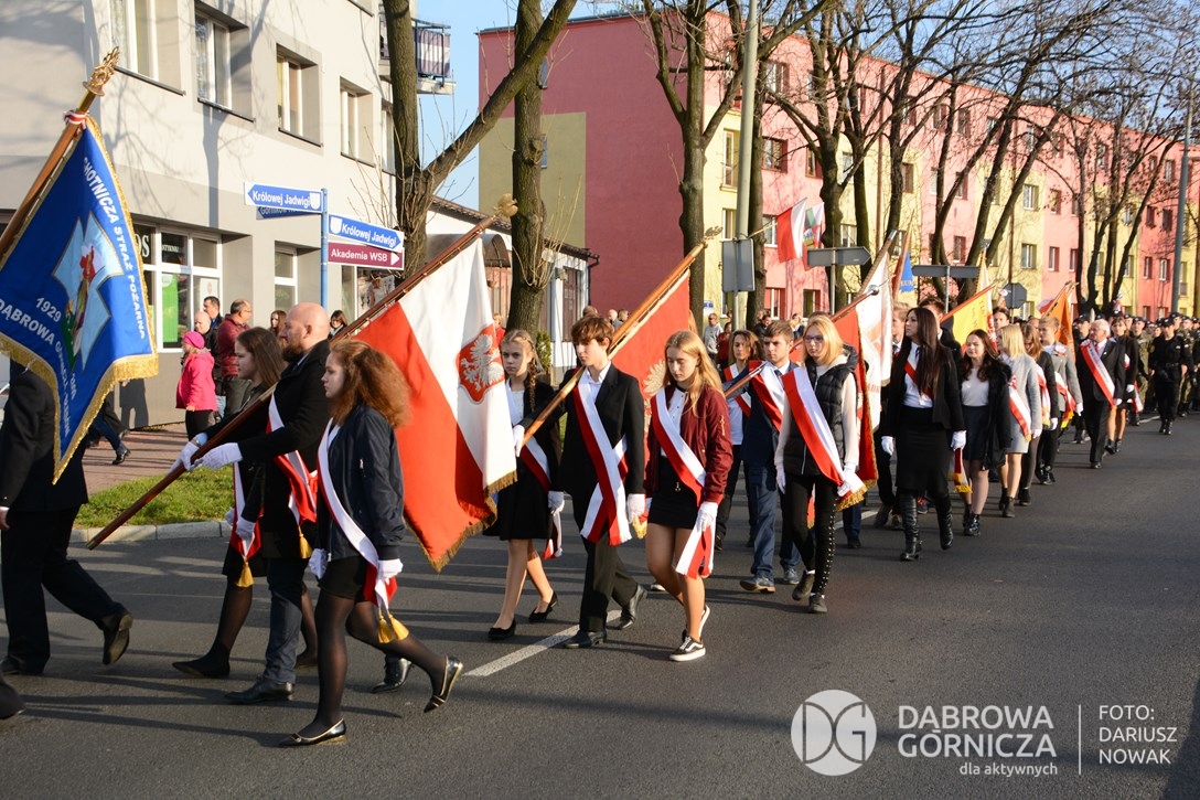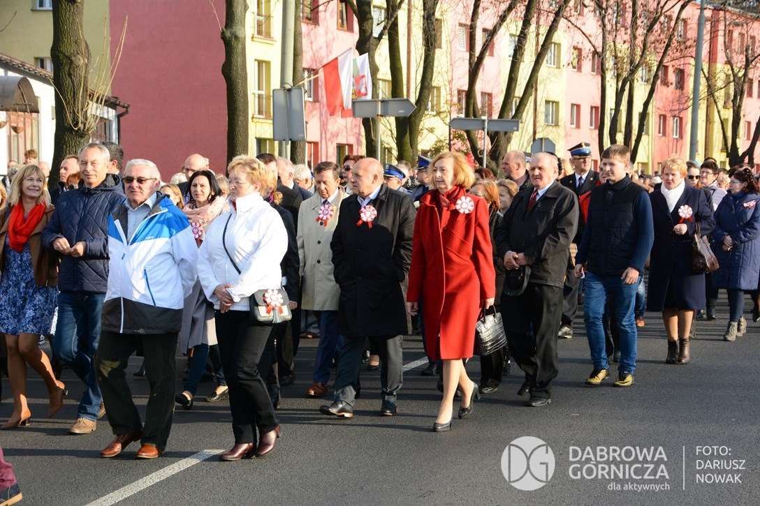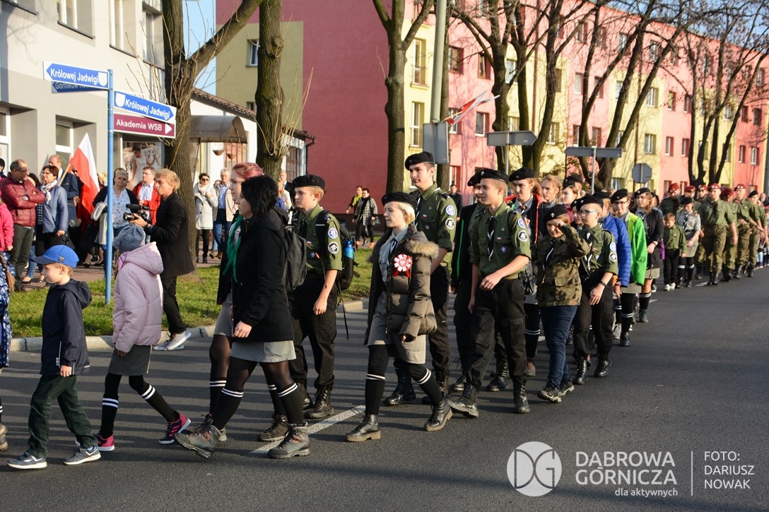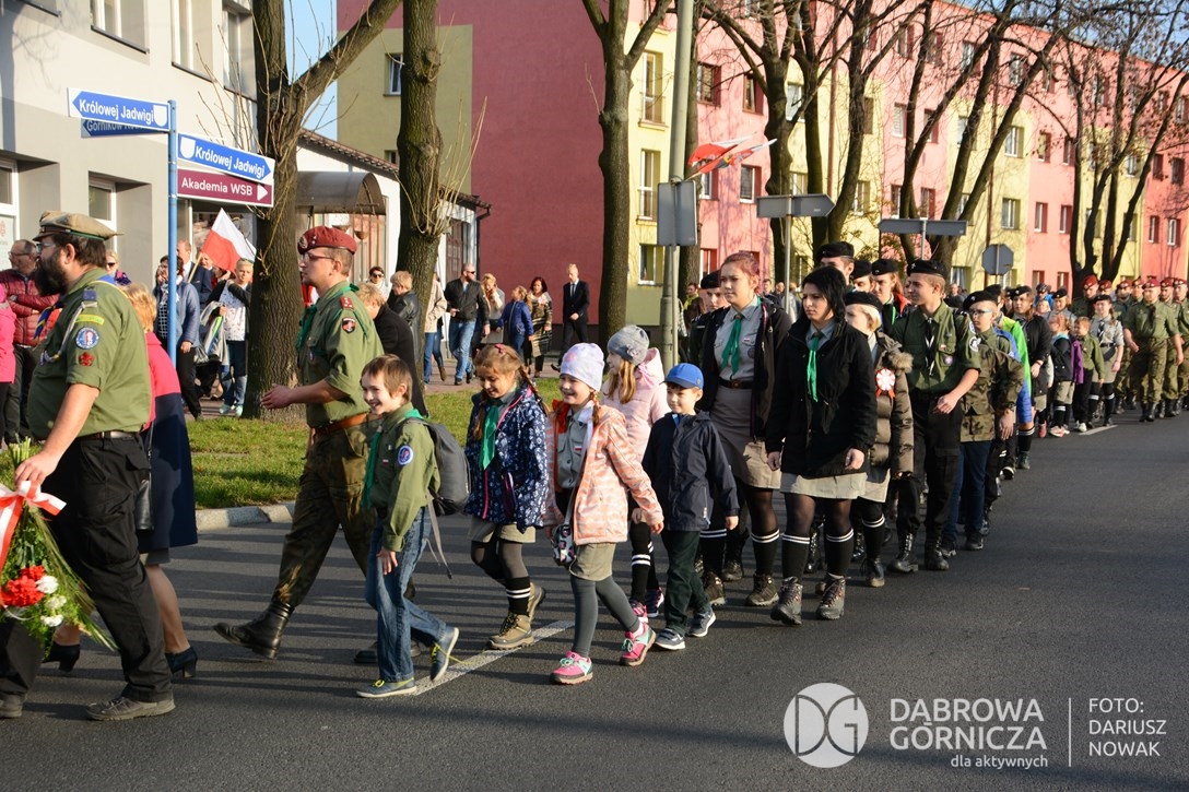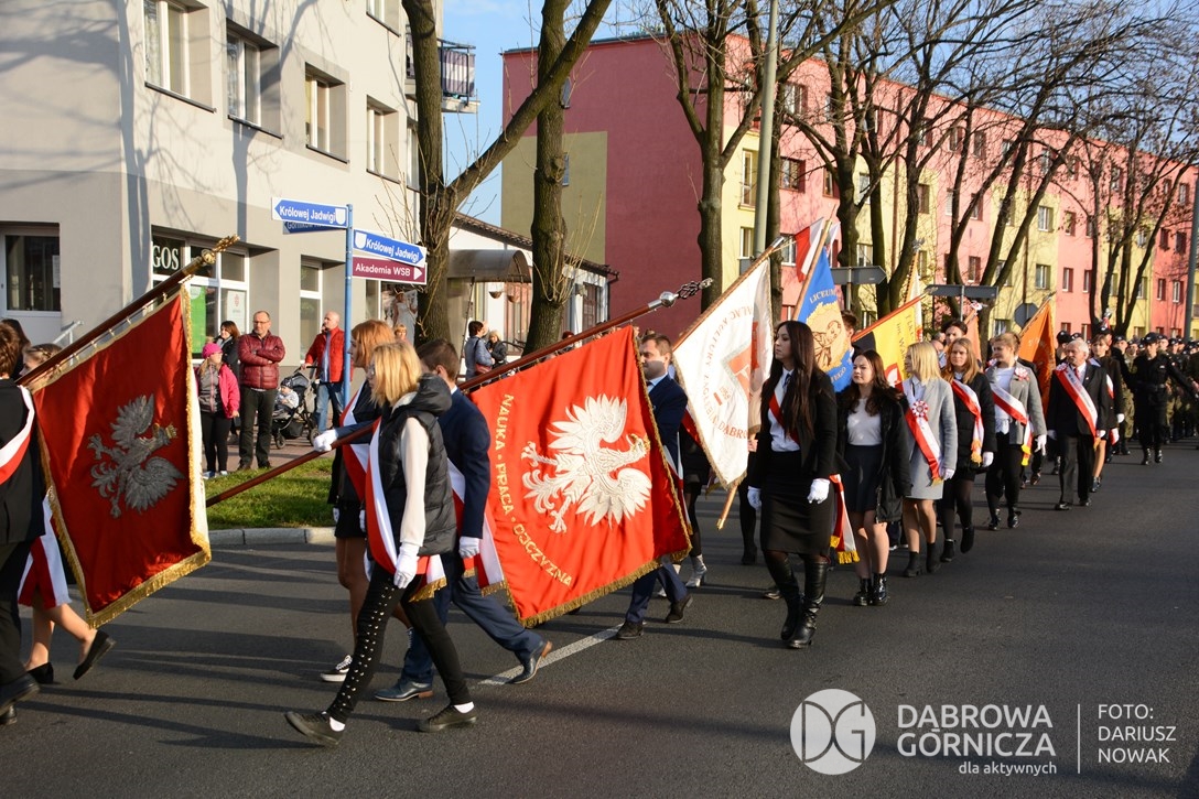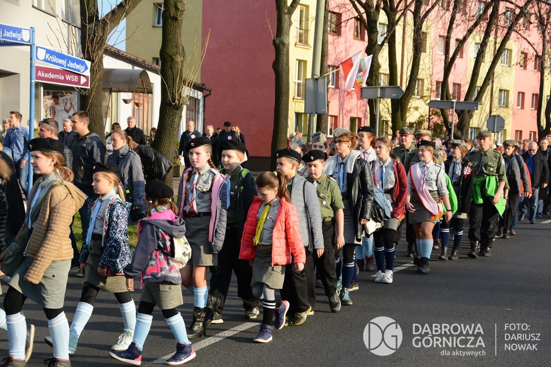 2018.11.11 Dąbrowa dla Niepodległej. Uroczysta msza w Bazylice, kwiaty na Placu Wolności, Ognisko patriotyczne i inne. FOTO: Dariusz Nowak (nddg)