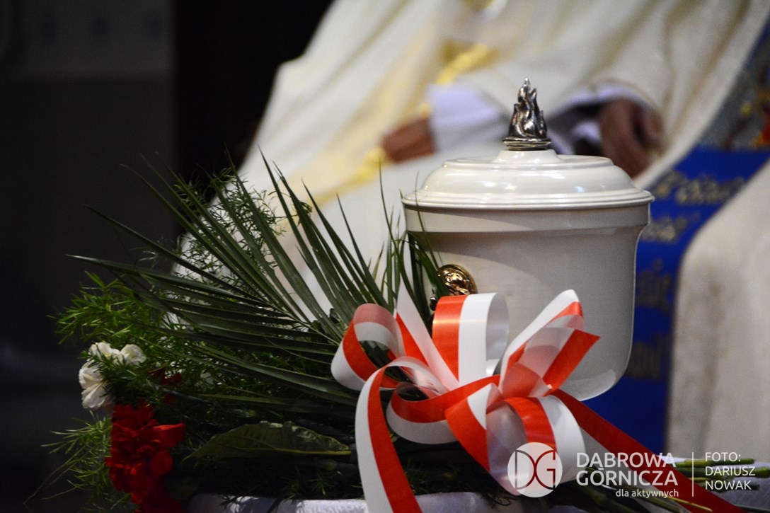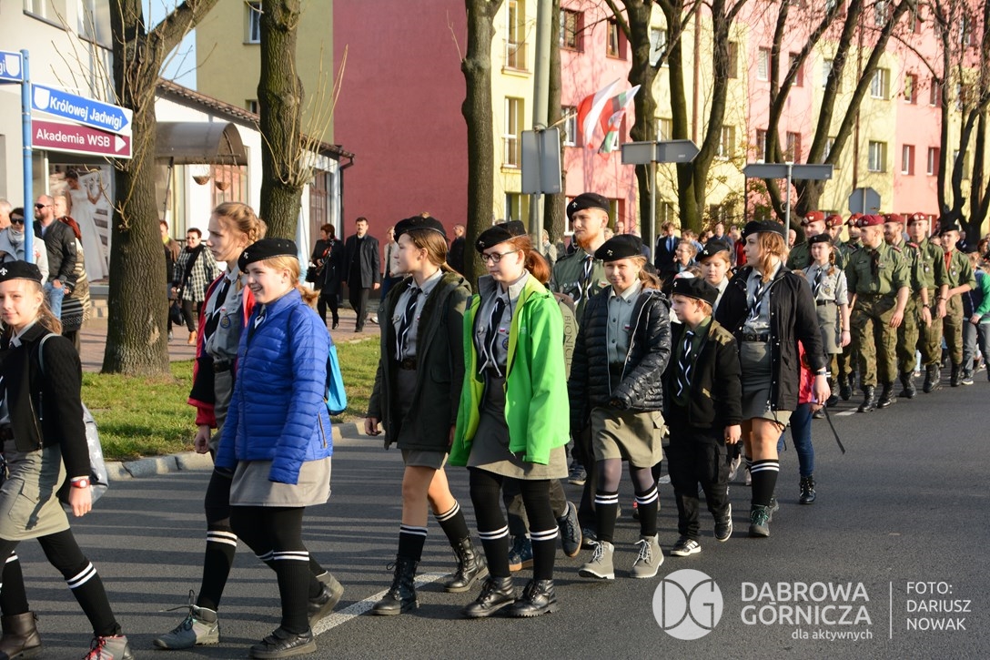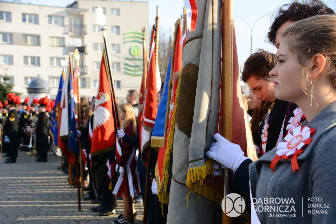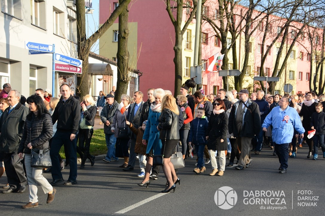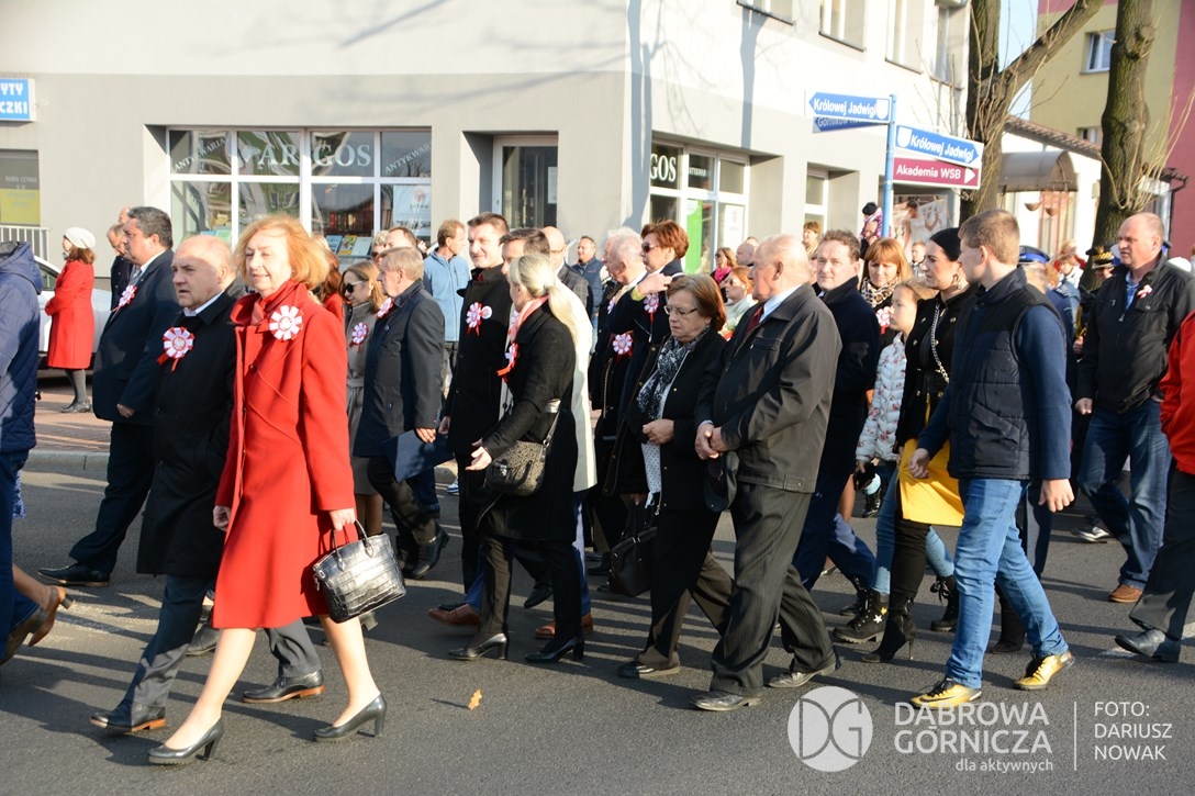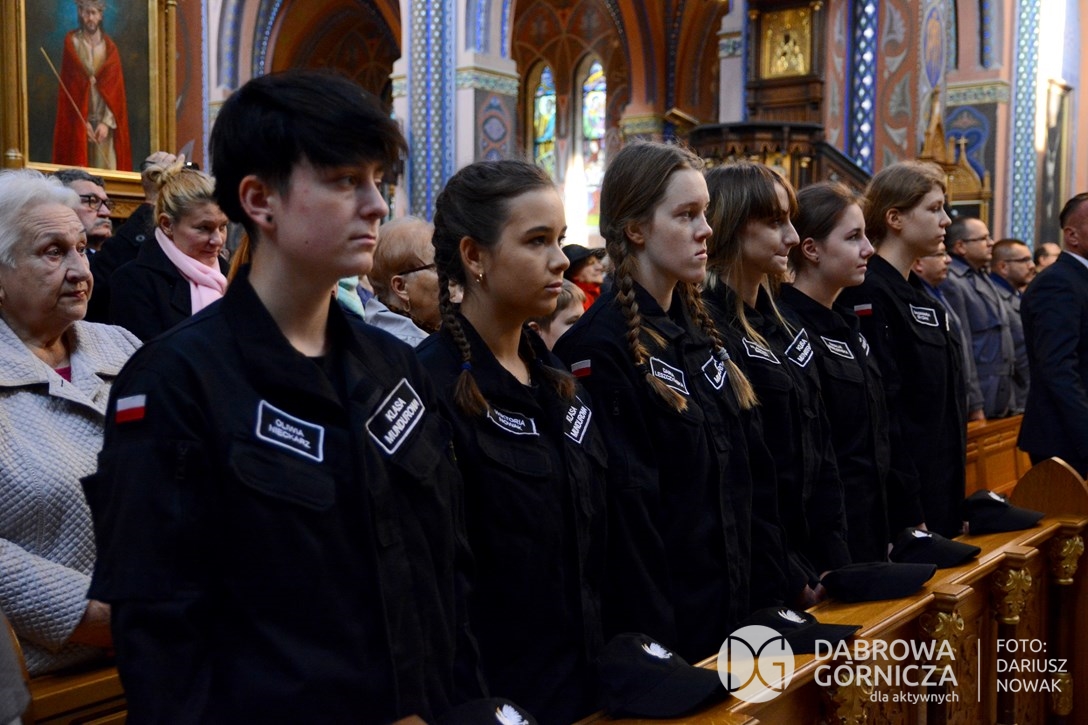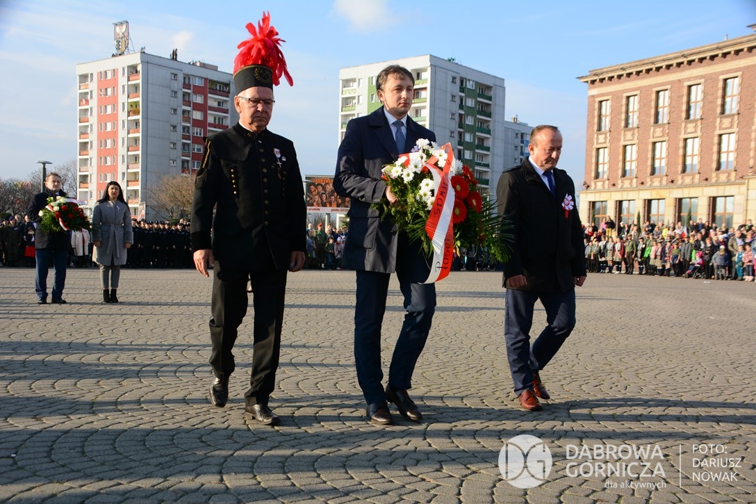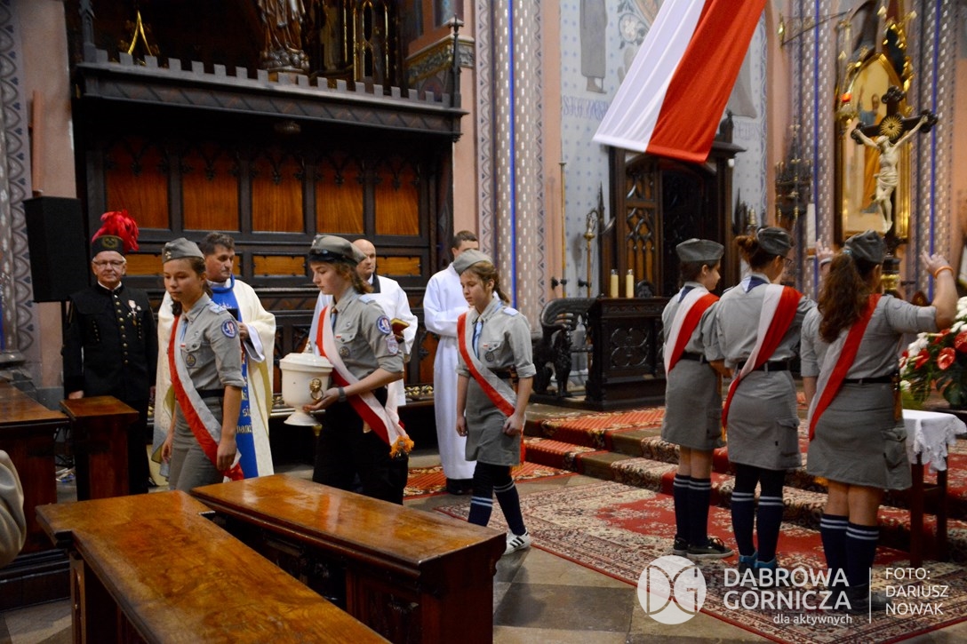 2018.11.11 Dąbrowa dla Niepodległej. Uroczysta msza w Bazylice, kwiaty na Placu Wolności, Ognisko patriotyczne i inne. FOTO: Dariusz Nowak (nddg)