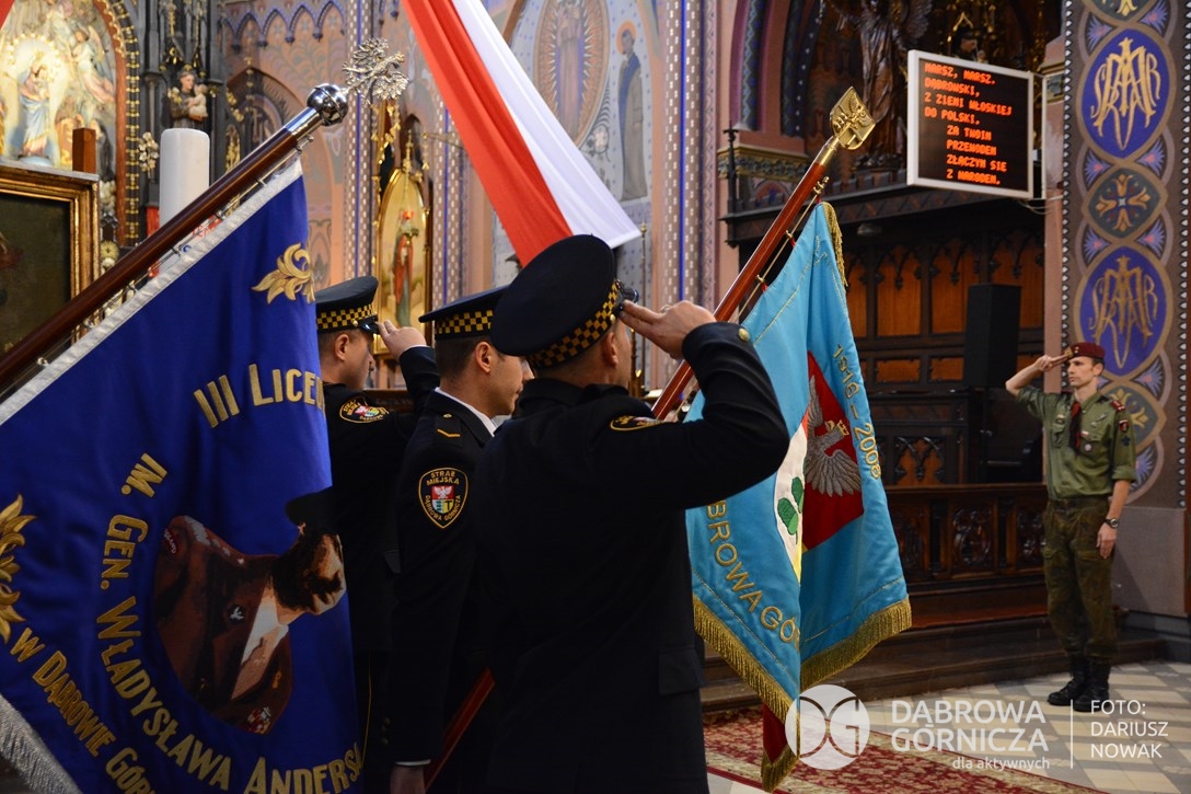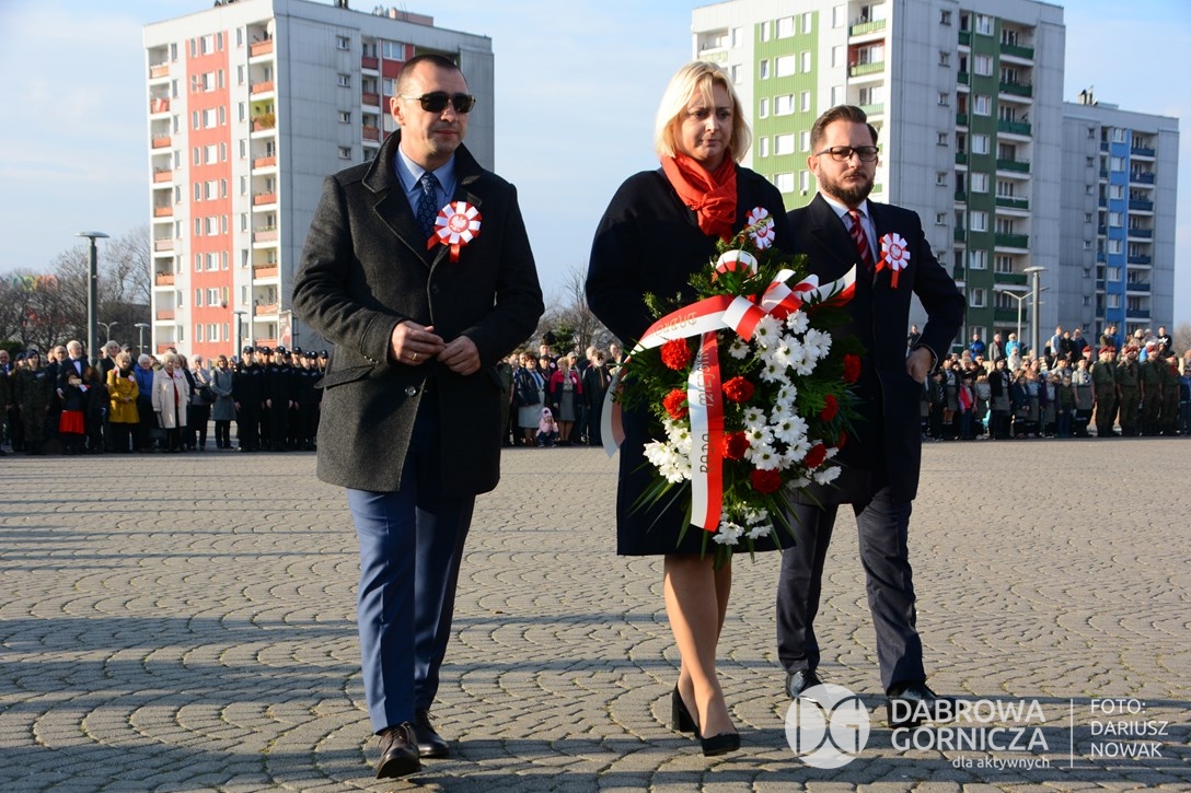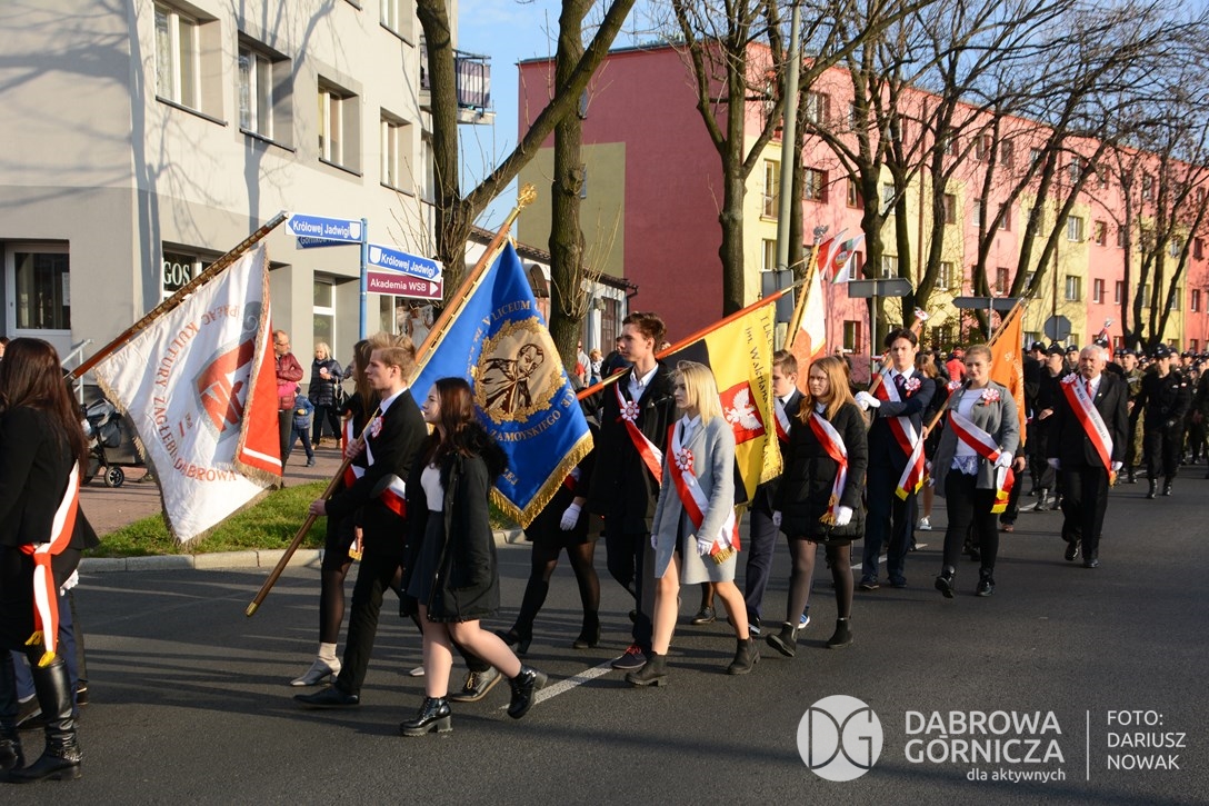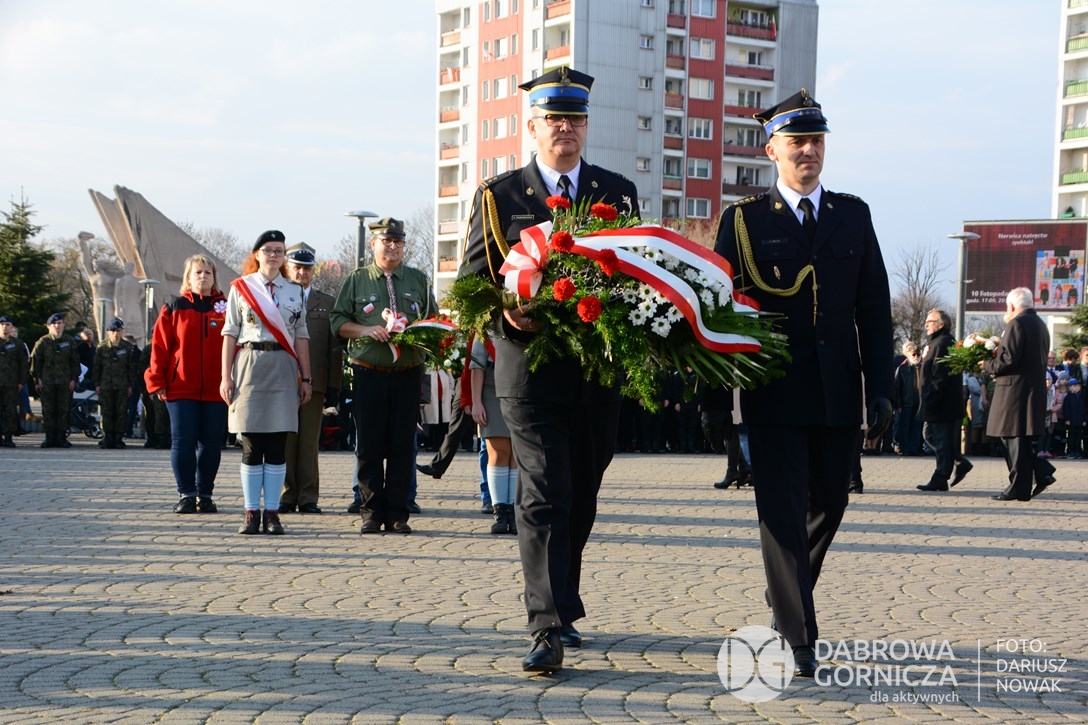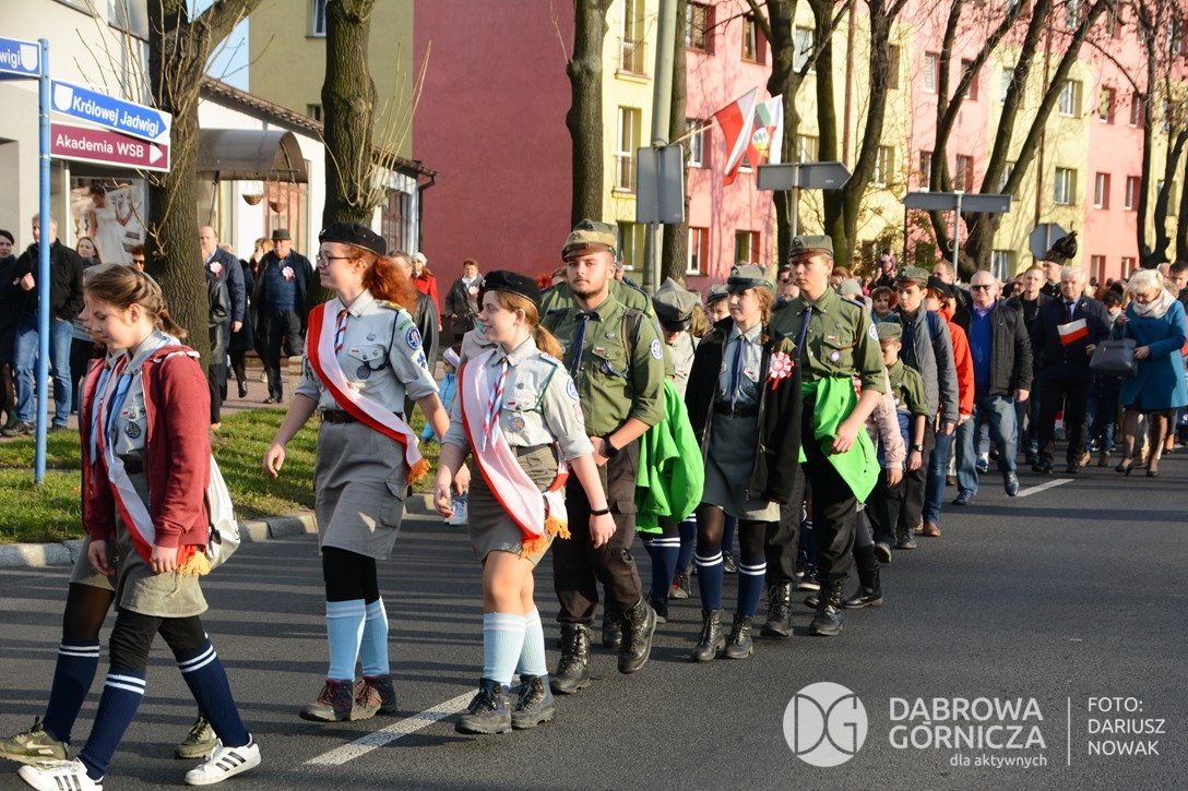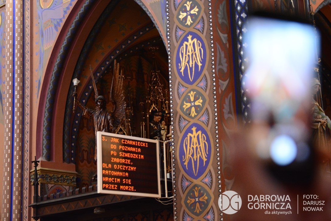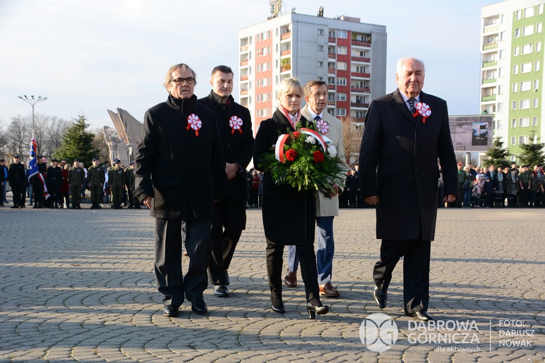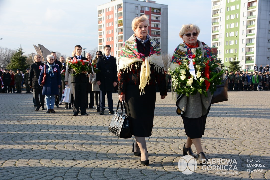 2018.11.11 Dąbrowa dla Niepodległej. Uroczysta msza w Bazylice, kwiaty na Placu Wolności, Ognisko patriotyczne i inne. FOTO: Dariusz Nowak (nddg)