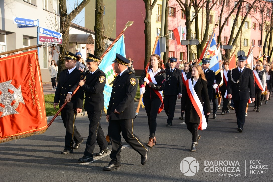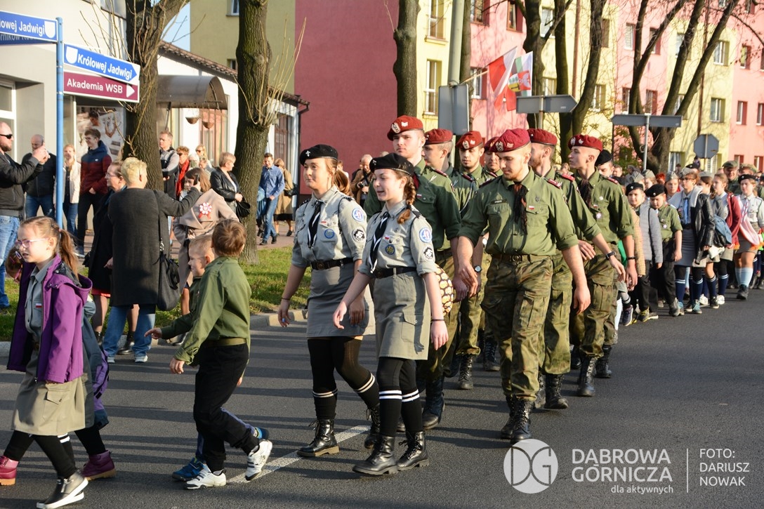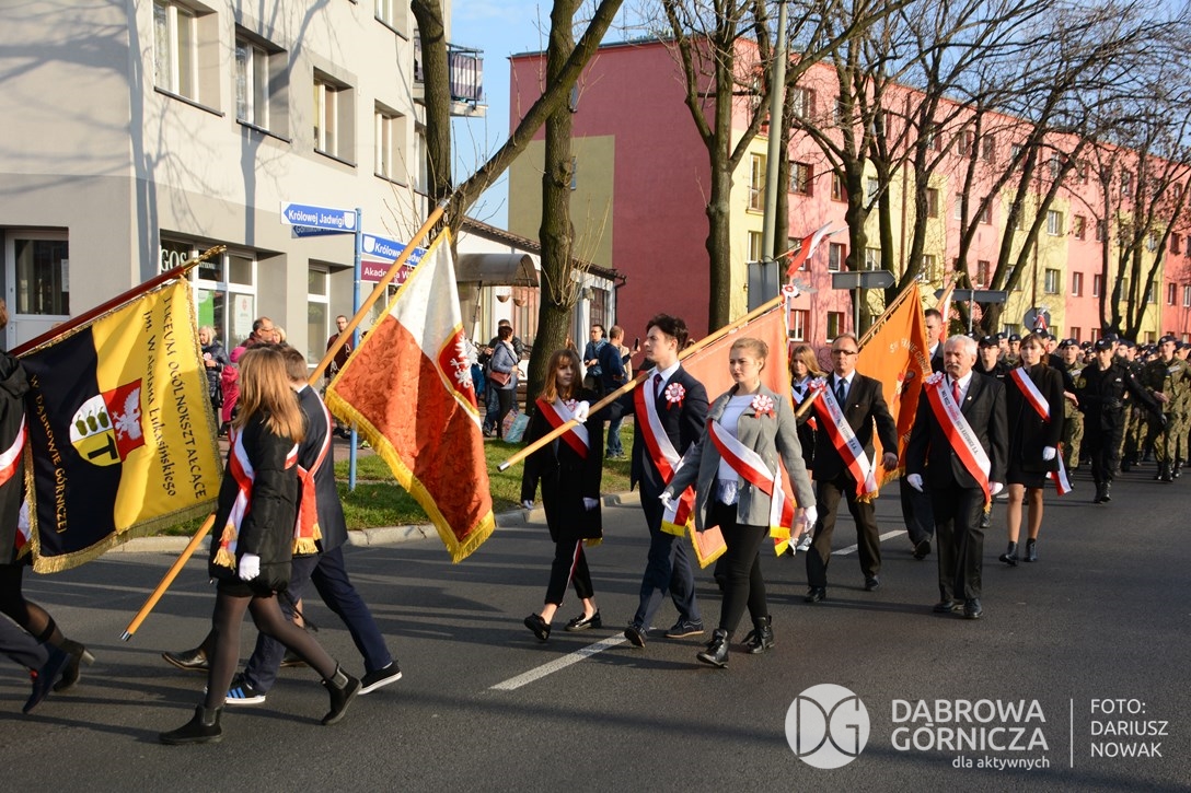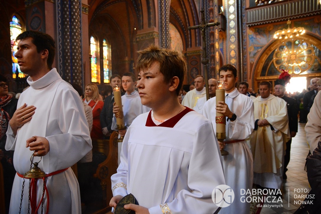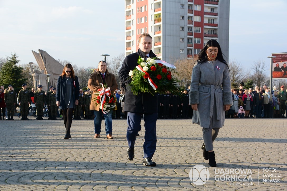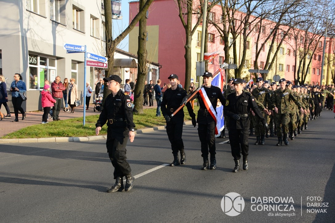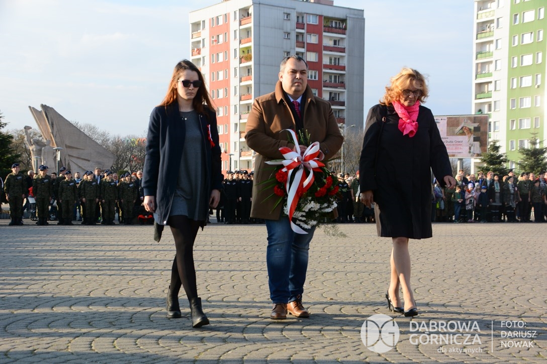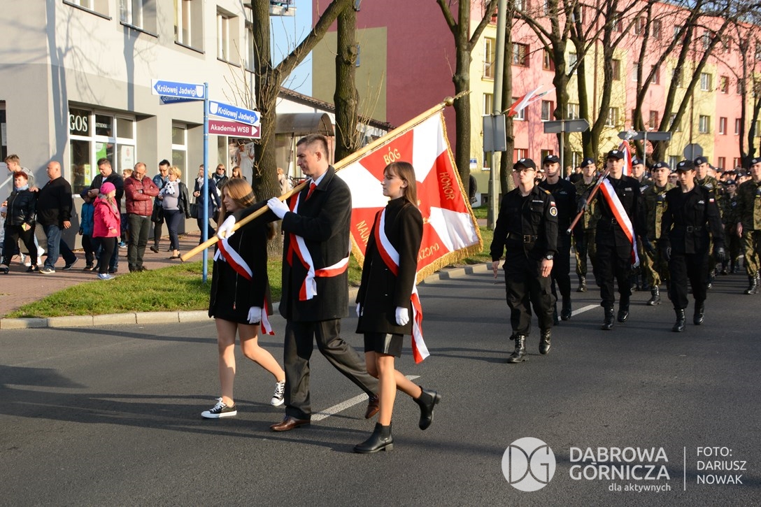 2018.11.11 Dąbrowa dla Niepodległej. Uroczysta msza w Bazylice, kwiaty na Placu Wolności, Ognisko patriotyczne i inne. FOTO: Dariusz Nowak (nddg)