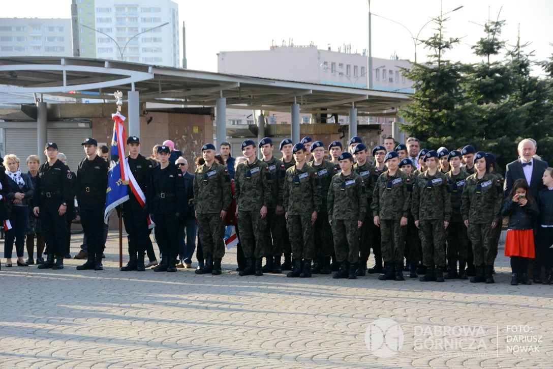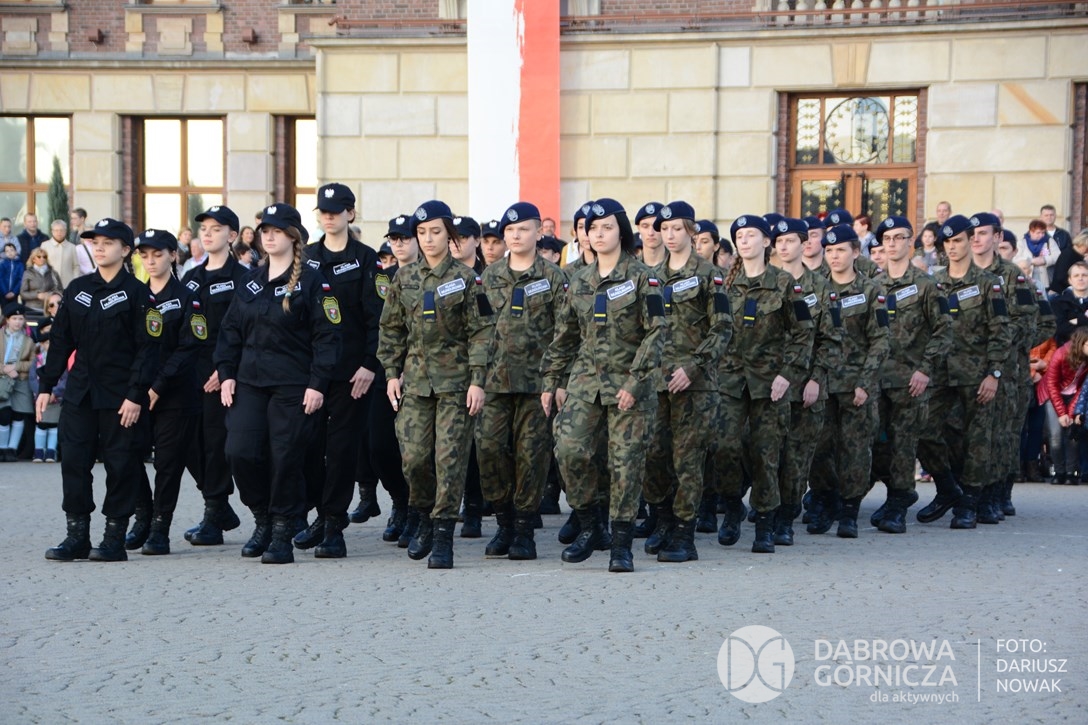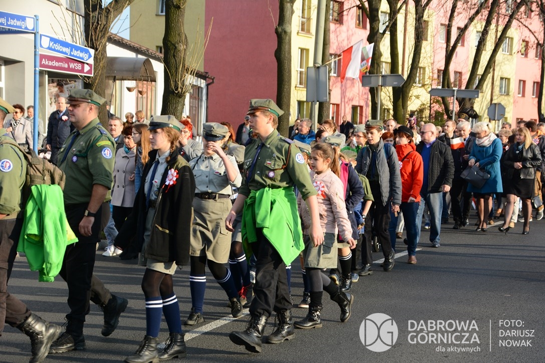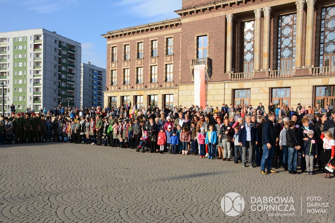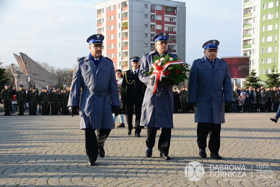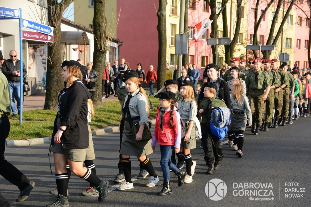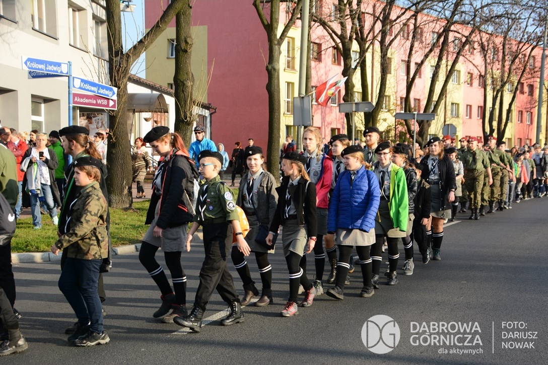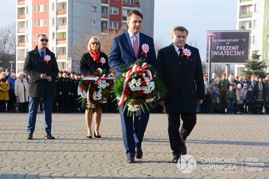 2018.11.11 Dąbrowa dla Niepodległej. Uroczysta msza w Bazylice, kwiaty na Placu Wolności, Ognisko patriotyczne i inne. FOTO: Dariusz Nowak (nddg)