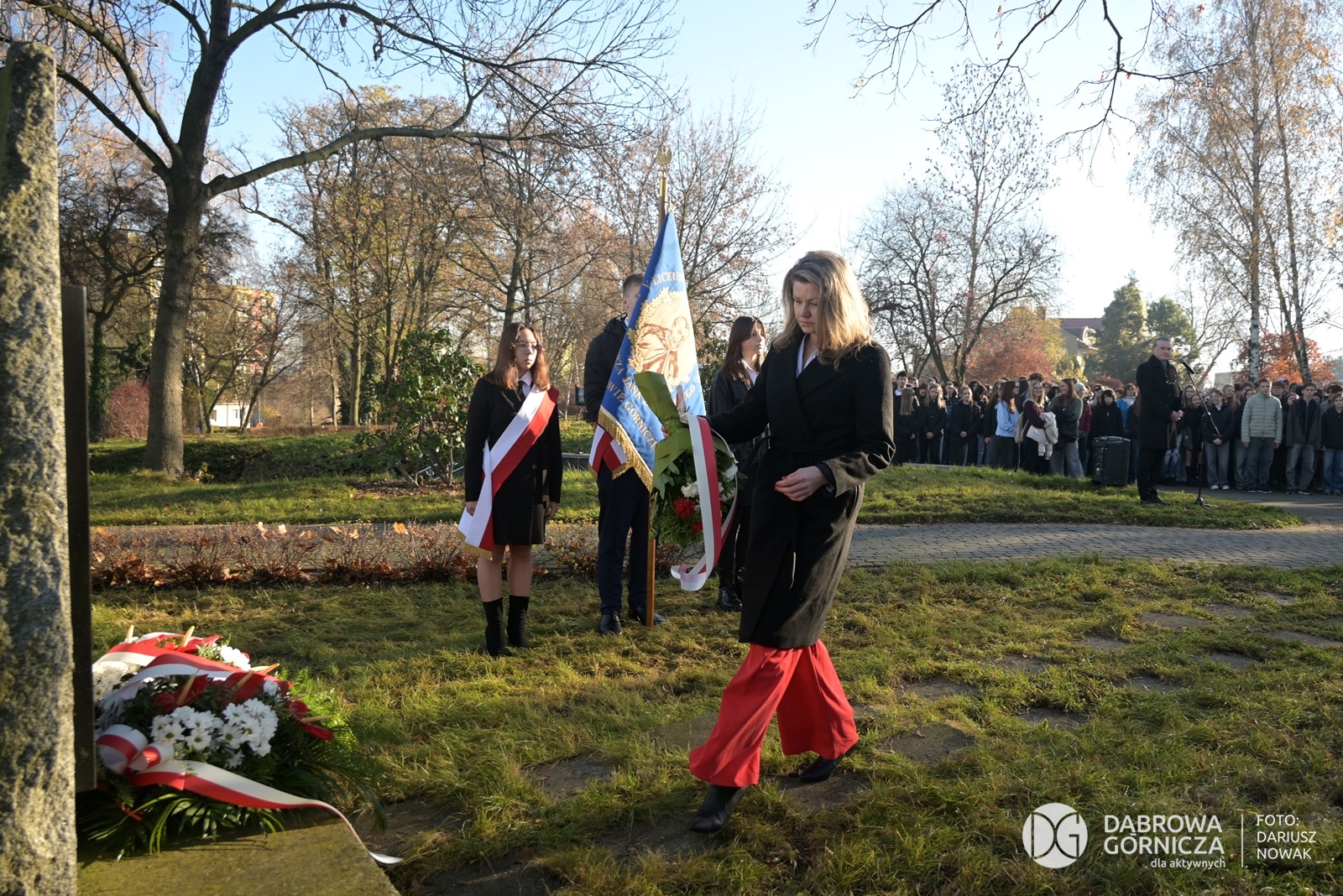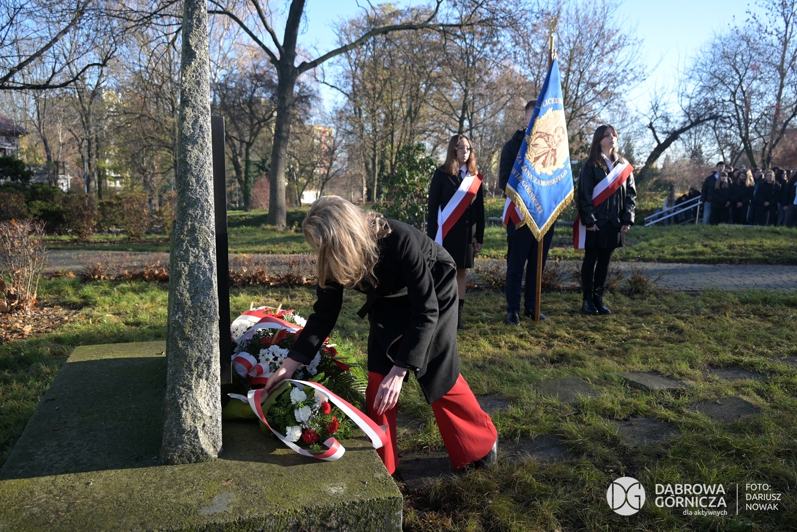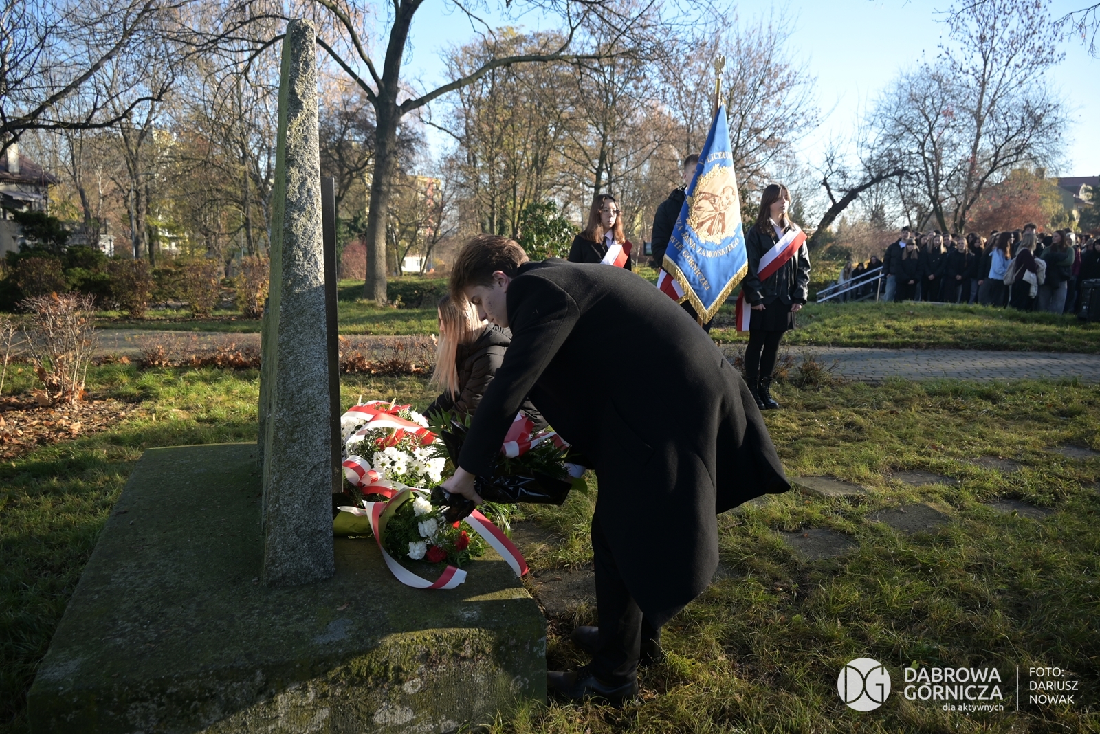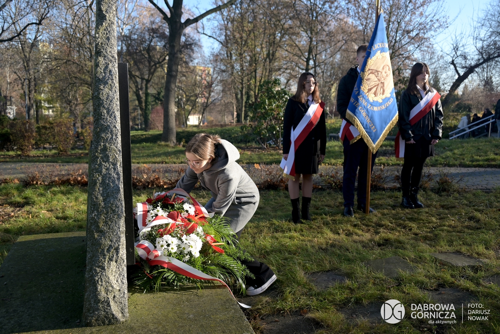 2025.11.07 DG – Centrum. Dni Wolnościowe 2025. 107. Rocznica Odzyskania Niepodległości. Złożenie kwiatów pod pomnikiem Legionów Polskich i Dębem Wolności. FOTO: Dariusz Nowak (nddg)
