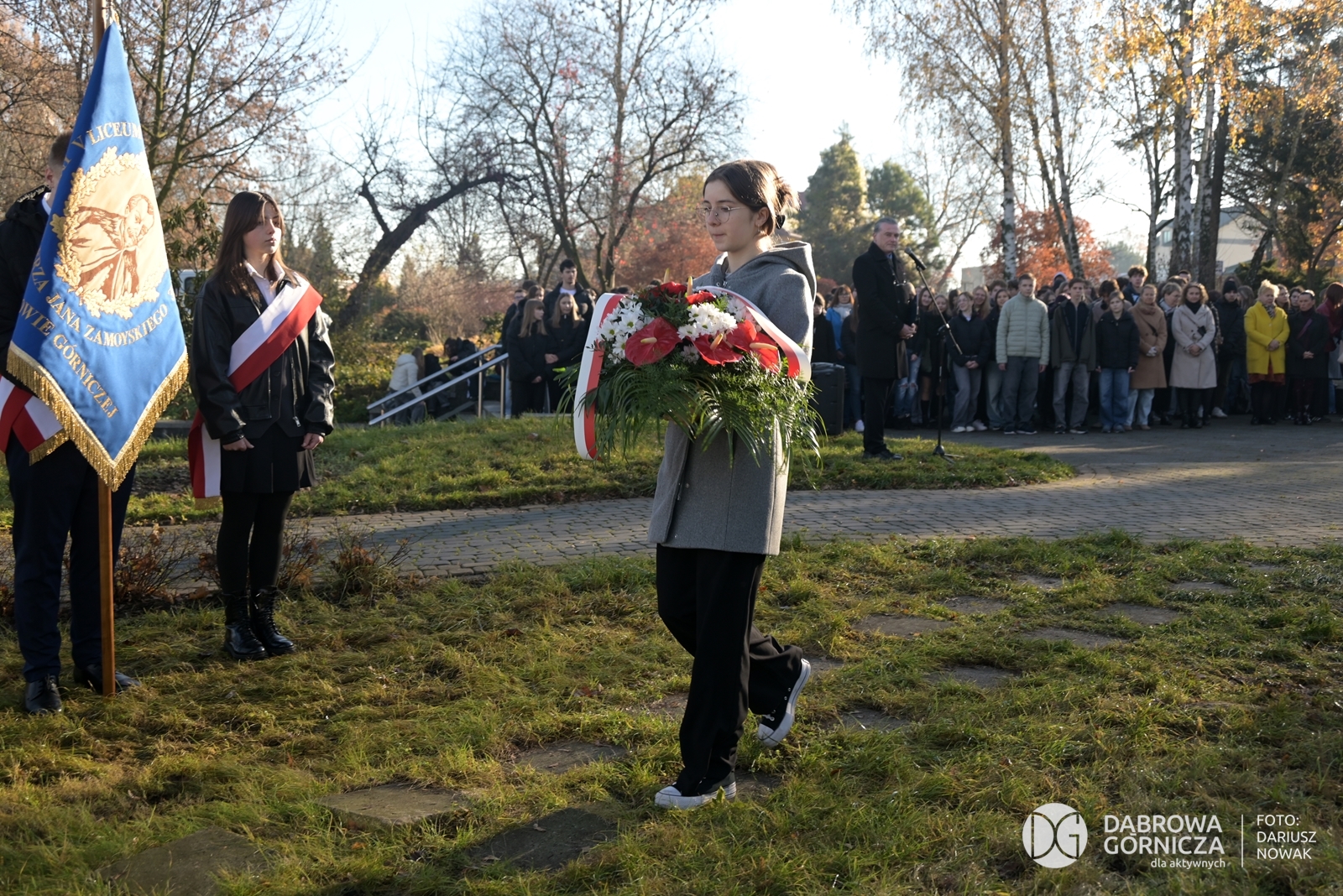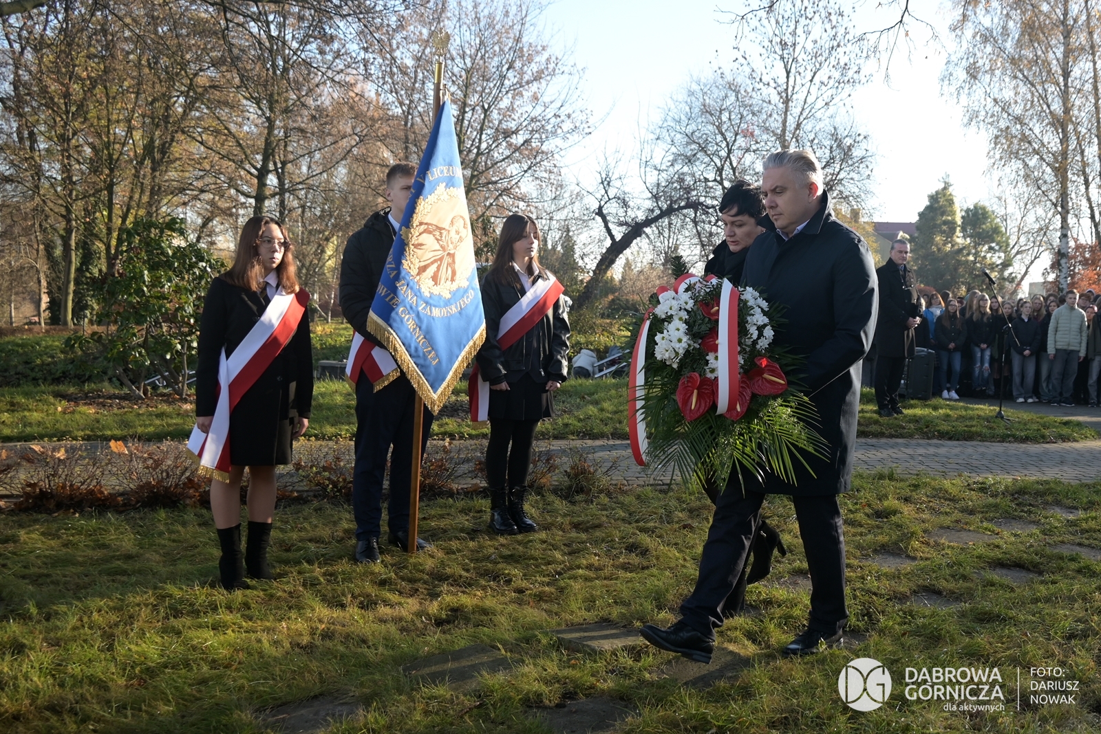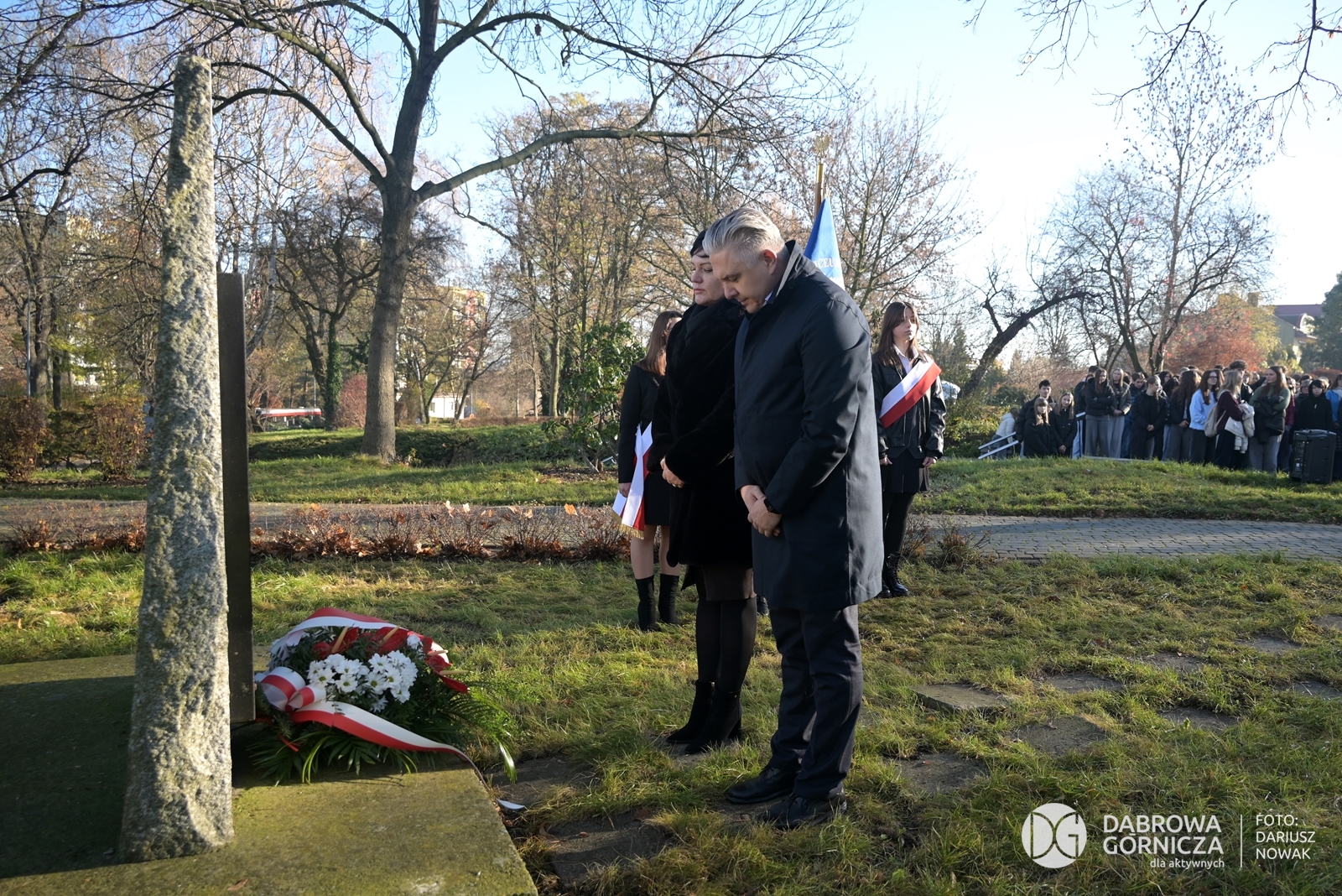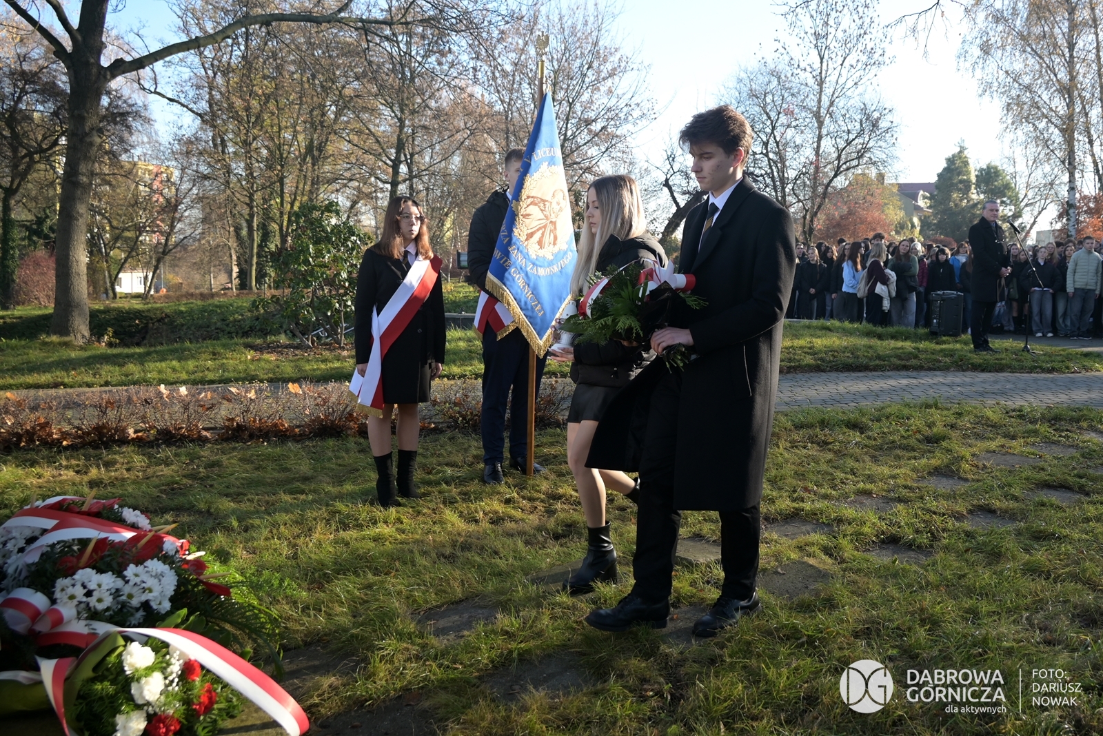 2025.11.07 DG – Centrum. Dni Wolnościowe 2025. 107. Rocznica Odzyskania Niepodległości. Złożenie kwiatów pod pomnikiem Legionów Polskich i Dębem Wolności. FOTO: Dariusz Nowak (nddg)