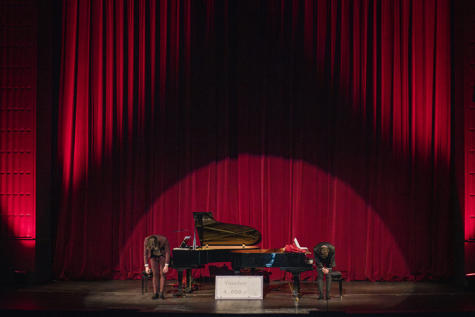 30.01.2025 r.  – Jubileuszowy koncert na dwa fortepiany z muzyką filmową, w aranżacji i wykonaniu duetu: Krzysztof Włodarczyk i Łukasz Szubski, czyli „Dombrowa Piano Duo” – Sala Teatralna PKZ. Fot.: M. Wesołowski