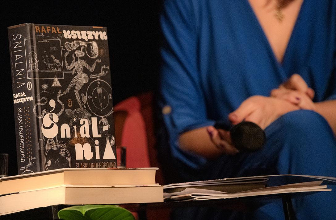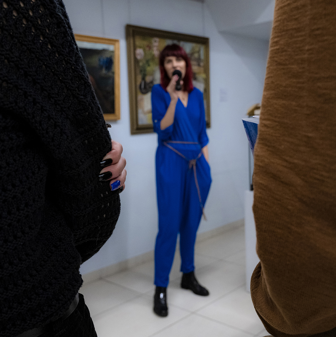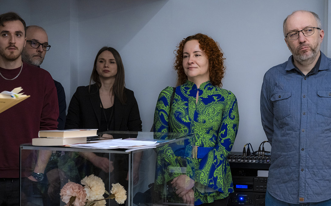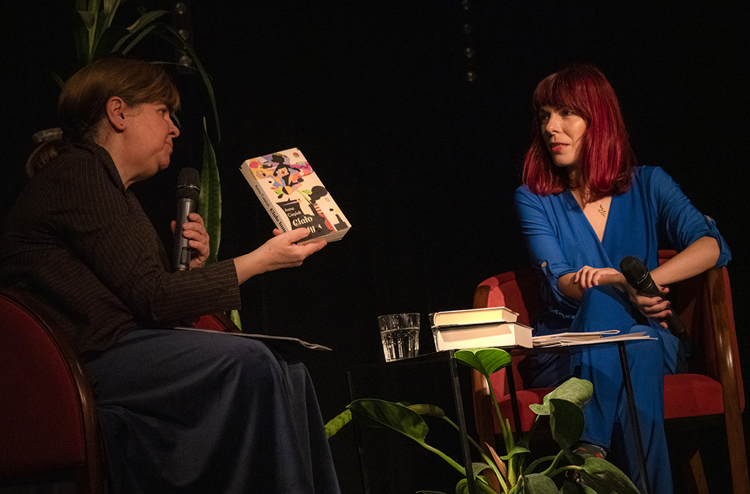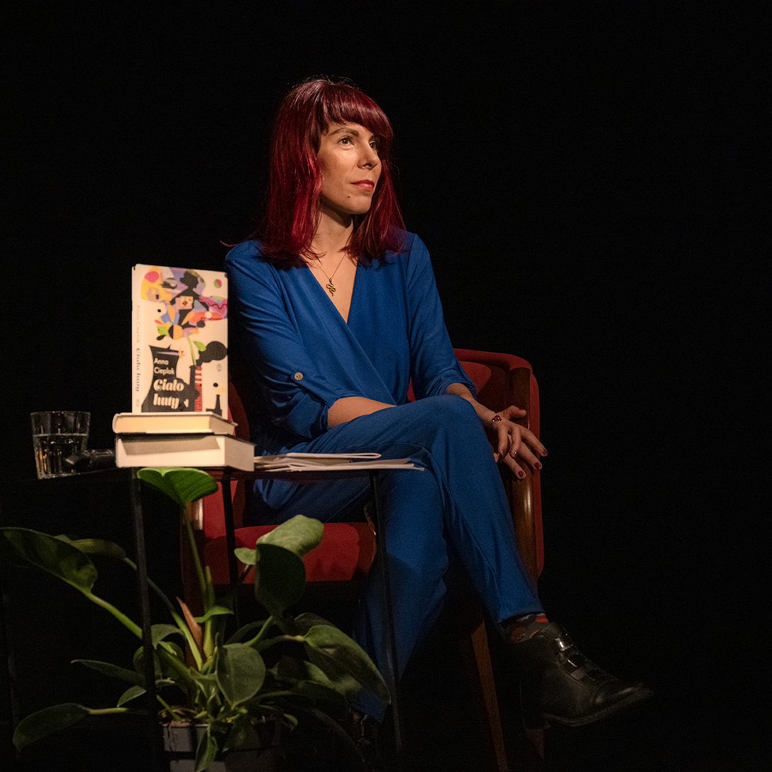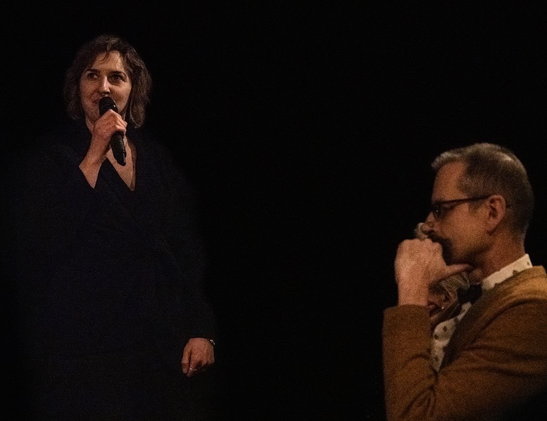 Oprowadzenie po wystawie „Artyści i Alchemicy. Huta w Tworzeniu” z autorką powieści „Ciało Huty” – Anną Cieplak oraz spotkanie autorskie w Piwnicy Teatralnej, moderowane przez Magdalenę Cyankiewicz – kustosz Muzeum Miejskiego „Sztygarka”. Fot.: M. Wesołowski