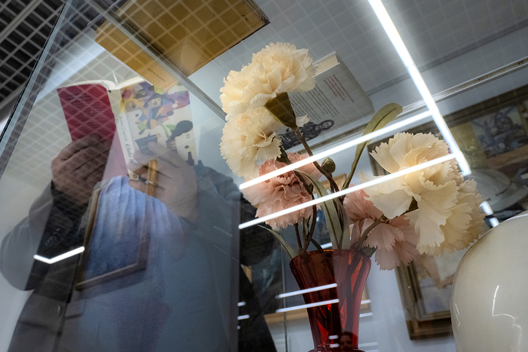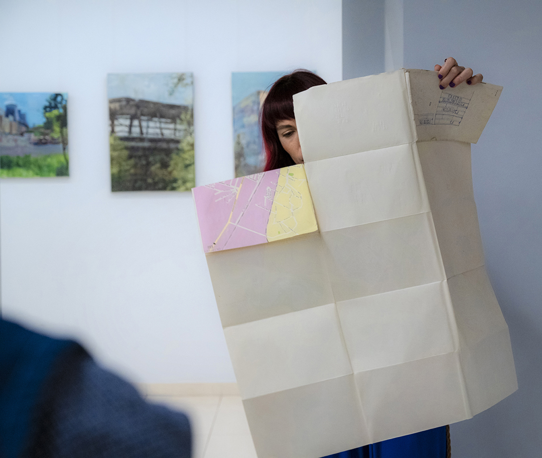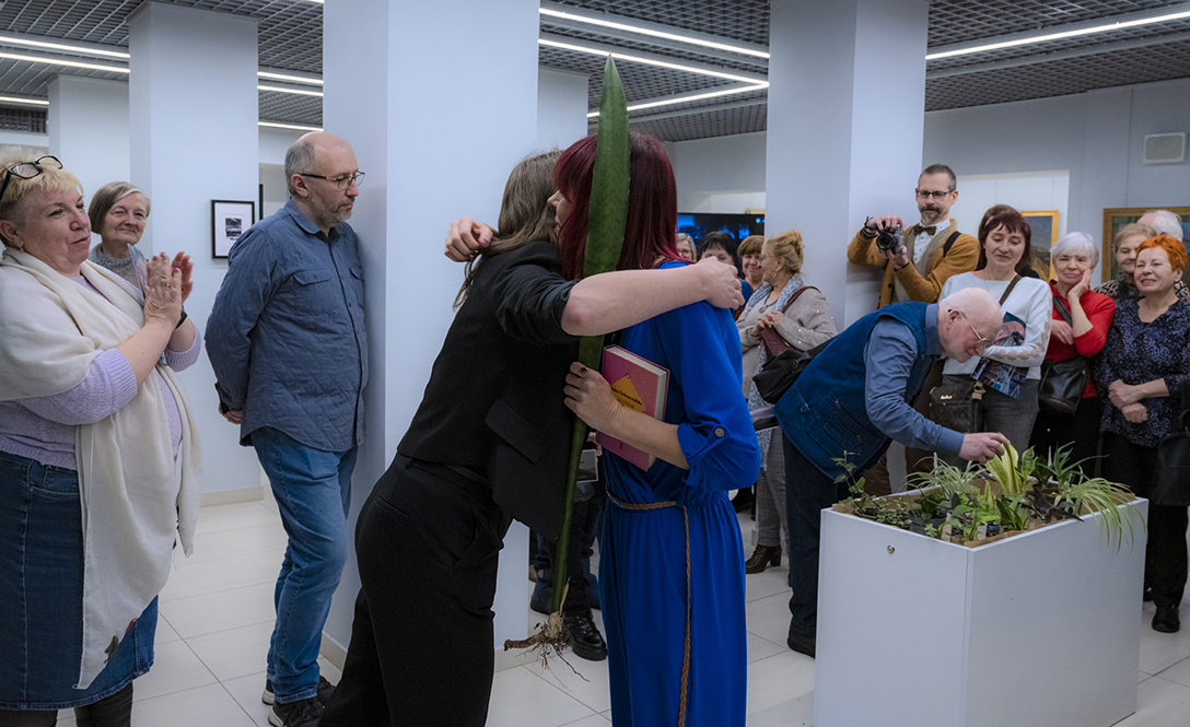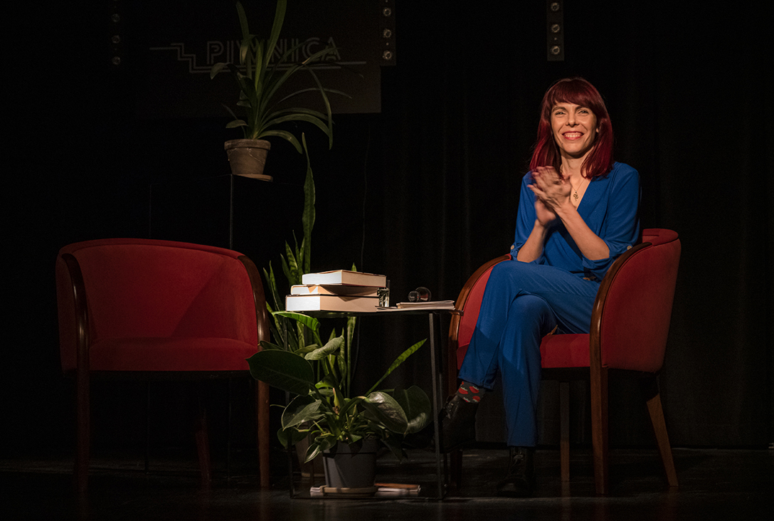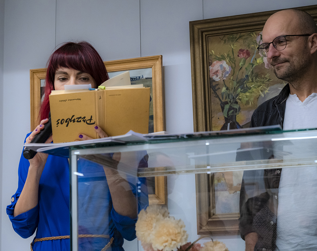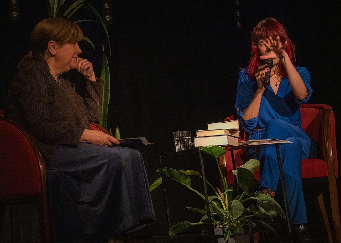 Oprowadzenie po wystawie „Artyści i Alchemicy. Huta w Tworzeniu” z autorką powieści „Ciało Huty” – Anną Cieplak oraz spotkanie autorskie w Piwnicy Teatralnej, moderowane przez Magdalenę Cyankiewicz – kustosz Muzeum Miejskiego „Sztygarka”. Fot.: M. Wesołowski