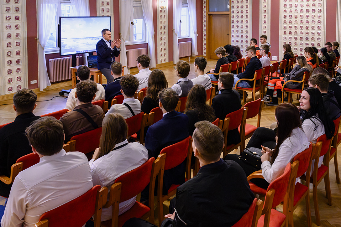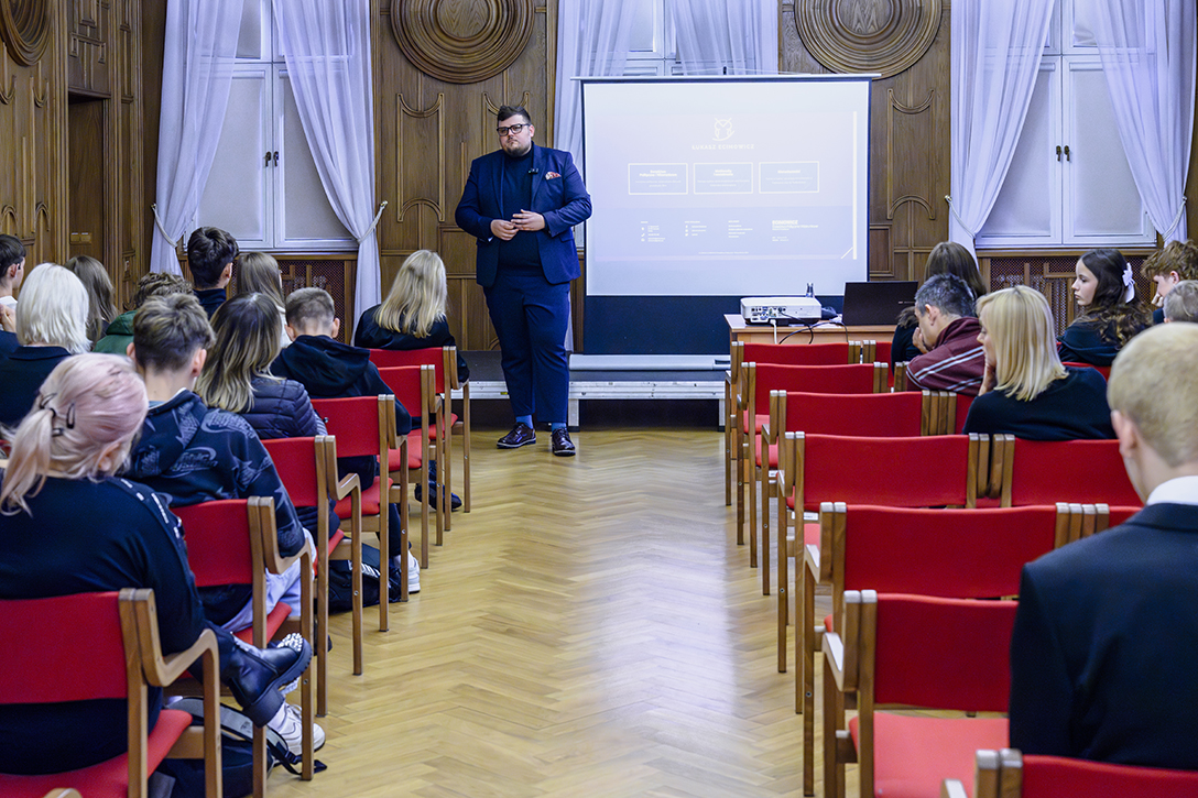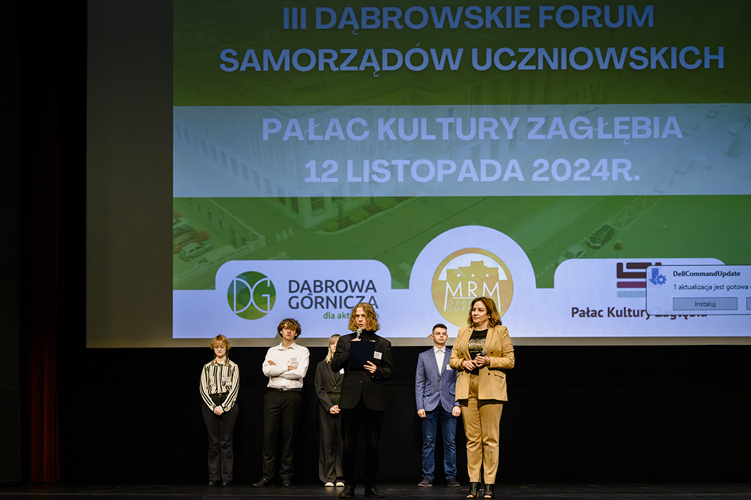 12.11.2024 r. Otwarcie III Dąbrowskiego Forum Samorządów Uczniowskich w Pałacu Kultury Zagłębia i powitanie uczestników przez Prezydenta Miasta Marcina Bazylaka oraz warsztaty prowadzone przez zaproszonych prelegentów. Fot.: M. Wesołowski