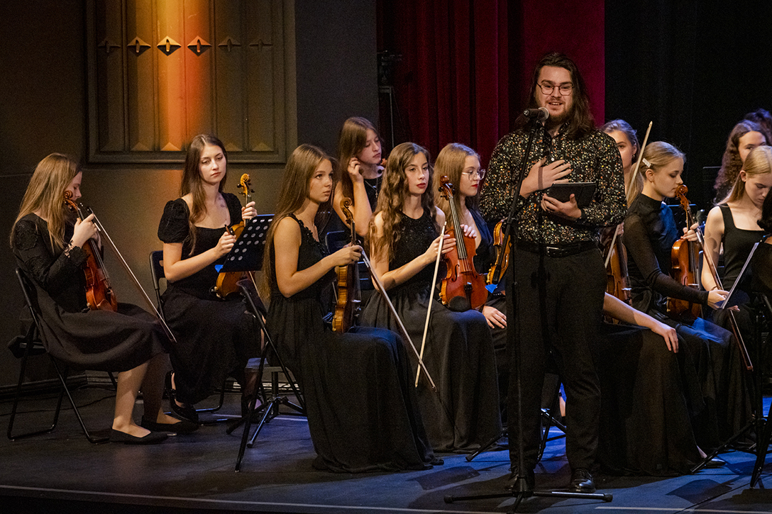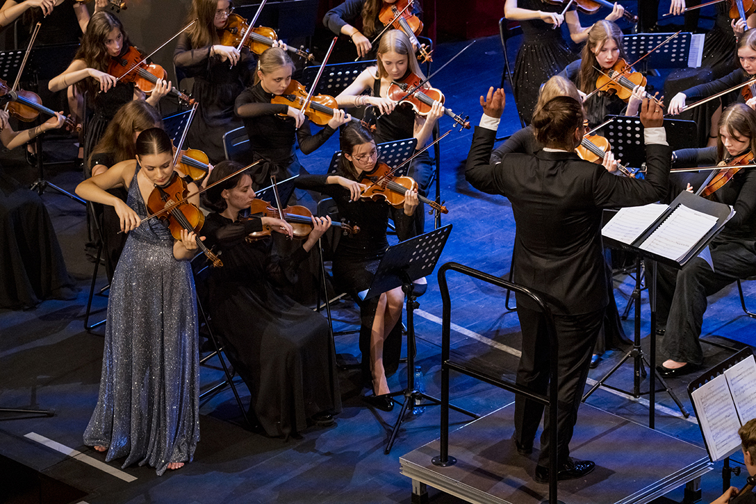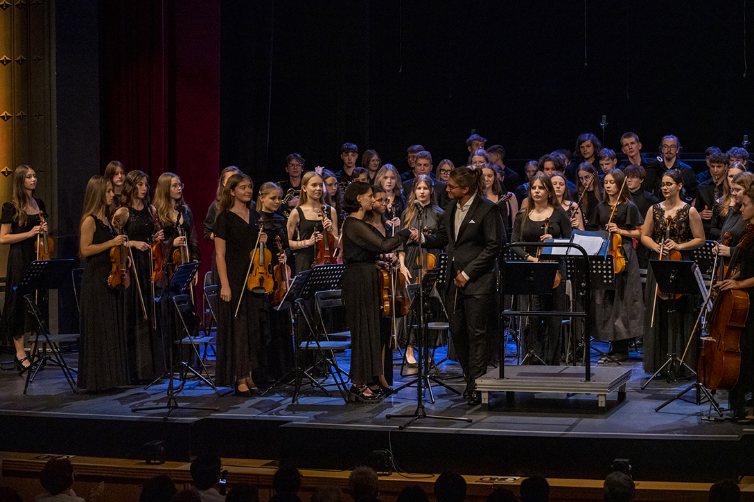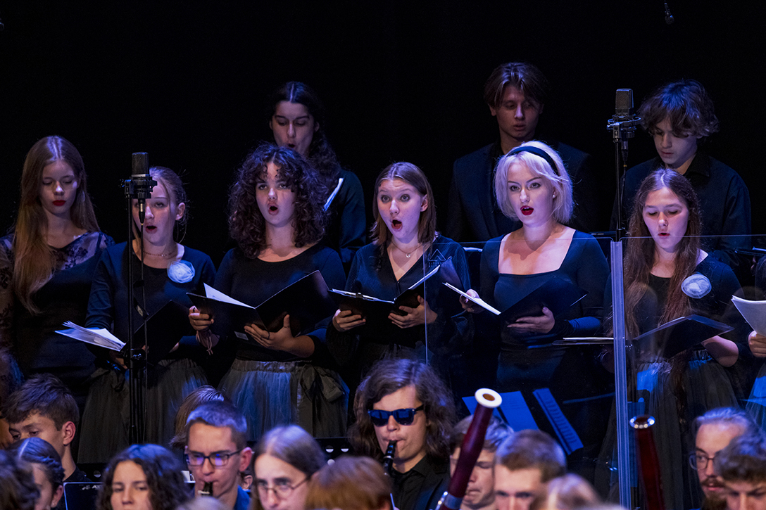 25.09.2024 r. – Koncert na Młodość, Chór i Orkiestrę w wykonaniu uczniów Zespołu Szkół Muzycznych w Sosnowcu i Zespołu Państwowych Szkół Muzycznych w Żorach pod batutą Macieja Cisowskiego – Sala Teatralna Pałacu Kultury Zagłębia. Fot.: M. Wesołowski
