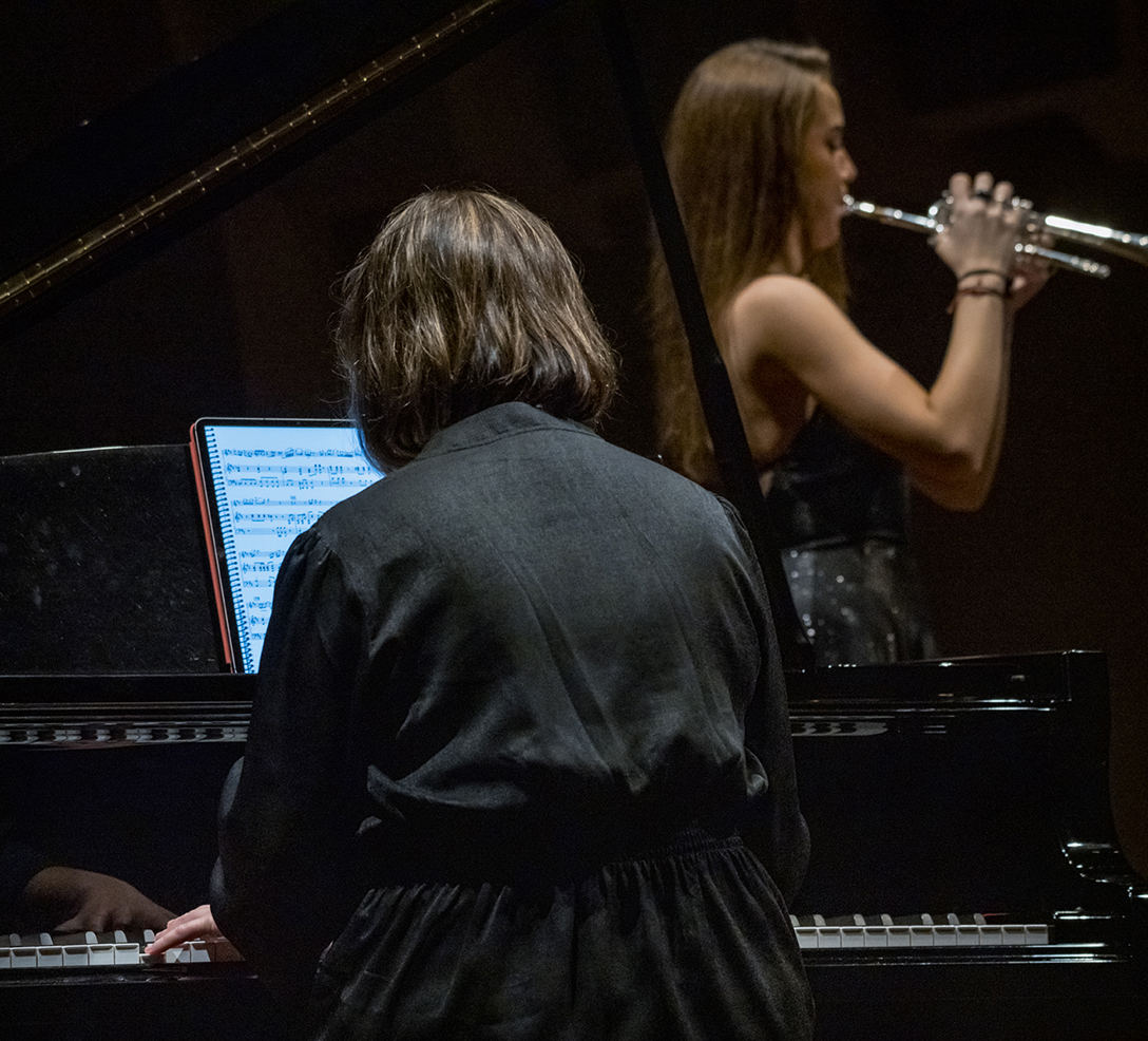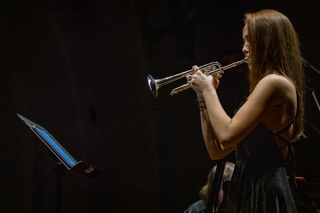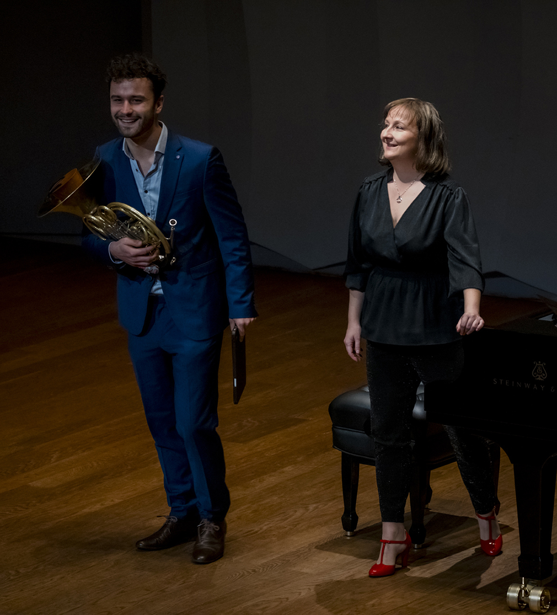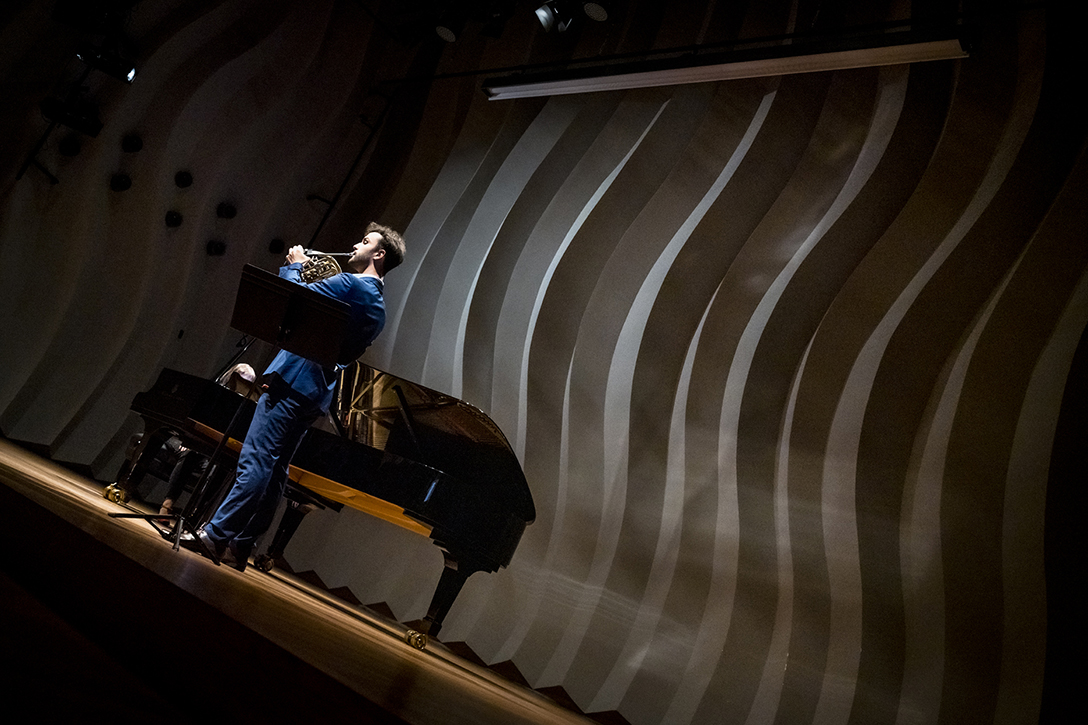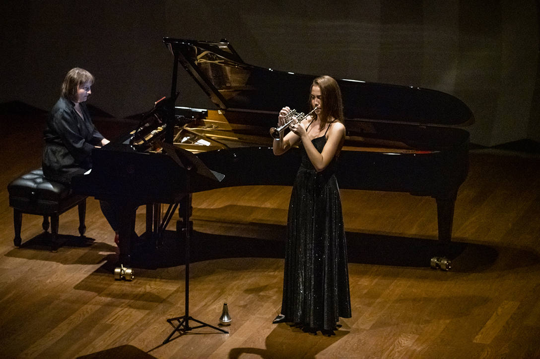 02.10.2024 r. Koncert z cyklu „Kalejdoskop” – dla dzieci i młodzieży szkolnej oraz seniorów, w Sali Kameralnej NOSPR w Katowicach. Solistami koncertu są laureaci 14. MKM im. Michała Spisaka: Amelia Kowalewska – trąbka i Daniel Schimmer – róg, a na fortepianie towarzyszy im Anna Czaicka – Jaklewicz – akompaniatorka MKM im. M. Spisaka. Fot.: M. Wesołowski