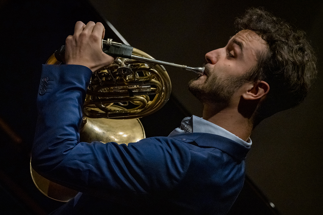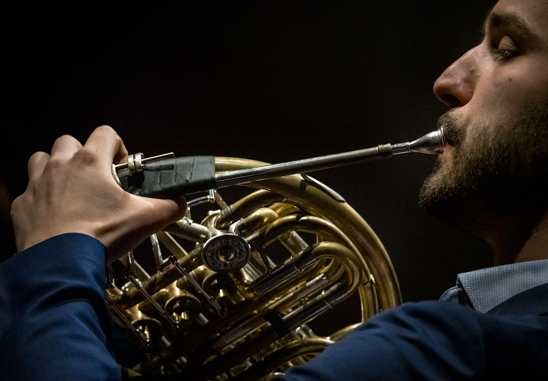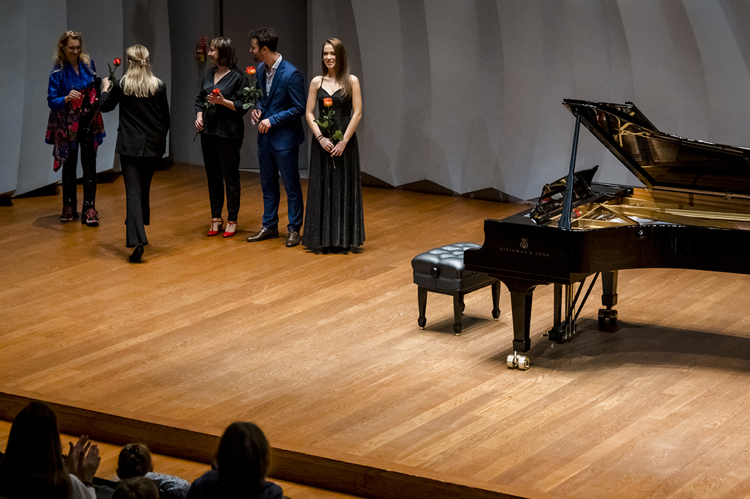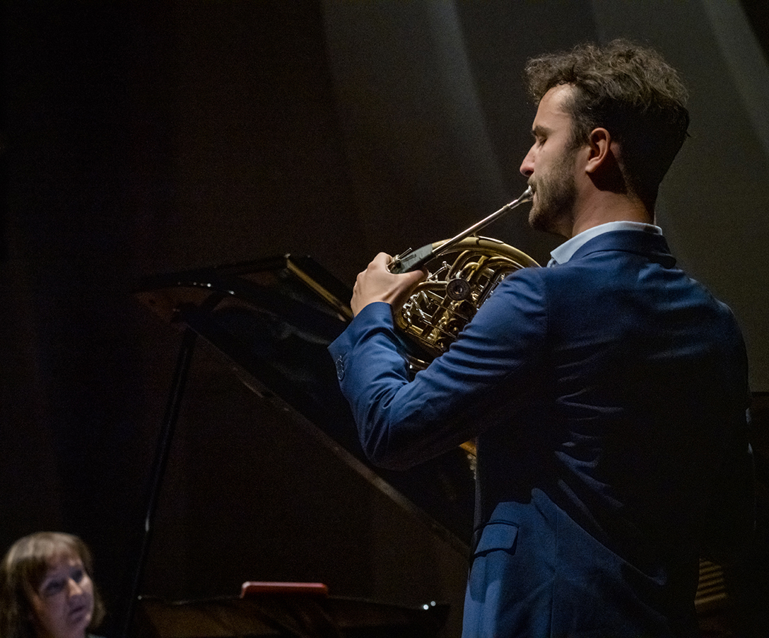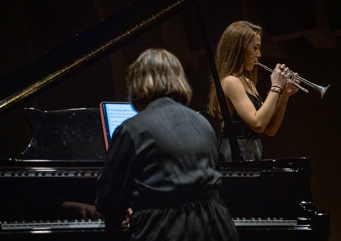 02.10.2024 r. Koncert z cyklu „Kalejdoskop” – dla dzieci i młodzieży szkolnej oraz seniorów, w Sali Kameralnej NOSPR w Katowicach. Solistami koncertu są laureaci 14. MKM im. Michała Spisaka: Amelia Kowalewska – trąbka i Daniel Schimmer – róg, a na fortepianie towarzyszy im Anna Czaicka – Jaklewicz – akompaniatorka MKM im. M. Spisaka. Fot.: M. Wesołowski